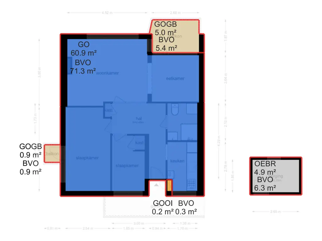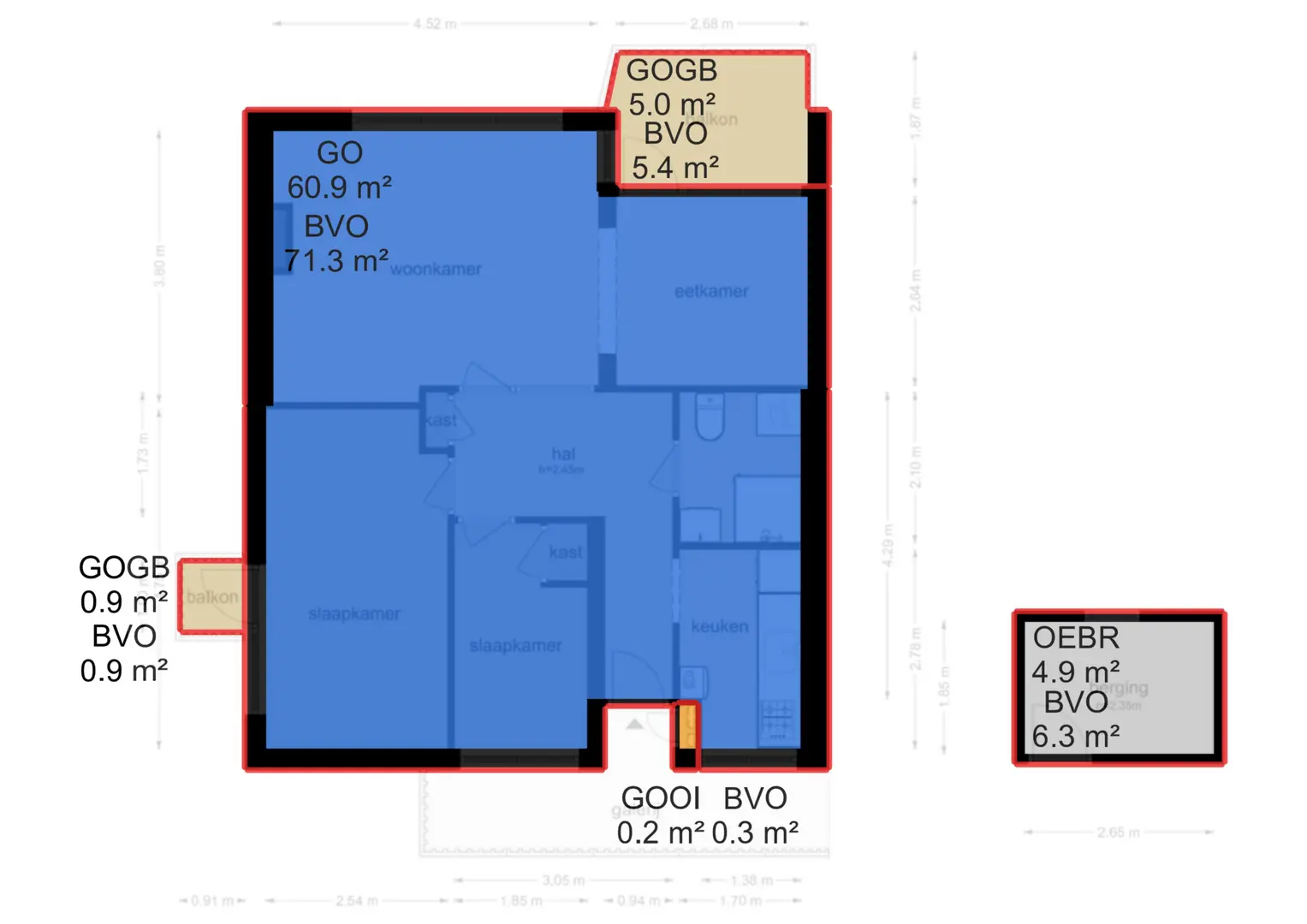 Bij binnenkomst heeft u vanuit de hal van het appartement toegang tot de twee slaapkamers, keuken, woonkamer en de badkamer.