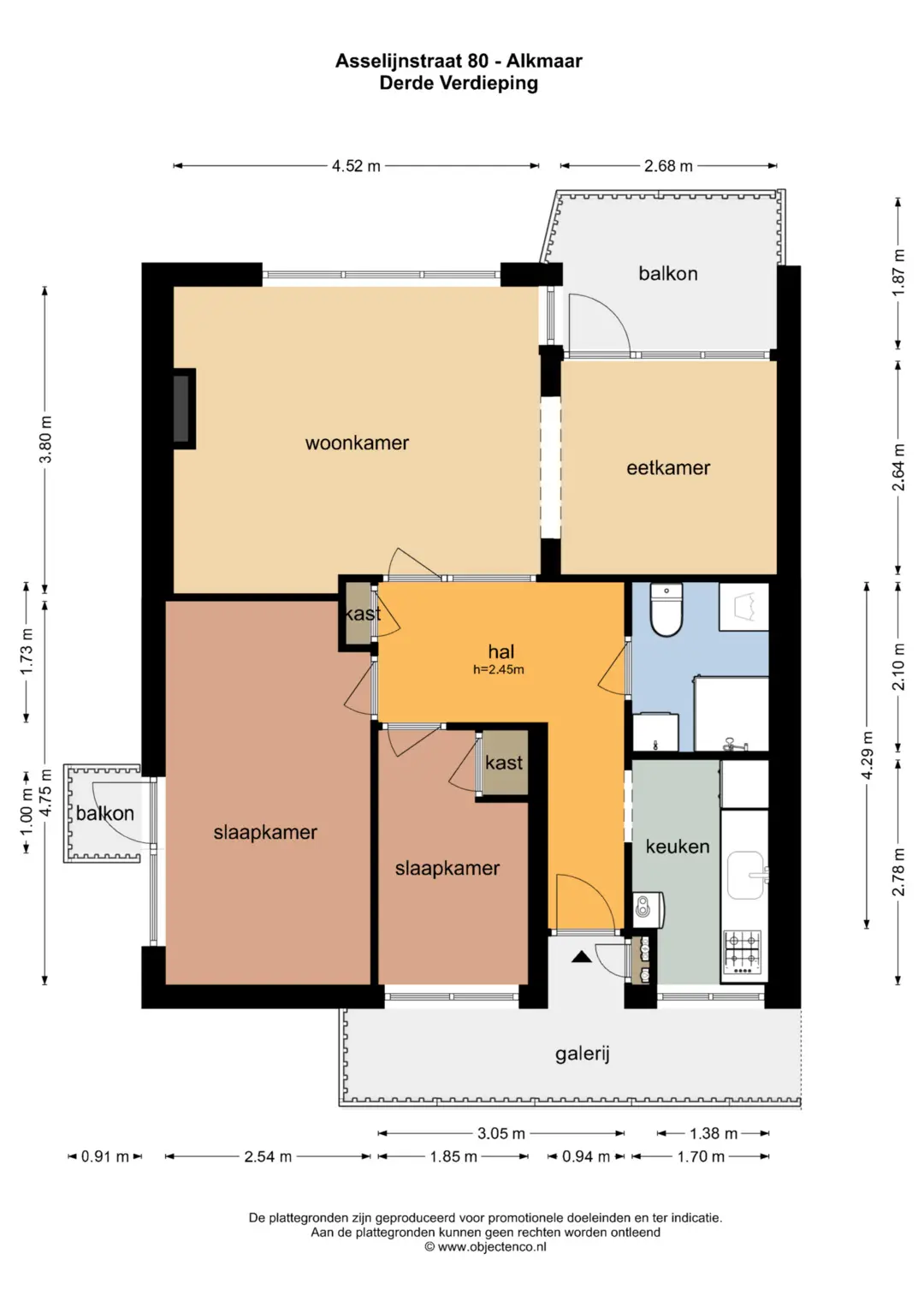 Vanuit de centrale hal waar ook de brievenbussen zijn gesitueerd bereikt u via het trappenhuis de galerij welke toegang geeft tot de voordeur.