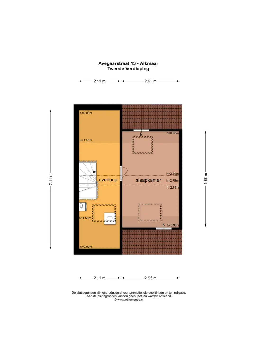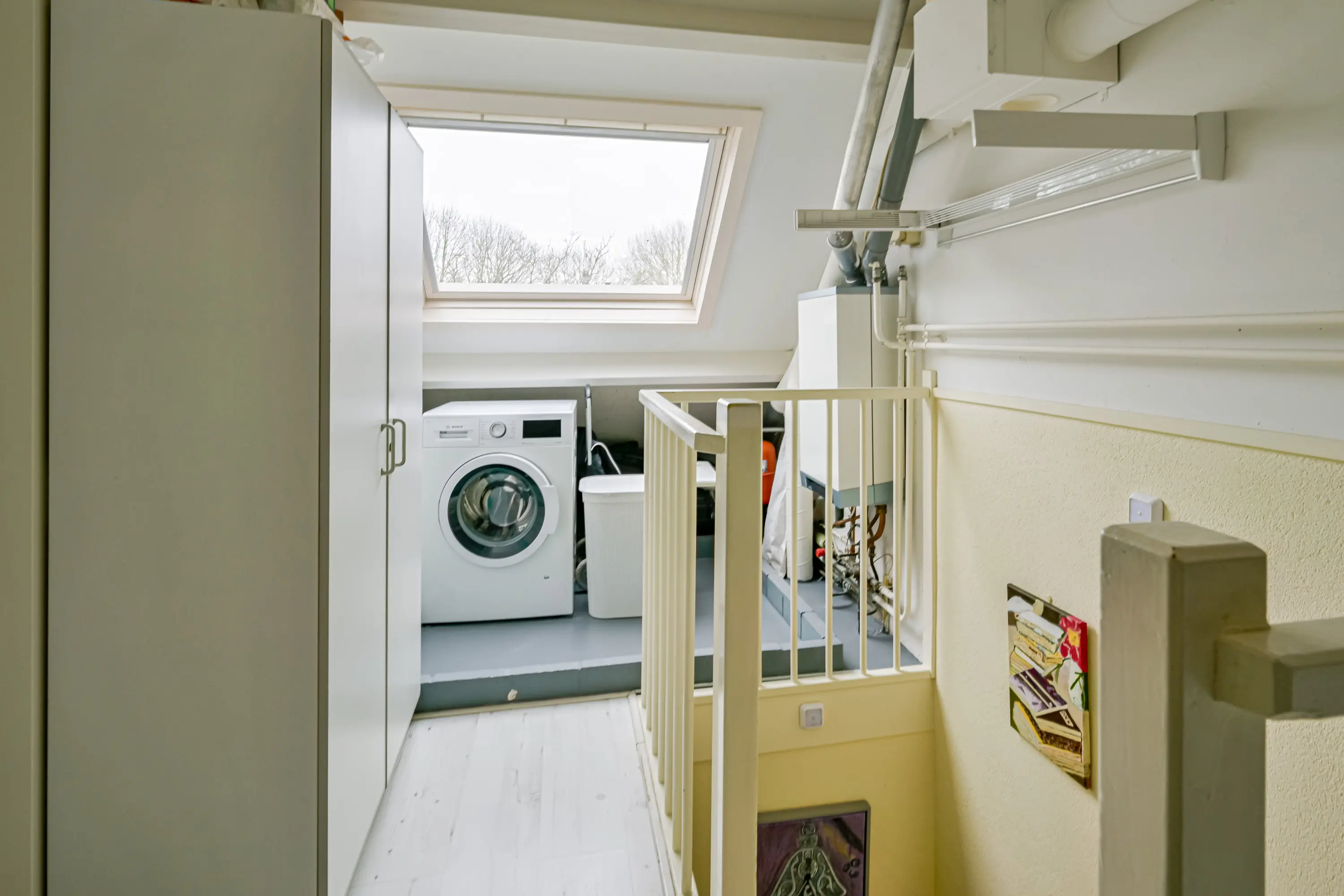 Tweede verdieping : Via de vaste trap bereikt u de tweede verdieping. Hier vindt u een ruime voorzolder en de derde slaapkamer. Op de voorzolder is voldoende ruimte aanwezig voor het plaatsen van de wasmachine en droger en het opbergen van spullen die u niet dagelijks nodig heeft.