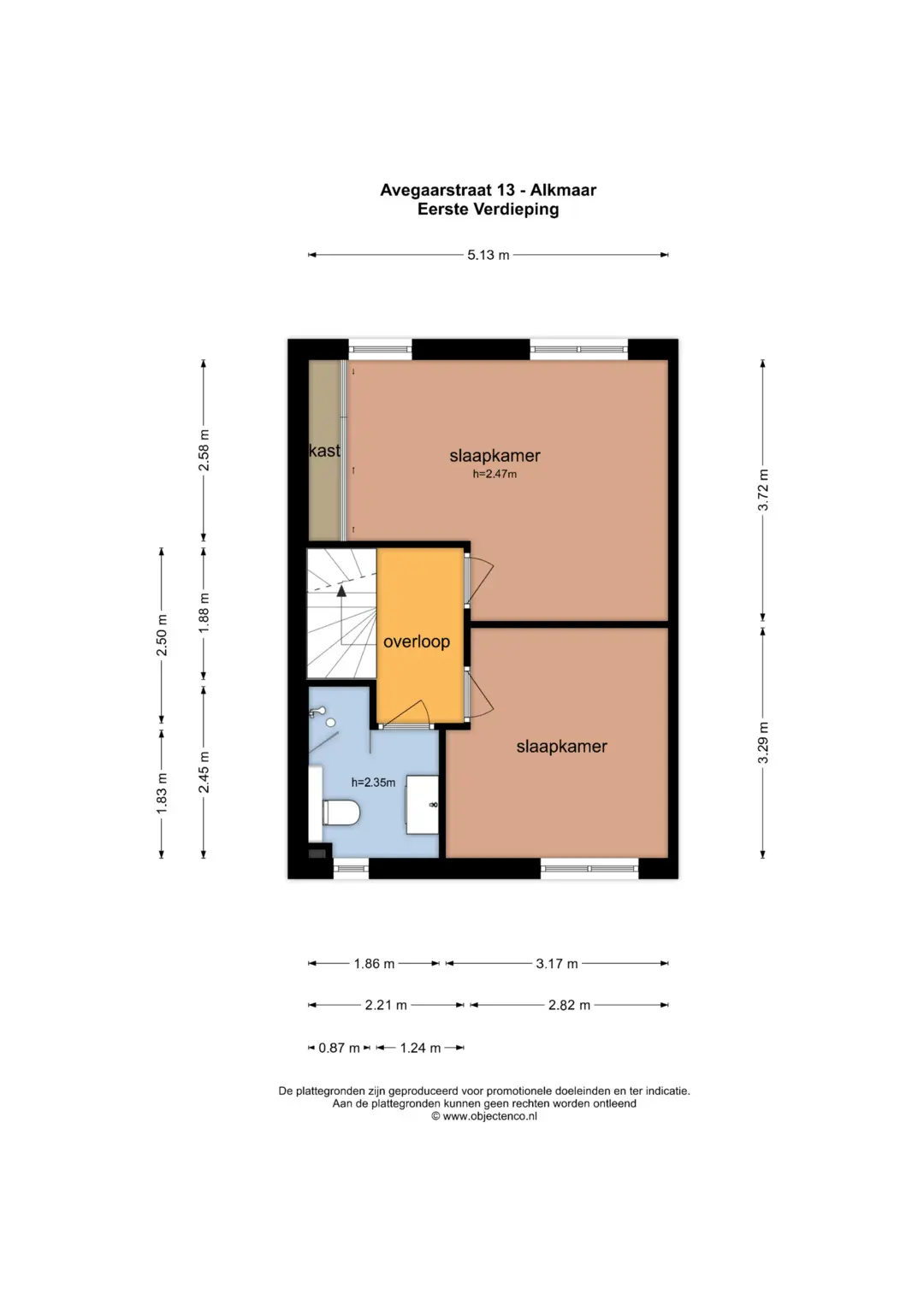 Eerste verdieping: Via de trap vanuit de hal bereikt u de 1e etage. Op de 1e verdieping vindt u een overloop met twee ruime slaapkamers. Van oorsprong waren er op deze verdieping drie slaapkamers. De twee oorspronkelijke slaapkamers aan de achterzijde zijn samengevoegd tot één grote kamer. Met een kleine aanpassing zijn er dus op deze verdieping weer drie kamers te creëren. Op deze verdieping vindt u tevens de badkamer welke beschikt over een tweede toilet, wastafel met meubel en een inloopdouche. Alle kozijnen op deze verdieping zijn van kunststof en zijn voorzien van draaikiepramen met muggenhorren.