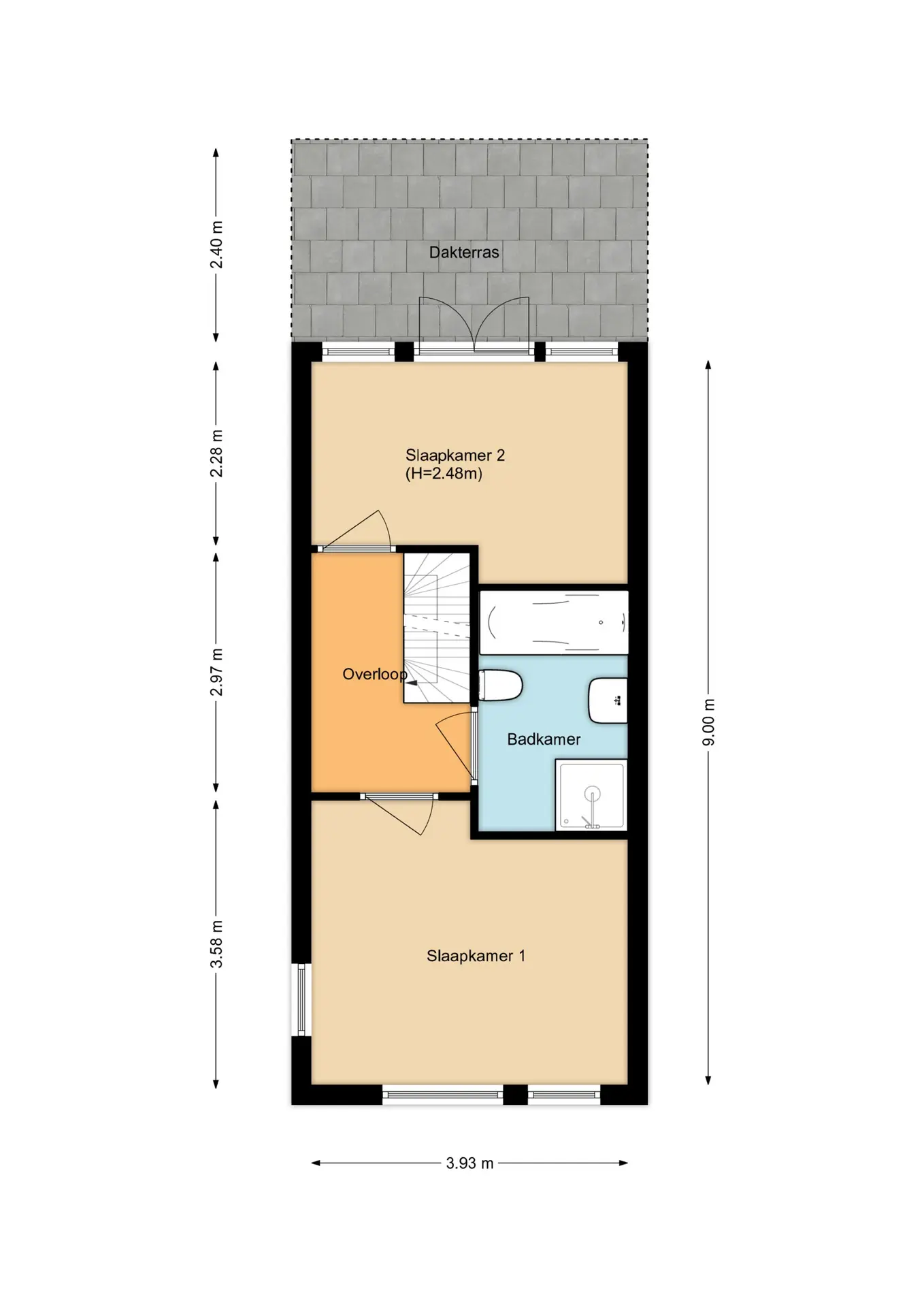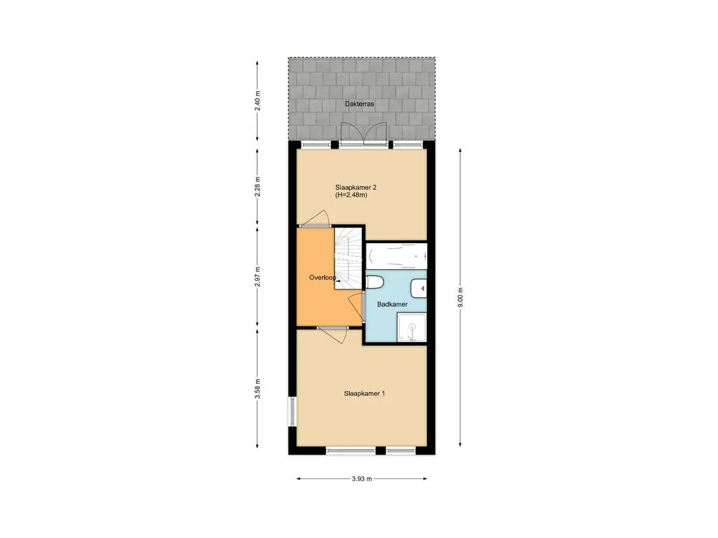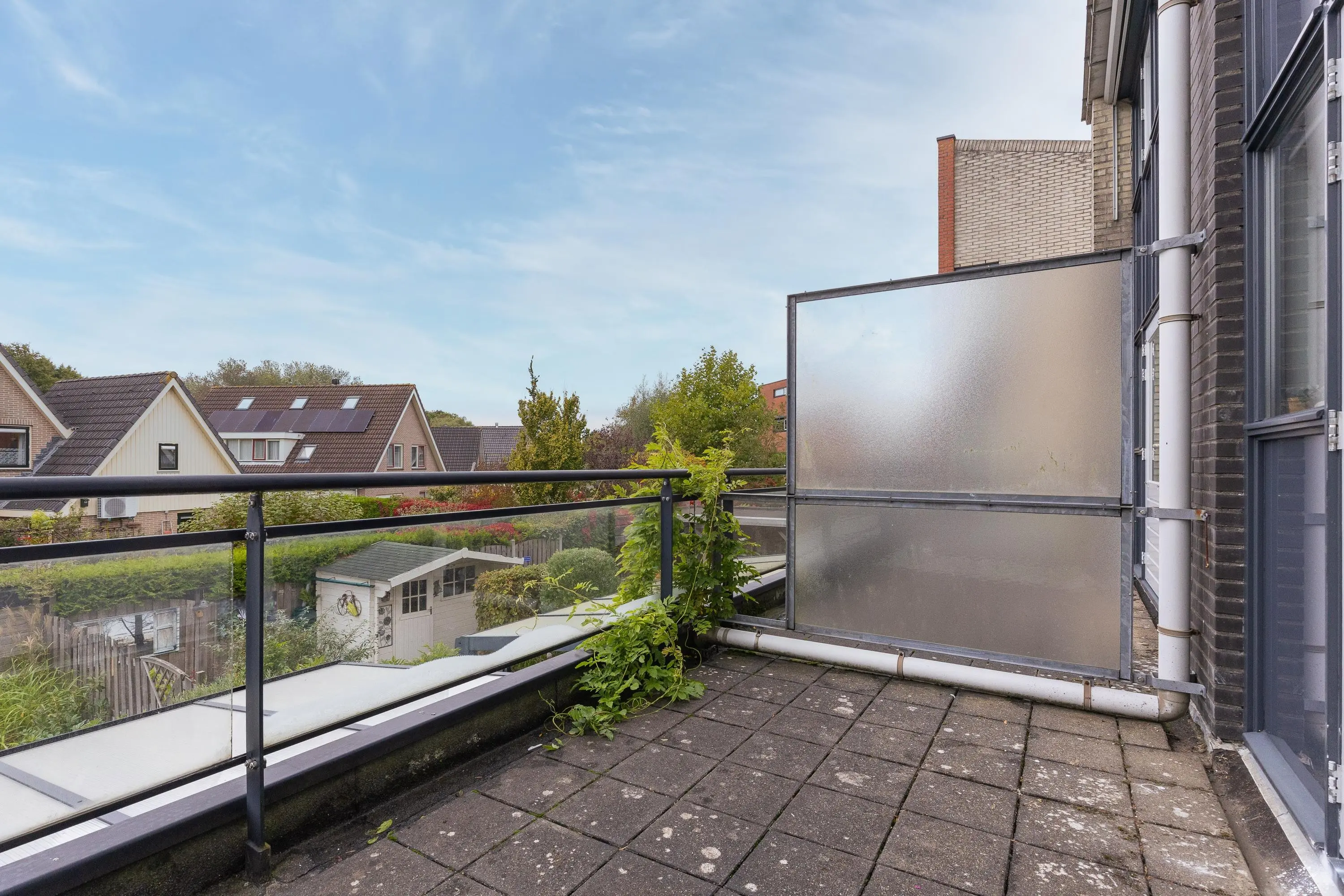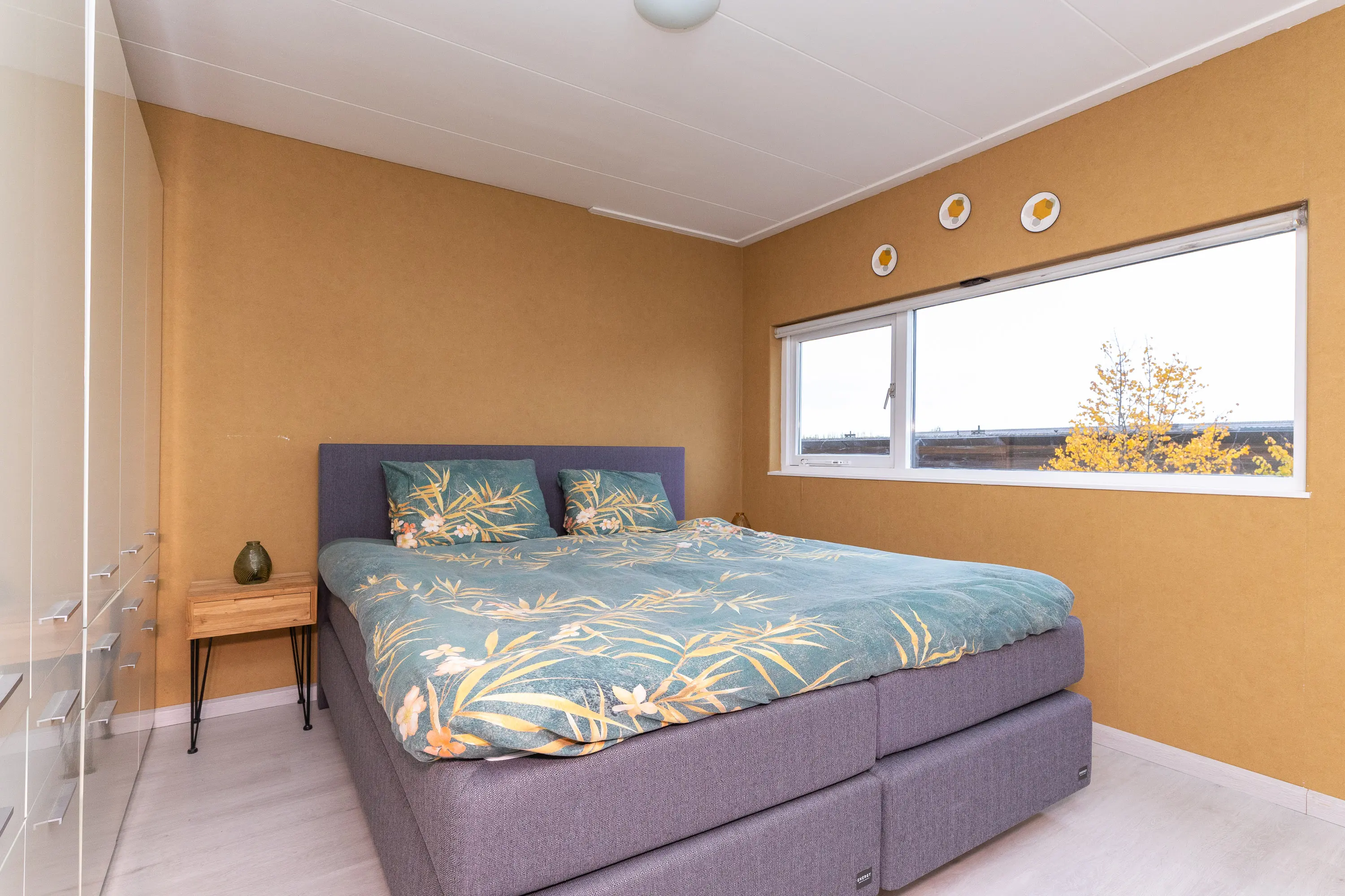 Overloop met toegang tot twee ruime slaapkamers met rechte wanden. De slaapkamer aan de achterzijde biedt toegang tot een ruim balkon. De eiken laminaatvloer loopt door over de gehele verdieping en is netjes afgewerkt met nieuwe plinten.