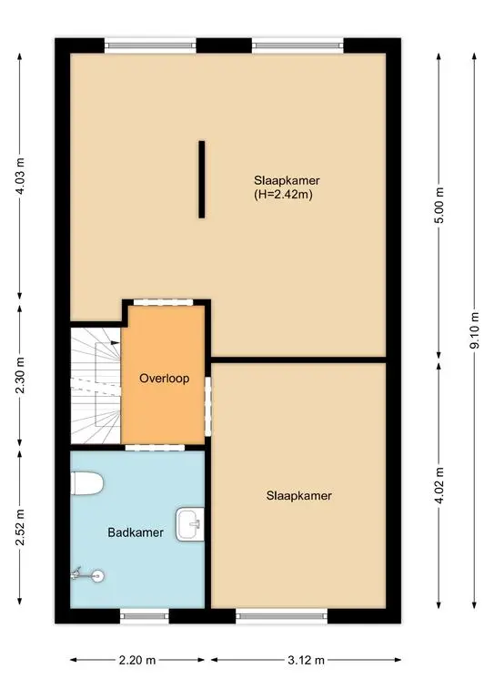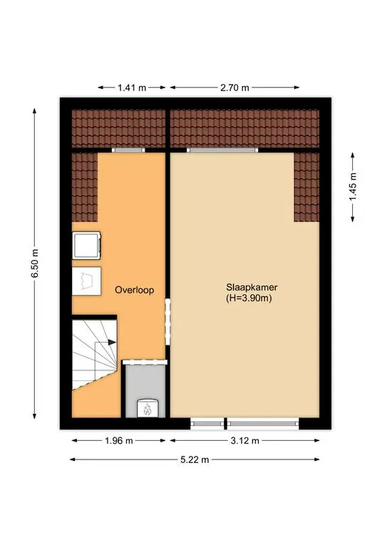 Op de tweede verdieping bevindt zich de derde slaapkamer en een aparte wasruimte, hier is middels het plaatsen van een dakkapel een royale ruimte gecreëerd met veel lichtinval.