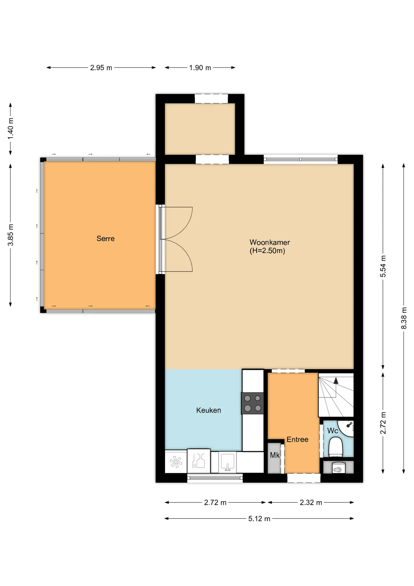 Je komt binnen in de hal met meterkast, toilet met opstelling van de CV-ketel (Nefit, 2023) en de trapopgang. Aan de tuinzijde ligt de woonkamer, die in verbinding staat met de serre voorzien van elektrisch bedienbare screens. De open keuken in L-opstelling ligt aan de straatzijde en is uitgerust met een gasfornuis, oven en afzuigkap. De achtertuin is verzorgd aangelegd en biedt meerdere terrassen, een veranda en een grote berging. In de directe omgeving is voldoende parkeergelegenheid.