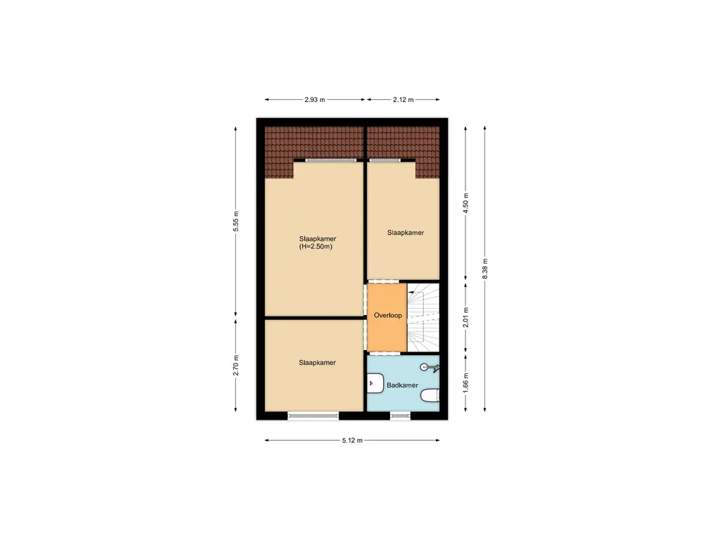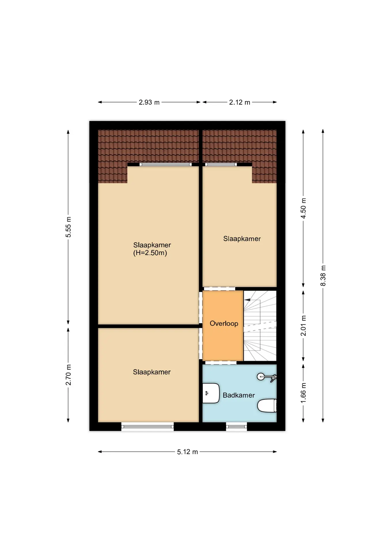 Op de overloop vind je drie slaapkamers, waarvan twee aan de achterzijde met een dakkapel en één aan de voorzijde. De badkamer is modern en voorzien van een douche, wastafelmeubel, toilet en designradiator.
