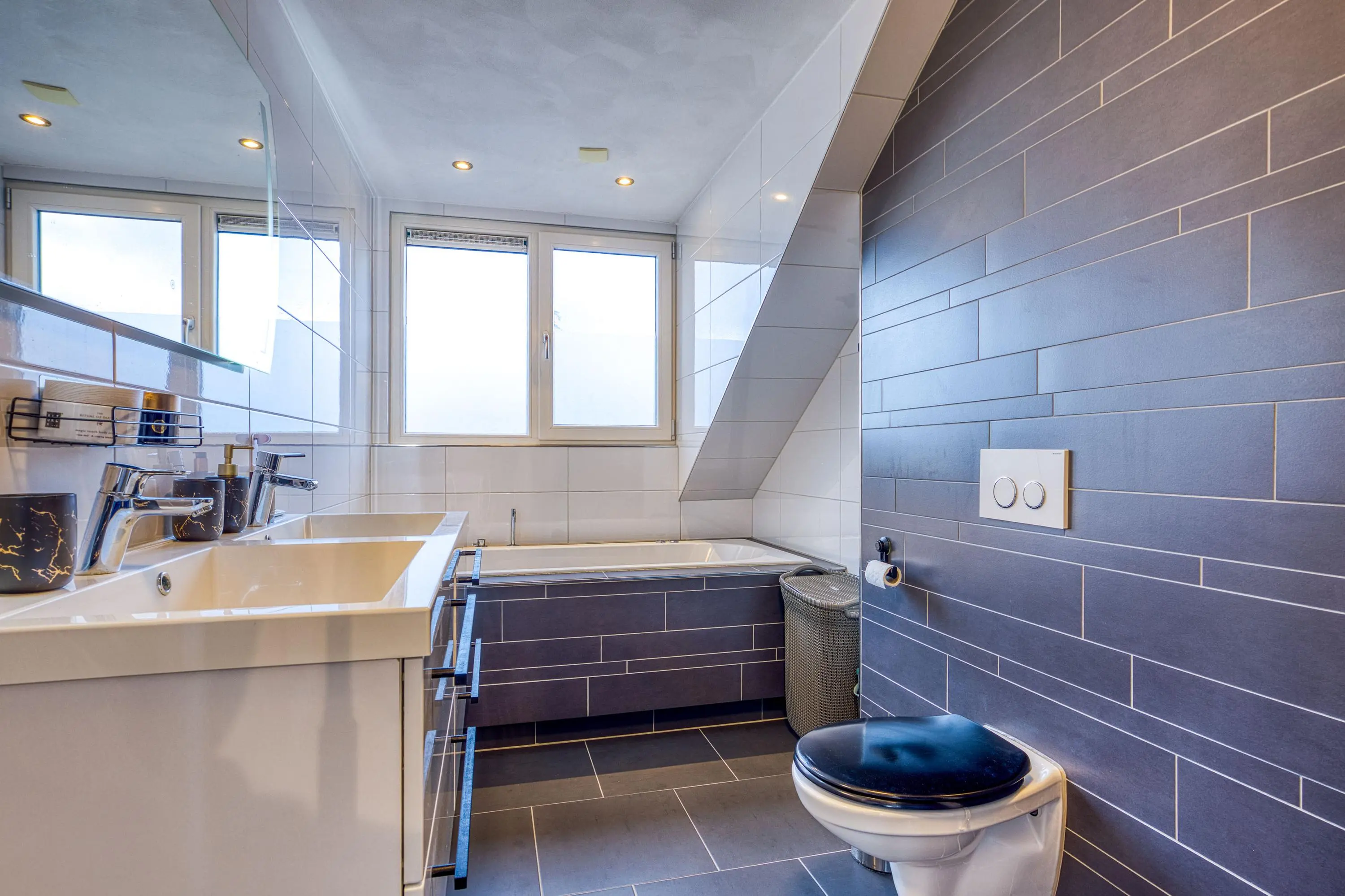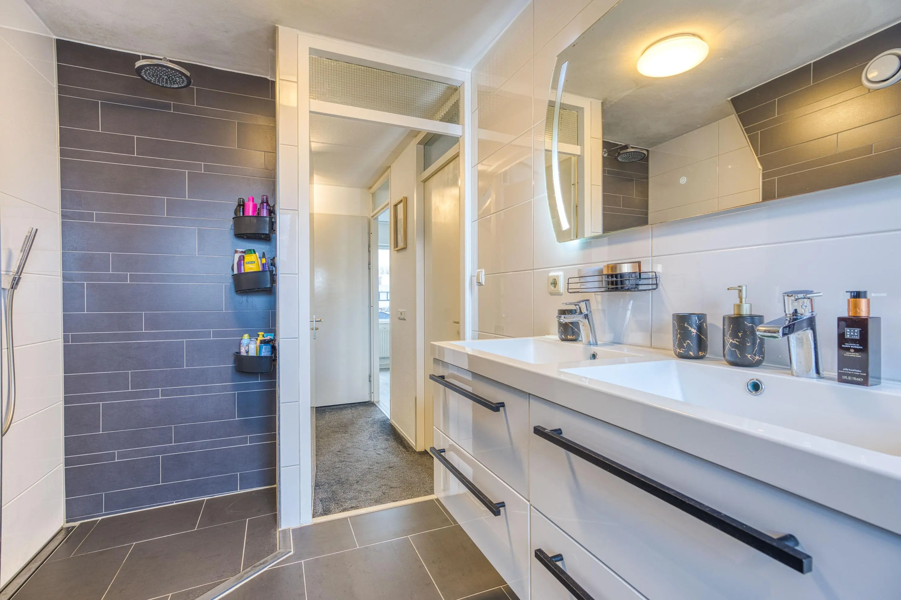 Op de verdieping(en) bevinden zich de slaapkamers en de badkamer. De badkamer is zeer modern uitgevoerd en beschikt over een dubbele wastafel, een toilet, een ligbad met jetstreams en een ruime inloopdouche en is tevens voorzien van vloerverwarming. Een luxe en comfortabele ruimte om de dag ontspannen te beginnen en af te sluiten.