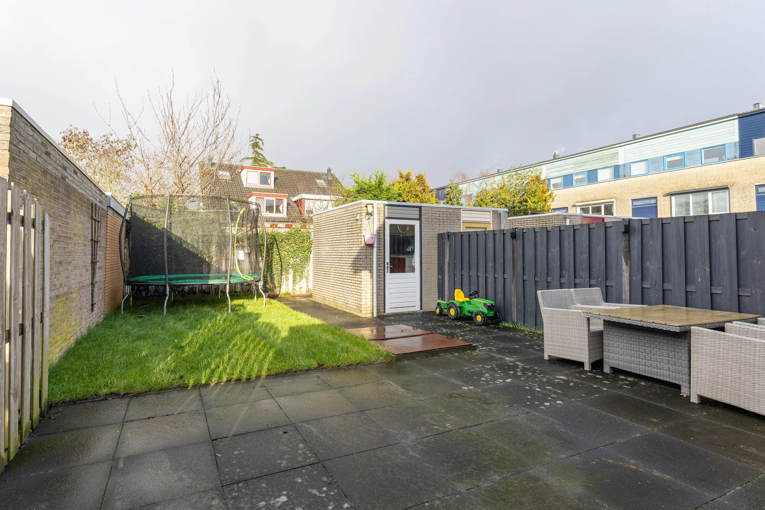 De achtertuin is één van de absolute pluspunten van deze woning. Door het royale formaat en de gunstige zonligging is er de hele dag door een plek in de zon te vinden. De tuin biedt volop mogelijkheden voor meerdere terrassen, speelruimte voor kinderen of een sfeervolle groene inrichting.