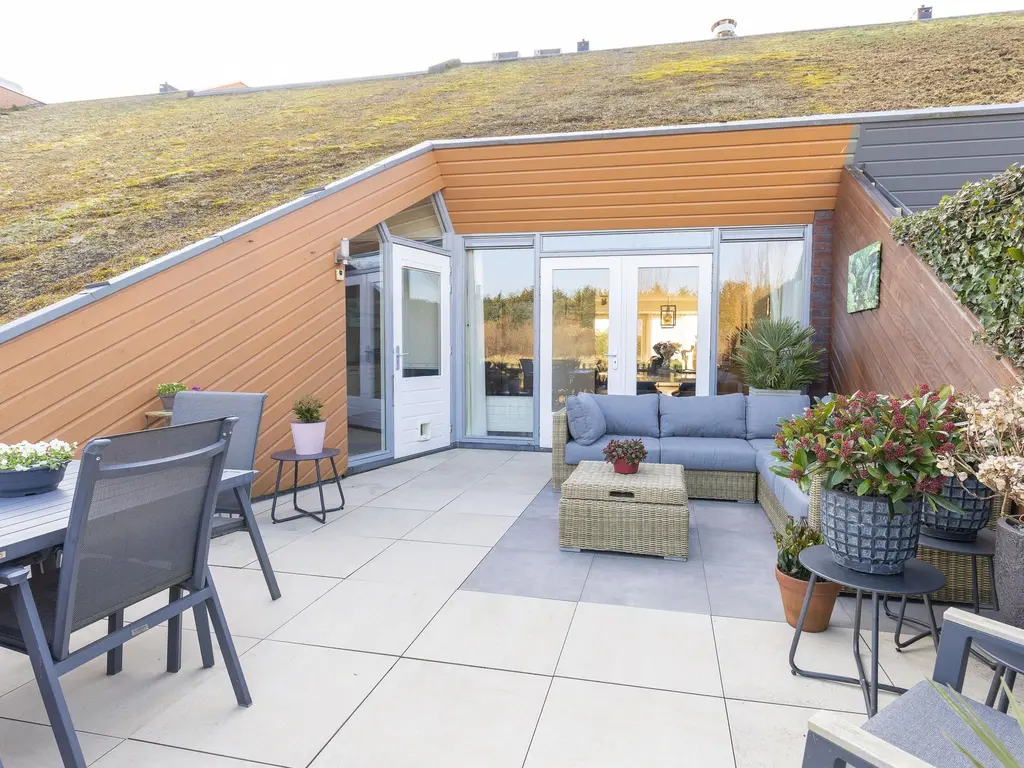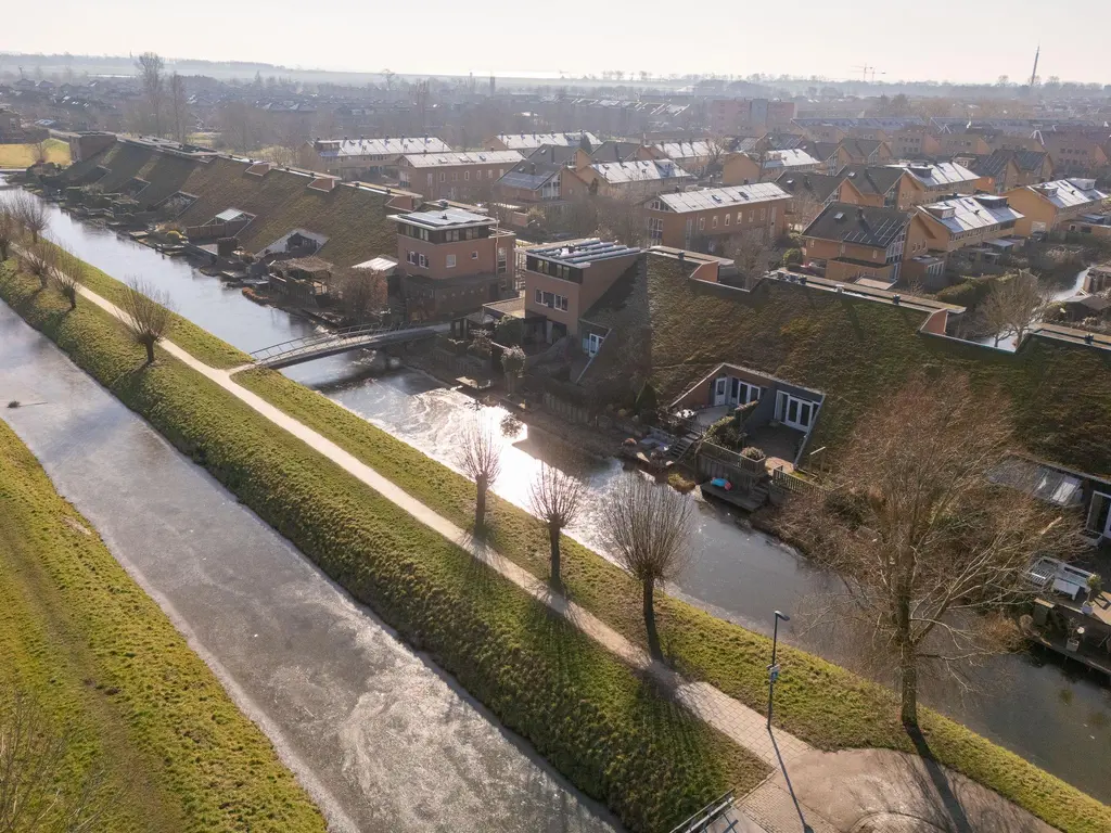 The backyard is a delightful place to spend time. With seating areas at different heights and a newly built dock (2019), you have the perfect spot to enjoy the waterfront. The backyard is accessible via the French doors in the living room and through the utility room, with views over the green Zuiderveld. The roof is equipped with moss-sedum, a nearly maintenance-free form of roofing that is not only aesthetically pleasing but also contributes to the sustainability and insulation of the house. The color changes throughout the four seasons are a charming aspect of this type of roofing.