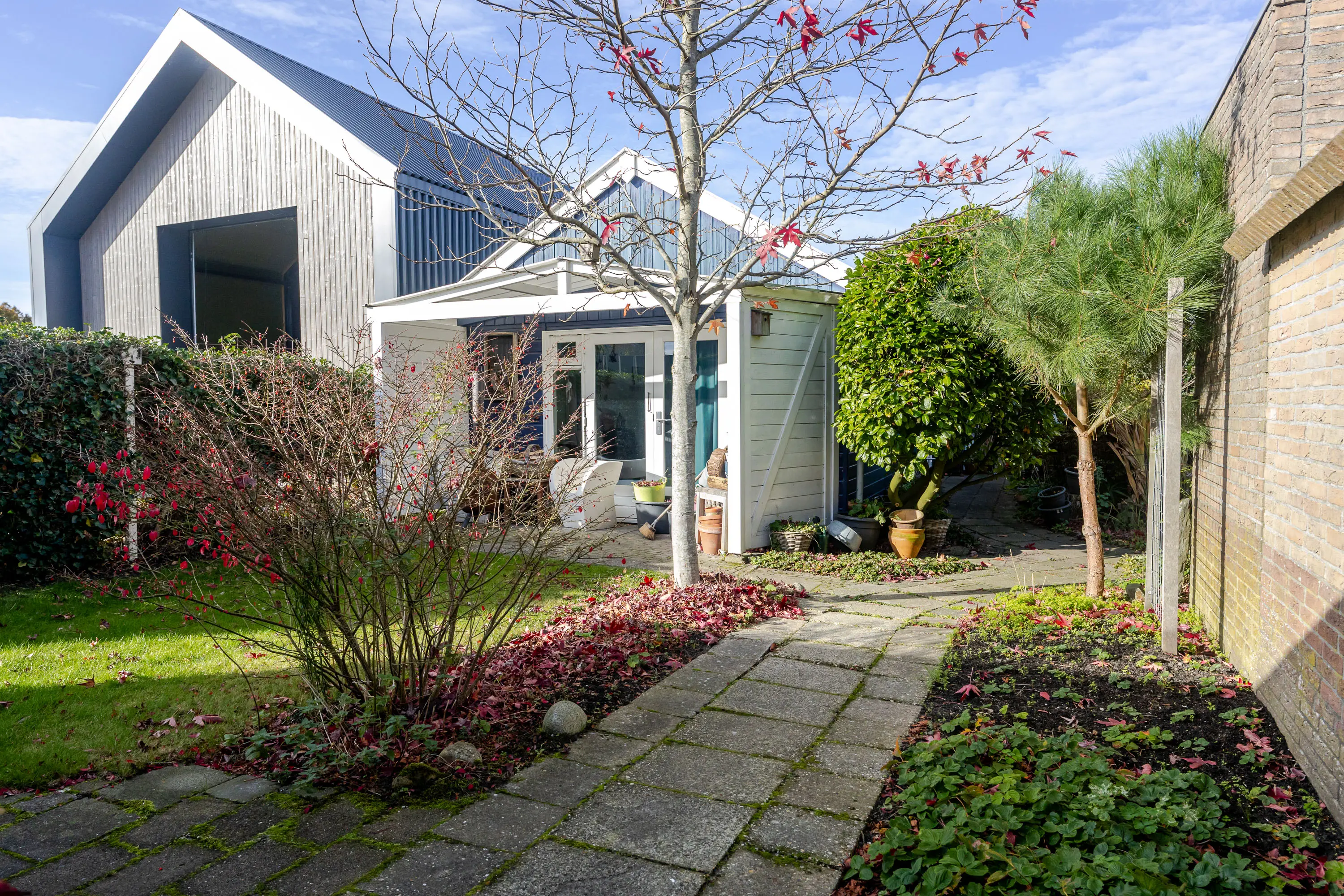 Entree, hal, net toilet met hangscloset, meterkast, trapopgang, ruime woonkamer met sfeervolle erker, ruimte voor een grote eettafel, open keuken in een rechte opstelling met koelkast, vaatwasser, inductie kookplaat, combi oven, afzuigkap en een Quooker. Aansluitend de aangebouwde bijkeuken met aansluiting voor de wasmachine en een vaste kast. Via de woonkamer met schuifpui of de bijkeuken is de serre te bereiken. De achtertuin is netjes aangelegd en via de steeg aan de achterzijde te bereiken. Als laatste de ruime vrijstaande berging/schuur.