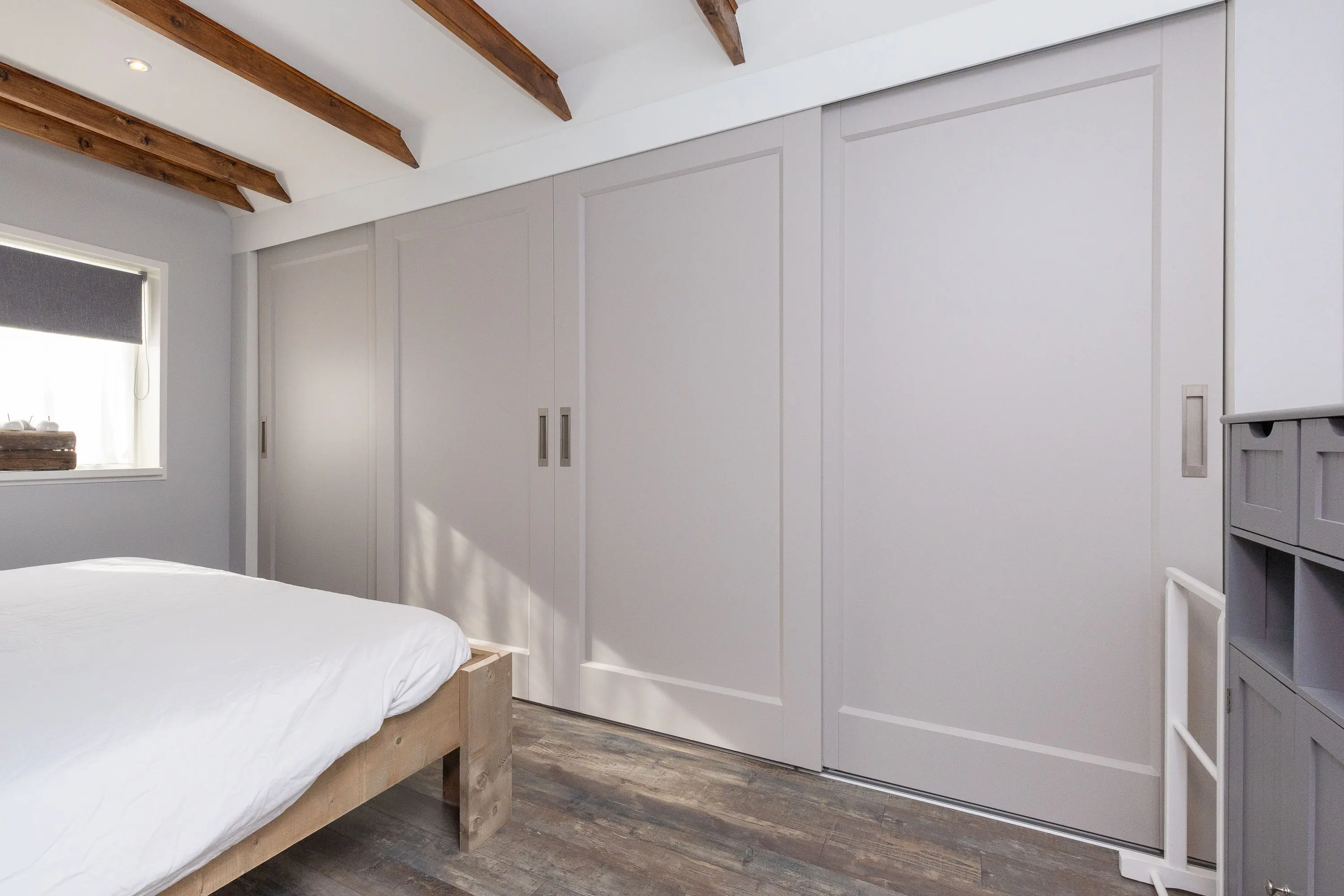 De nieuwe badkamer is voorzien van vloerverwarming, een ruime inloopdouche, een toilet en een dubbele wastafel en bevind zich tevens op de begane grond. Op de eerste verdieping van het woonhuis treft u twee slaapkamers, veel opbergruimte en een tweede toilet.