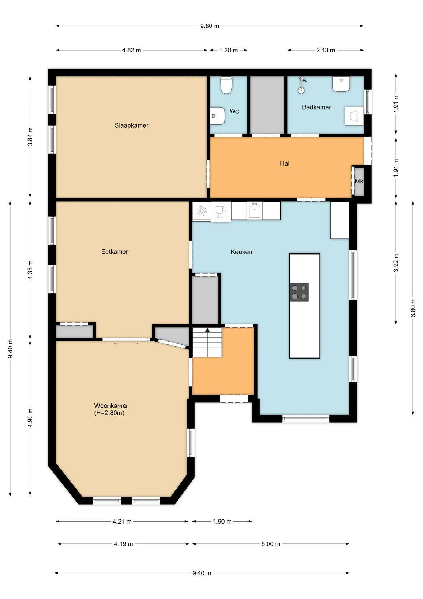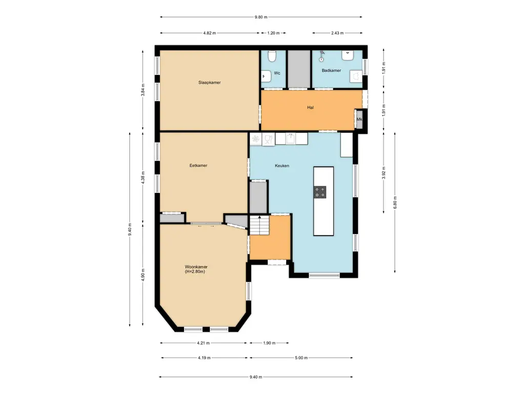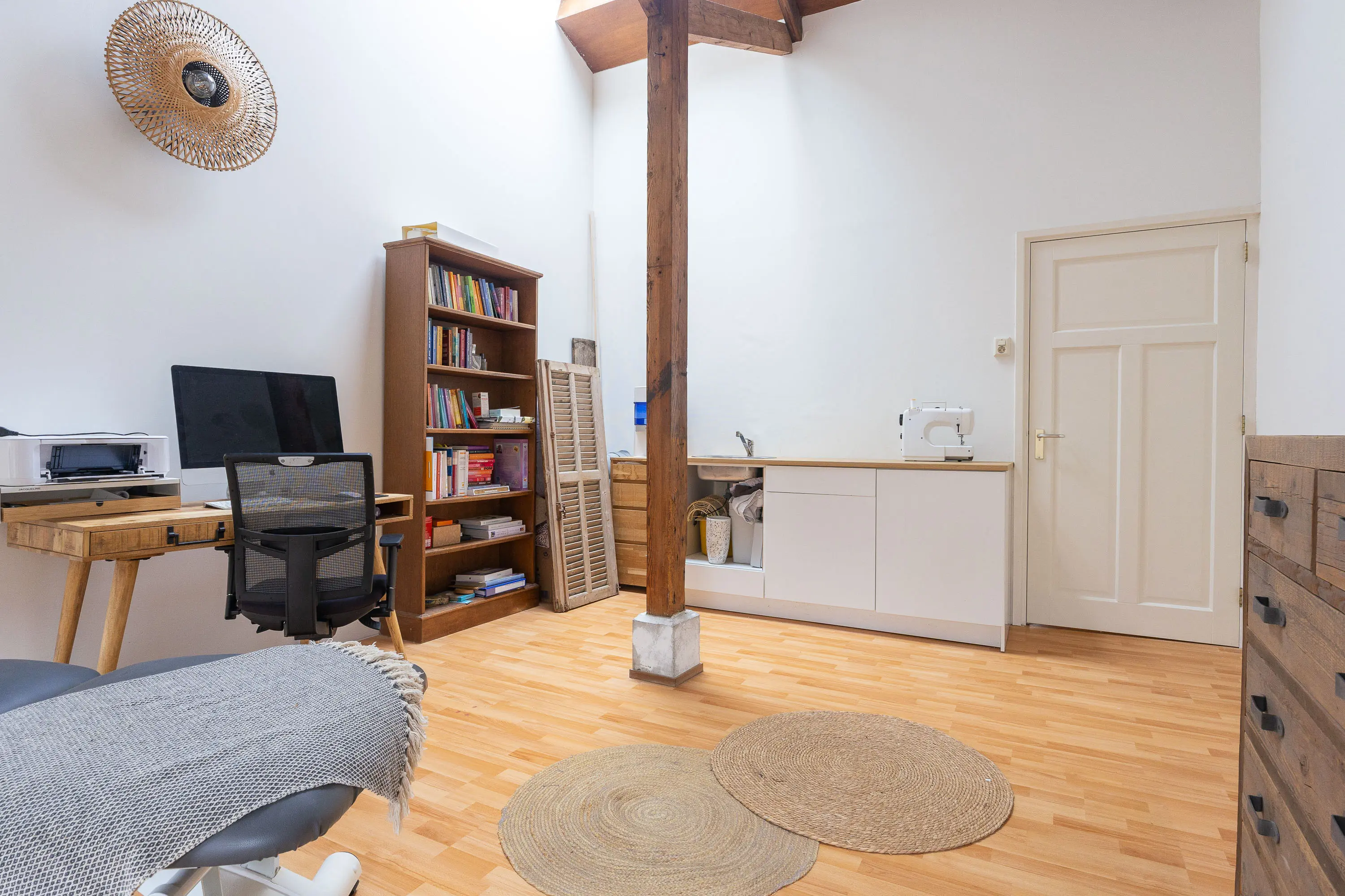 Aan de achterzijde van de woning bereikt u via een aparte hal de badkamer, het toilet en een royale slaapkamer. Deze ruimte is tevens uitstekend geschikt als praktijk aan huis, salon of kantoorruimte. Hiermee behoort levensloopbestendig wonen absoluut tot de mogelijkheden.