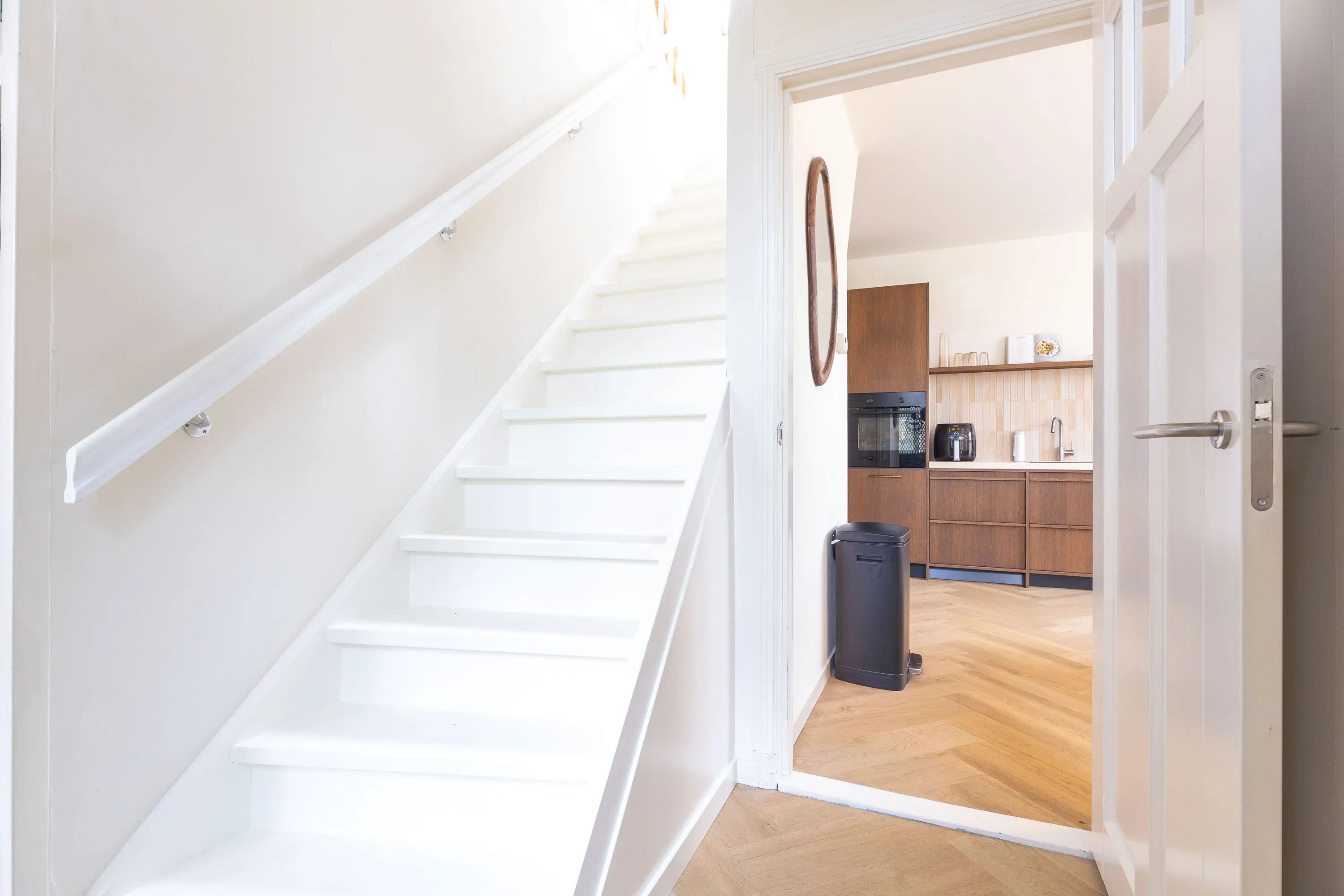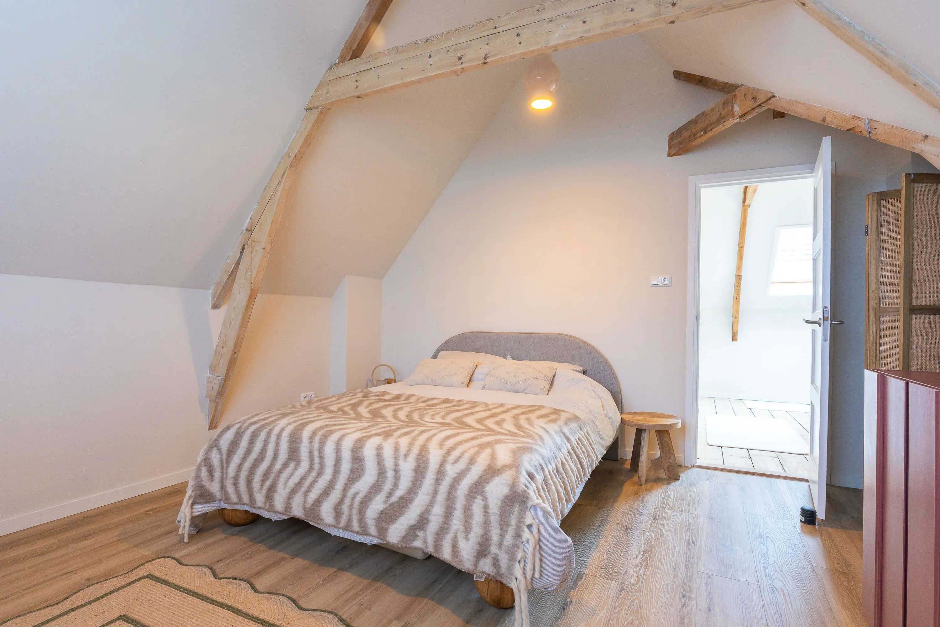 Op de eerste verdieping zijn twee knusse slaapkamers gerealiseerd, waarbij de oude details zorgvuldig intact zijn gebleven. Daarnaast vindt u hier een royale inloopkast voor al uw kleding.