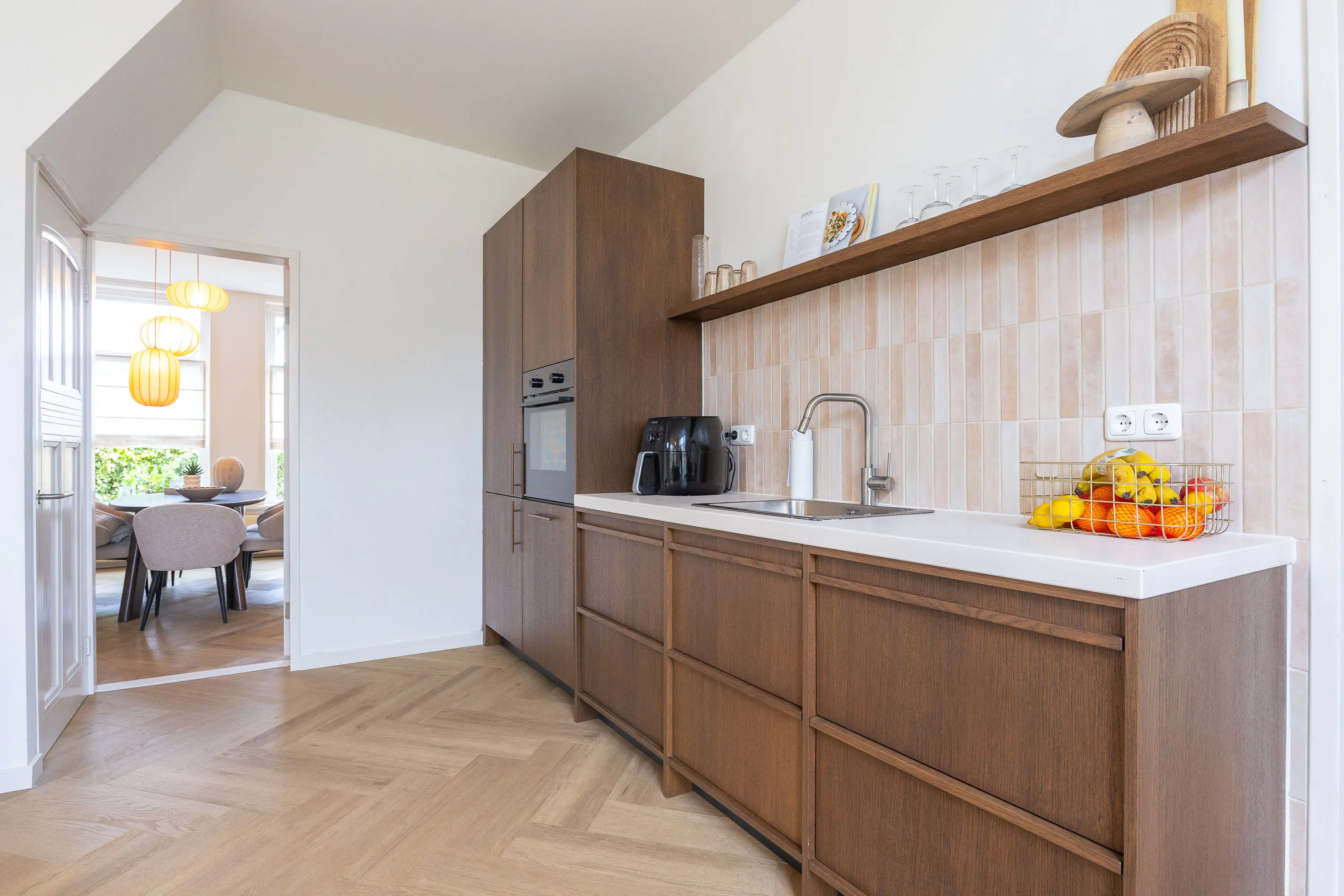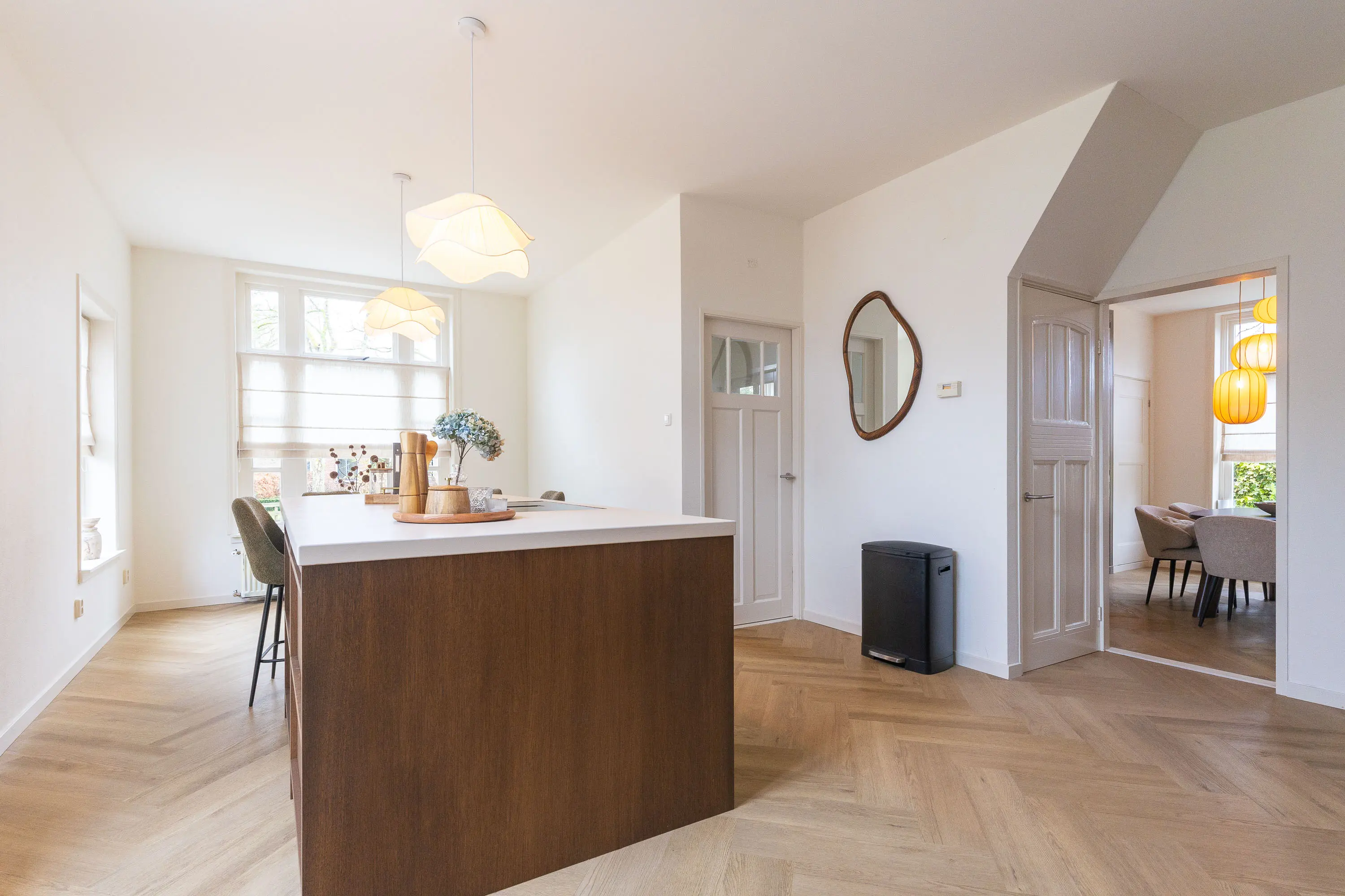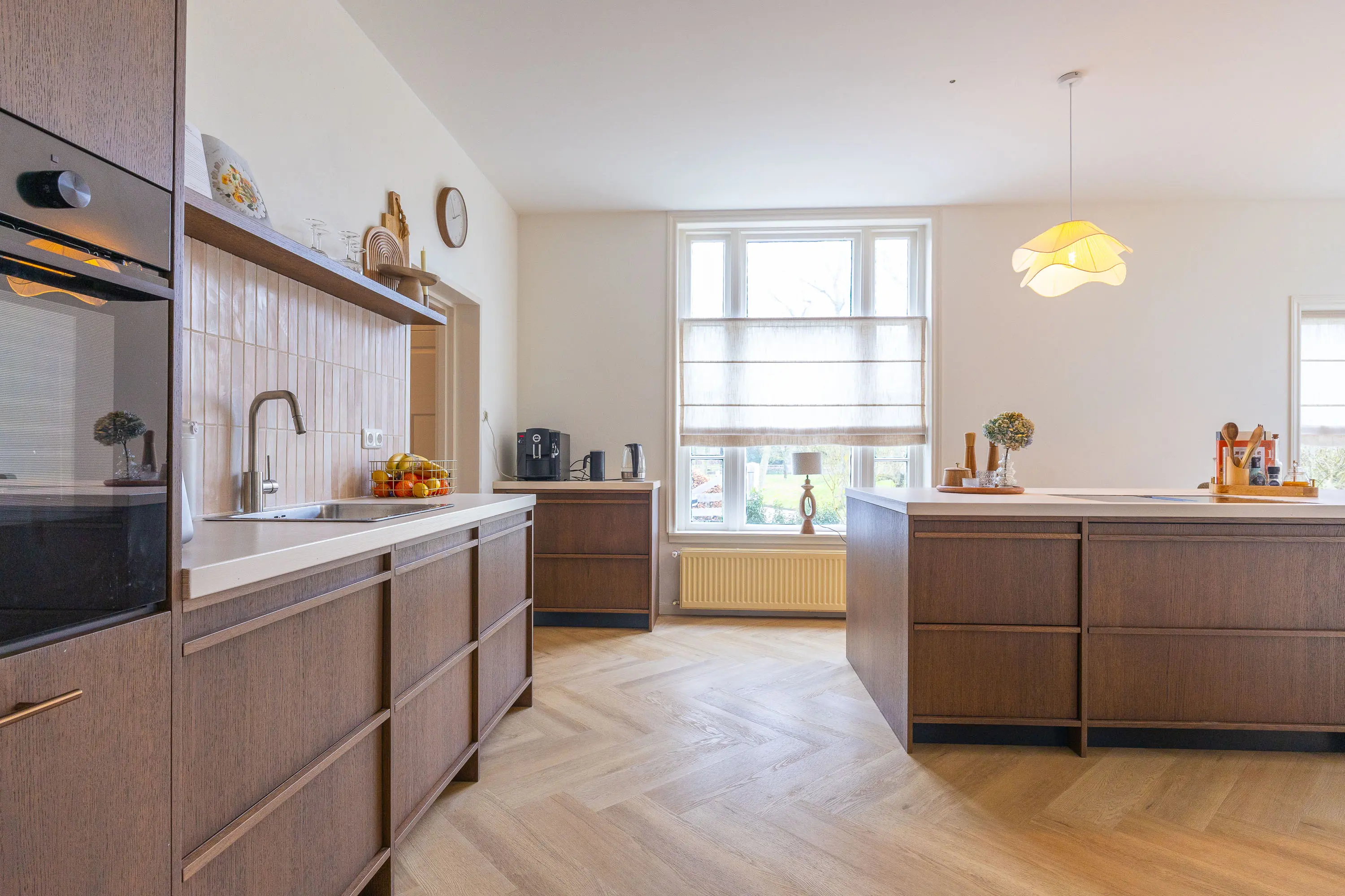 De handgemaakte, zeer fraai afgewerkte woonkeuken vormt het hart van het huis. Voorzien van diverse inbouwapparatuur en een royaal kookeiland is dit dé plek om samen te komen met familie en vrienden. Op de begane grond is deels vloerverwarming aanwezig, wat zorgt voor extra comfort.