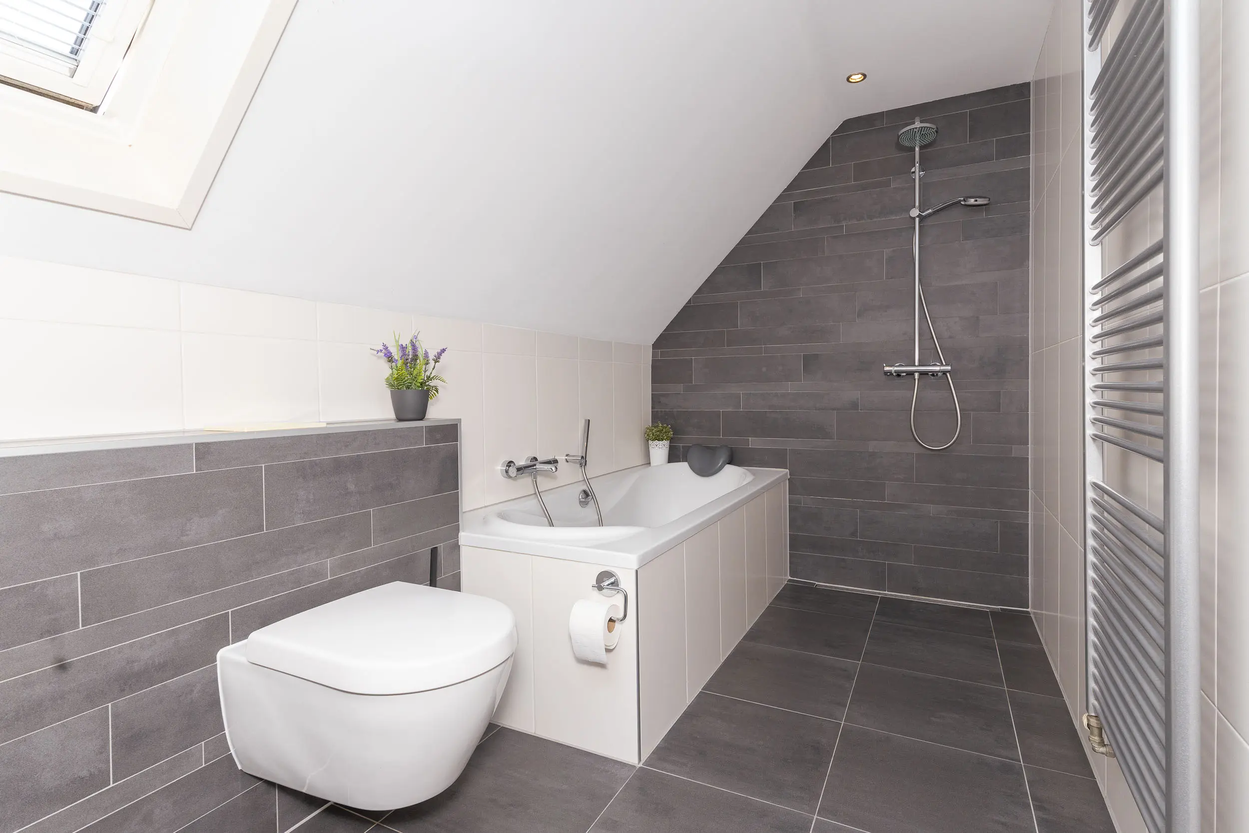 Hier bevinden zich drie ruime slaapkamers en een complete badkamer met vloerverwarming en met ligbad.