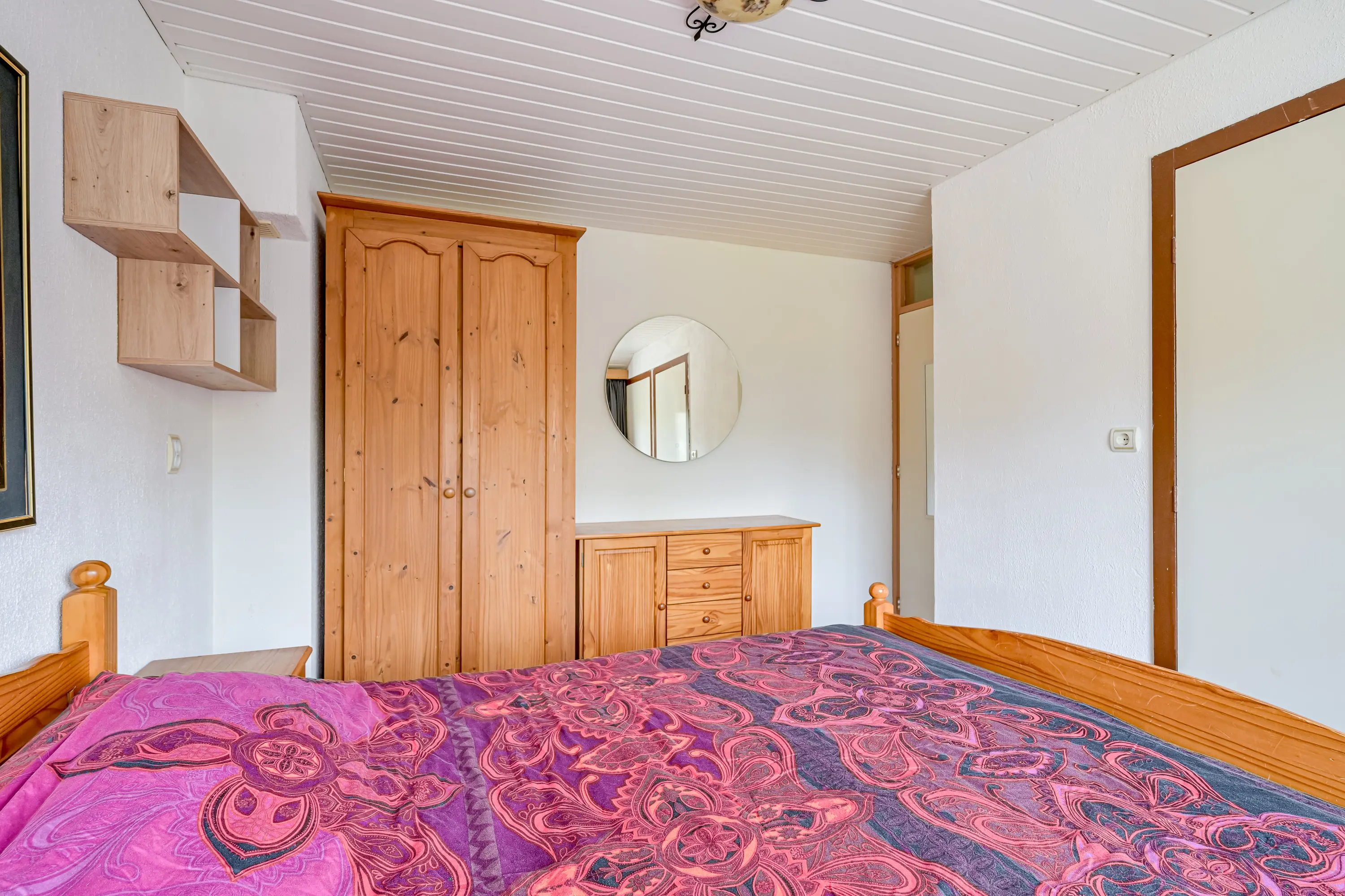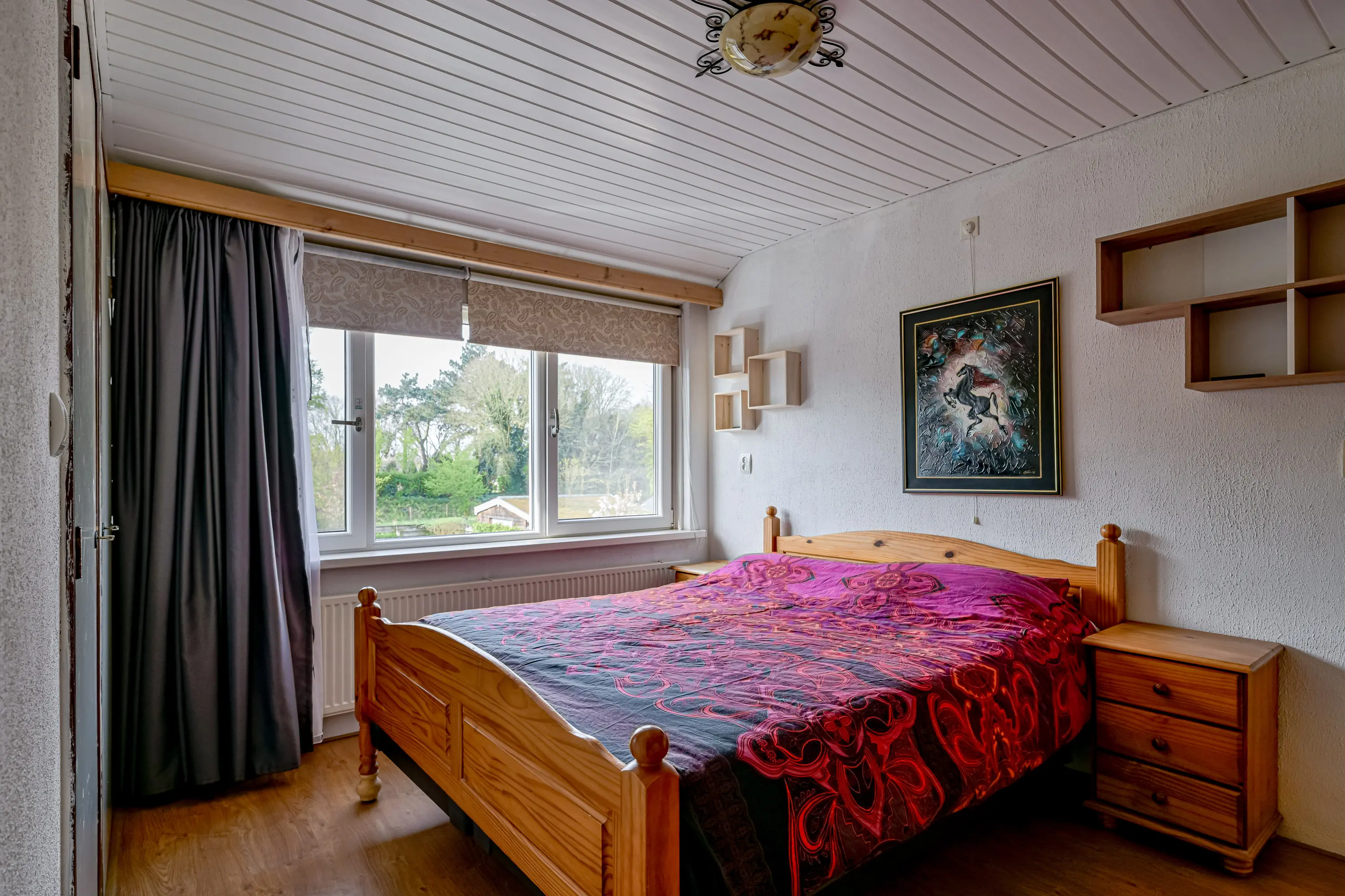 Eerste verdieping: Via de trap bereikt u de 1e etage. Hier vindt u drie ruime slaapkamers welke voorzien zijn van kunststof kozijnen met functionele horren om insecten buiten te houden. De badkamer is keurig onderhouden en voorzien van een wastafel met meubel en een douche.