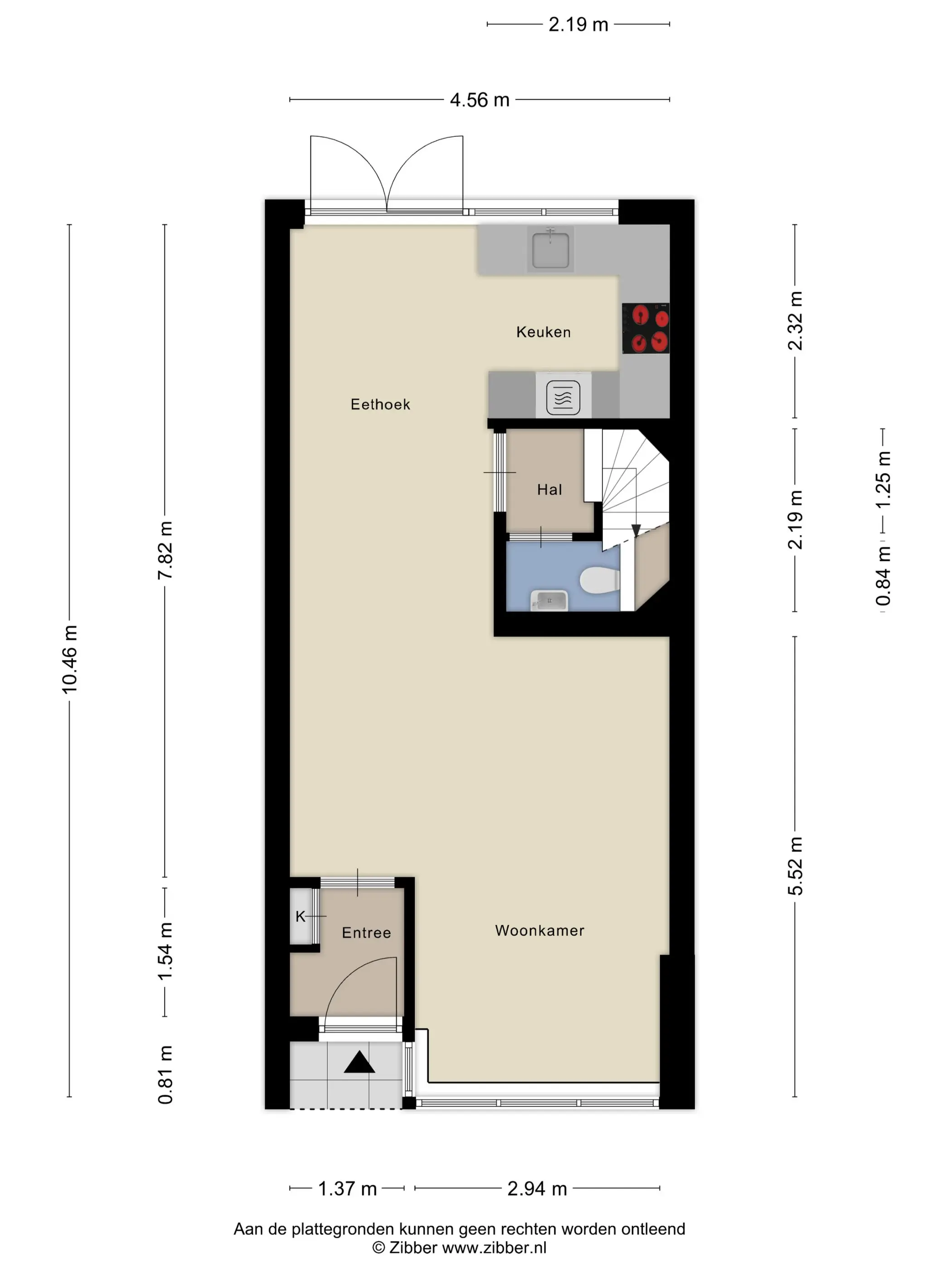 Je komt binnen in de hal met meterkast en loopt door naar de lichte, straatgerichte woonkamer. Dankzij de grote raampartijen en de strakke afwerking voelt deze ruimte prettig ruim en uitnodigend aan.