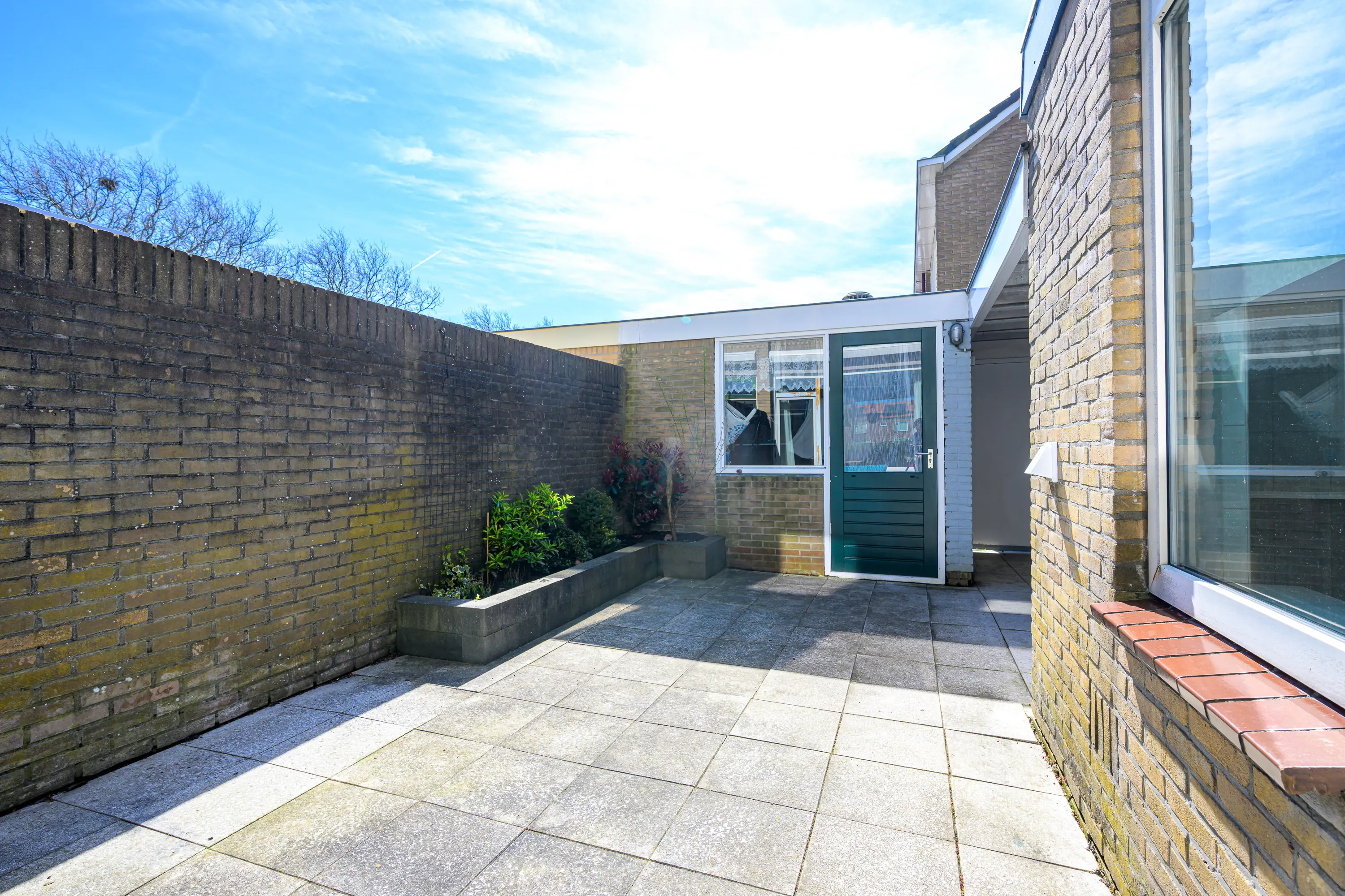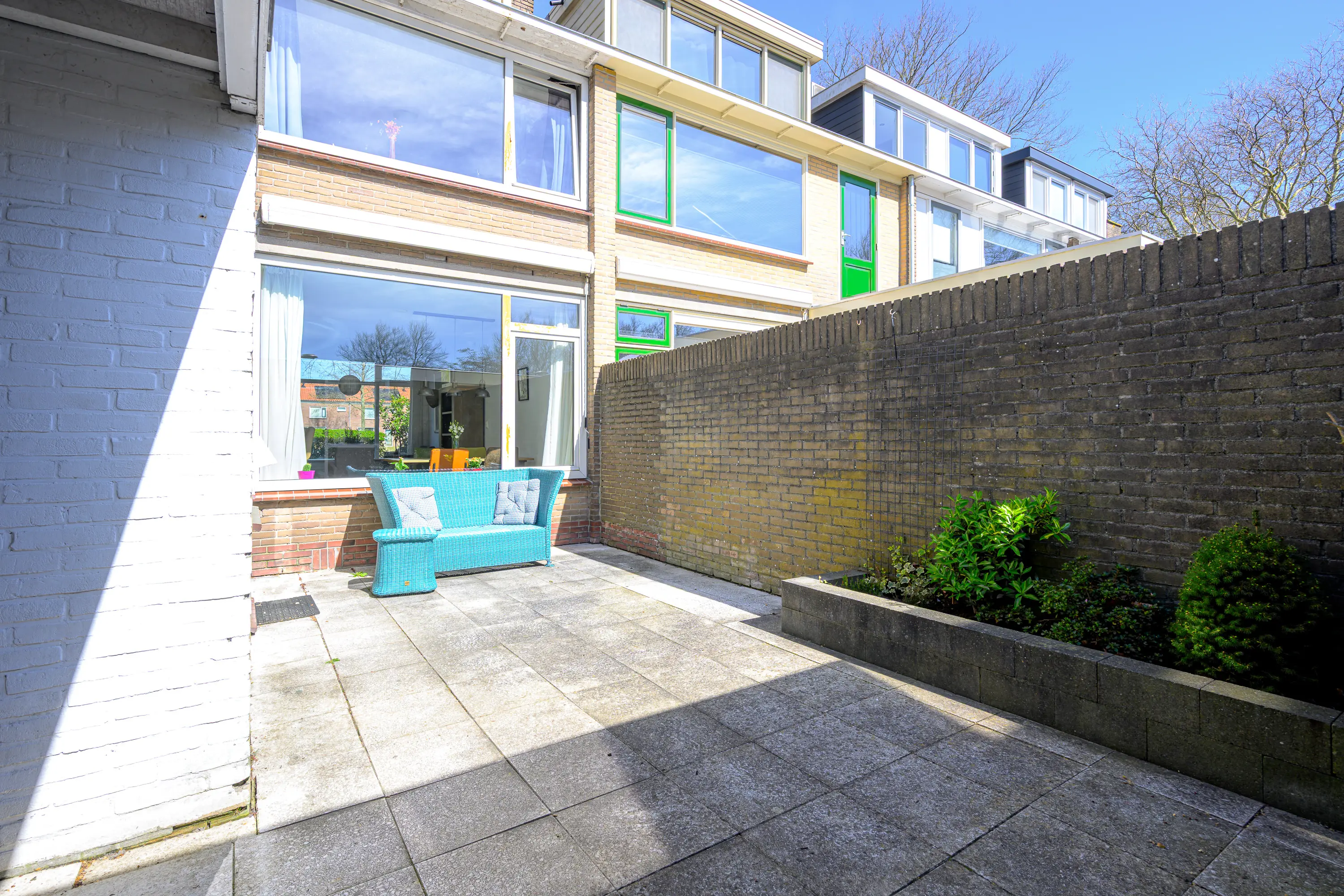 De achtertuin is gelegen op het zuiden en dat is een garantie voor veel zonuren. De tuin is voorzien van sierbestrating een verhoogde plantenborder en een overkapping. De tuin is via een achterom bereikbaar en de stenen berging maakt het plaatje compleet. Gewoon een lekkere tuin dus! De voortuin is netjes en voorzien van siergrind en een groene haag.