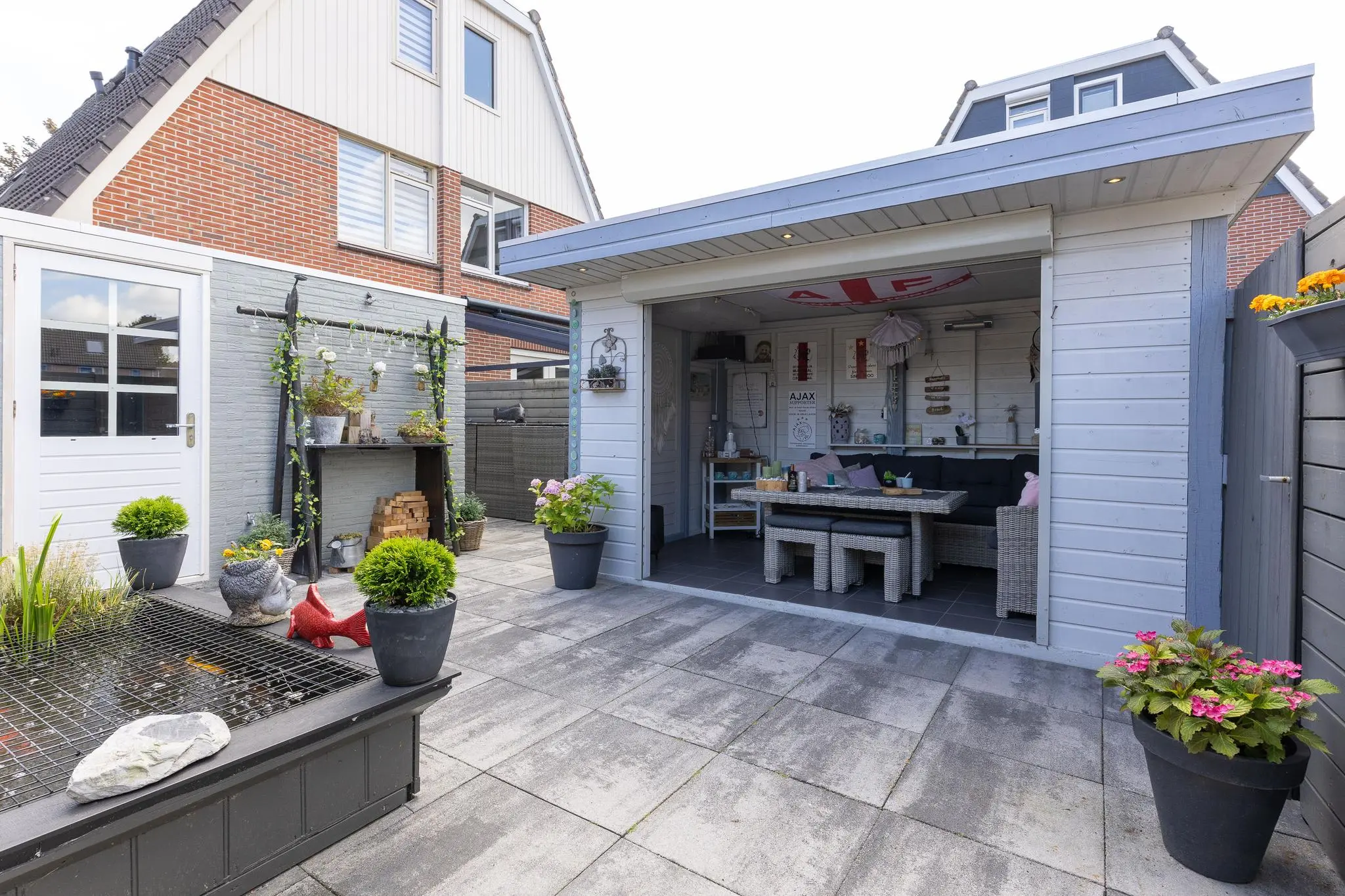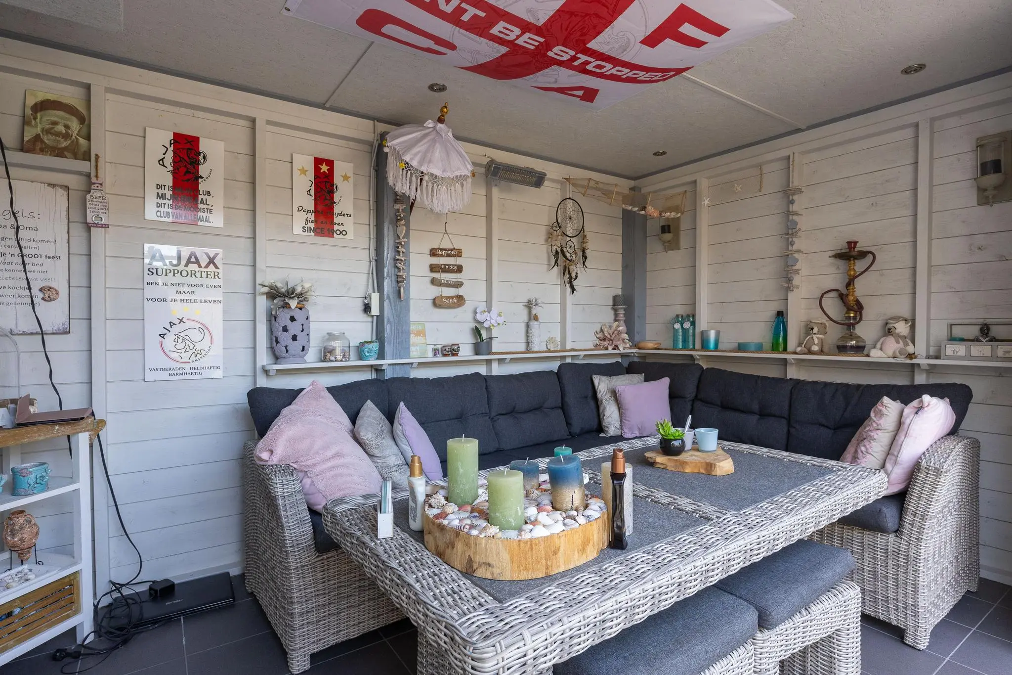 In de nette aangelegde tuin vind je een vrijstaande veranda, waar je tot in de late uurtjes heerlijk kunt genieten van het buitenleven. Of je nu houdt van barbecueën, ontspannen met een goed boek of gezellig borrelen met vrienden – deze plek is een verlengstuk van je woonkamer.