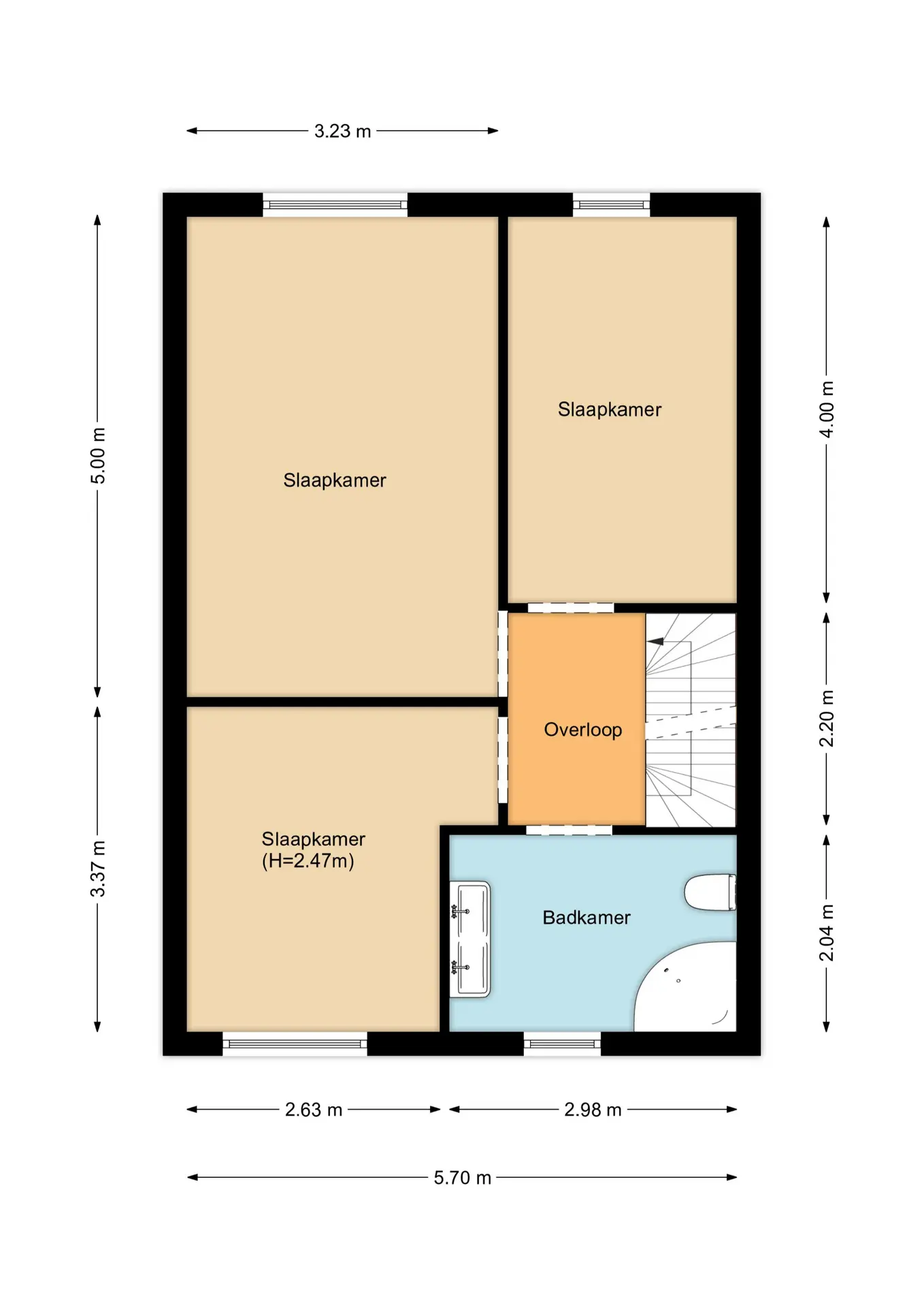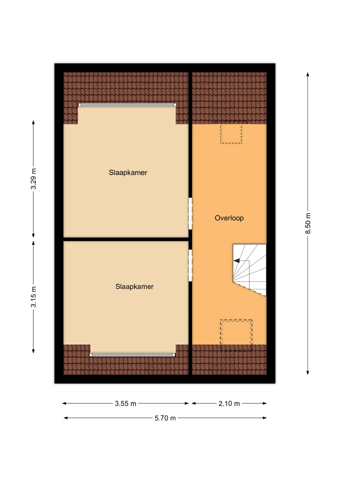 Dankzij de kunststof dakkapellen aan zowel de voor- als achterzijde is ook de tweede etage verrassend ruim en licht. Hier vindt u nog twee extra (slaap)kamers, ideaal voor kinderen, werken vanuit huis of hobby’s. Op de overloop is ruimte voor de cv-installatie, airconditioning, extra bergruimte, een dakraam aan de voorzijde (voorzien van rolluik), en dakraam aan de achterzijde.