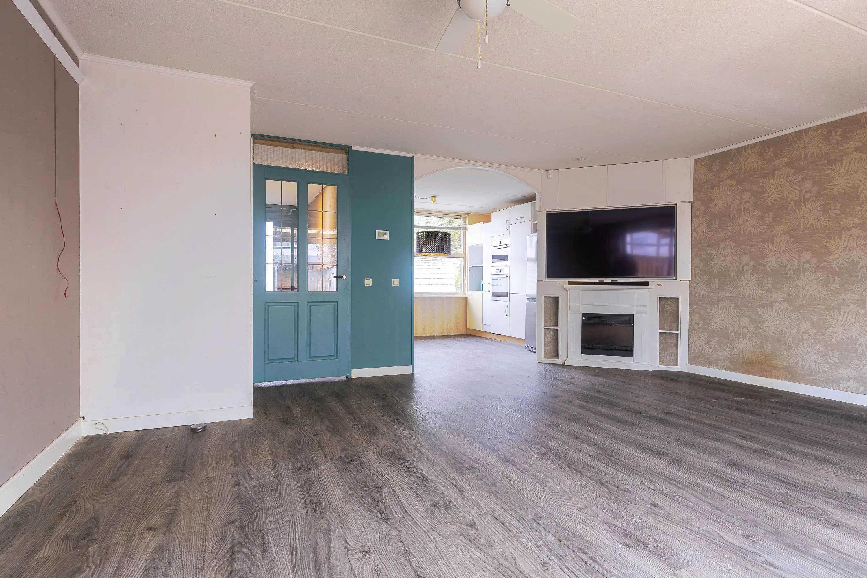 U komt binnen middels de voortuin in de hal met meterkast, toilet en trapopgang naar boven. Vanuit hier bereikt u de ruime woonkamer met vloerverwarming over de gehele verdieping. De eyecatcher is het op maat gemaakte multimediameubel met geïntegreerde elektrische haard en televisie, een sfeervolle plek waar luxe en gezelligheid samenkomen. Grote ramen en een aluminium schuifpui zorgen voor volop daglicht en een directe verbinding met de achtertuin.