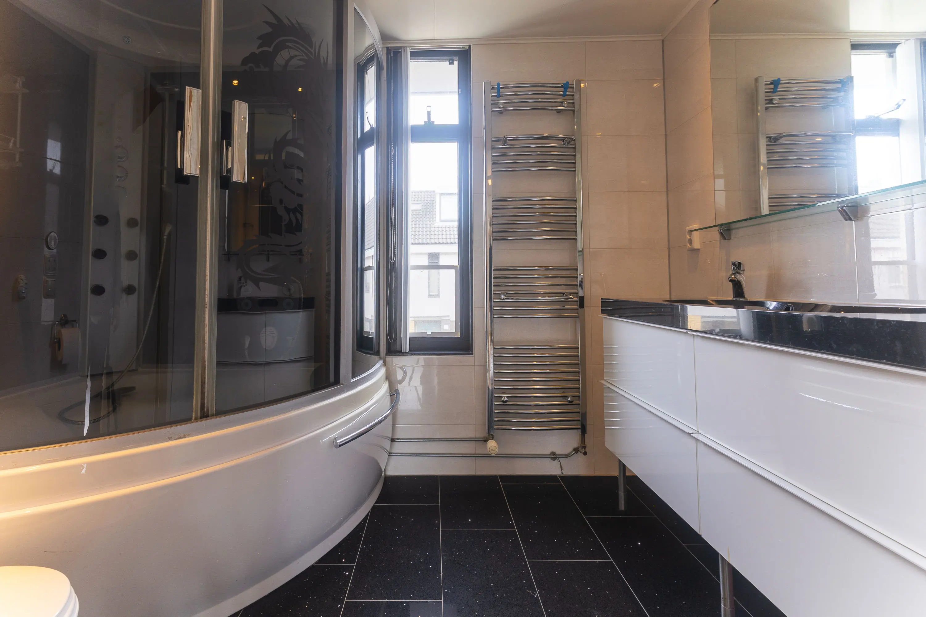 De overloop geeft toegang tot drie ruime slaapkamers, voorzien van elektrische rolluiken. Twee kamers liggen aan de achterzijde en één aan de voorzijde. De badkamer (2015) is voorzien van een whirlpool ligbad/douchecabine, dubbele wastafel, tweede toilet en een wandradiator. Compleet en comfortabel.