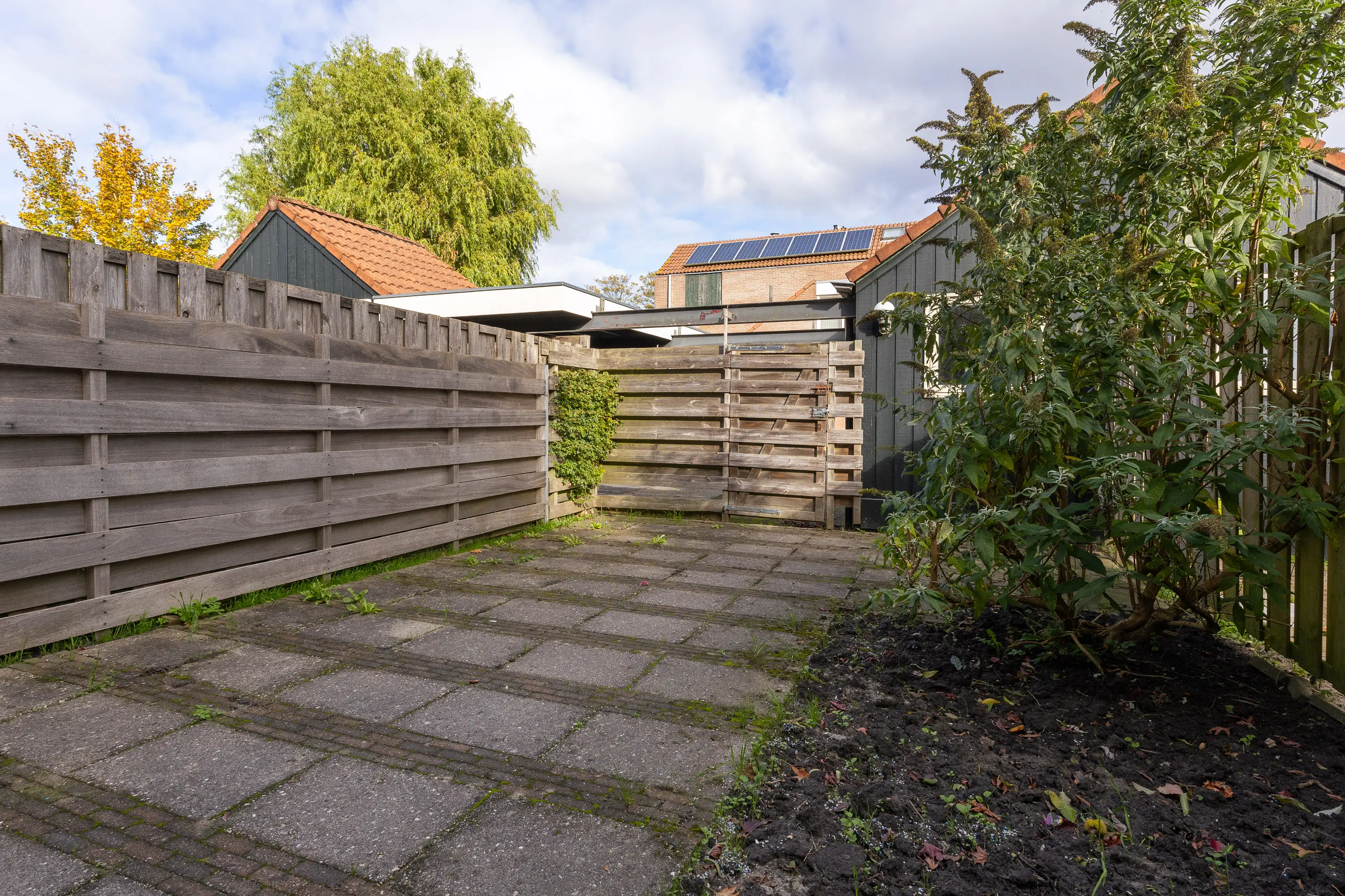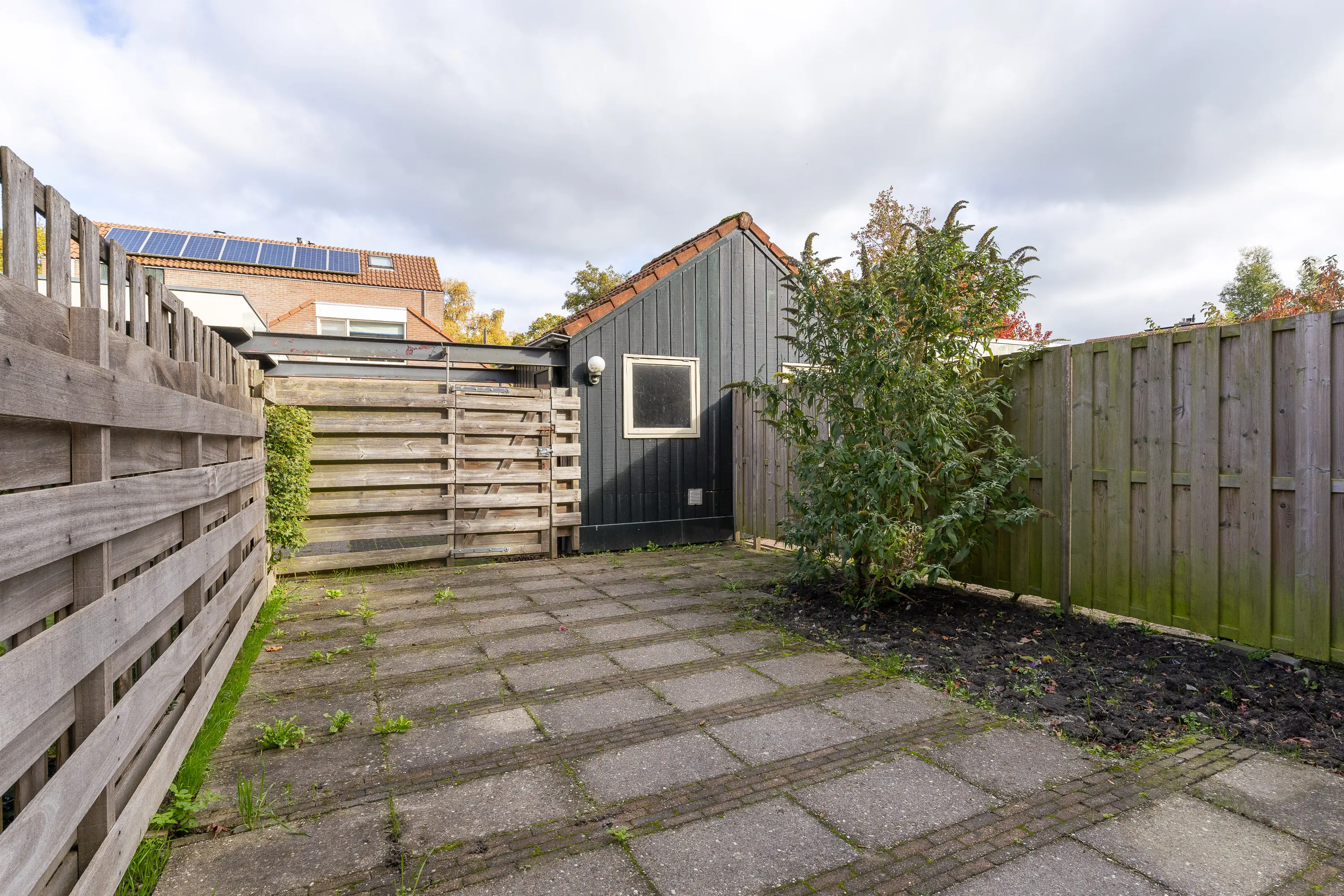 Met de eigen carport aan de achterzijde heb je de luxe van parkeren op eigen terrein. Voor het bezoek zijn er openbare parkeerplaatsen. De stenen schuur eveneens aan de achterzijde biedt voldoende plek voor de fiets en andere zaken.