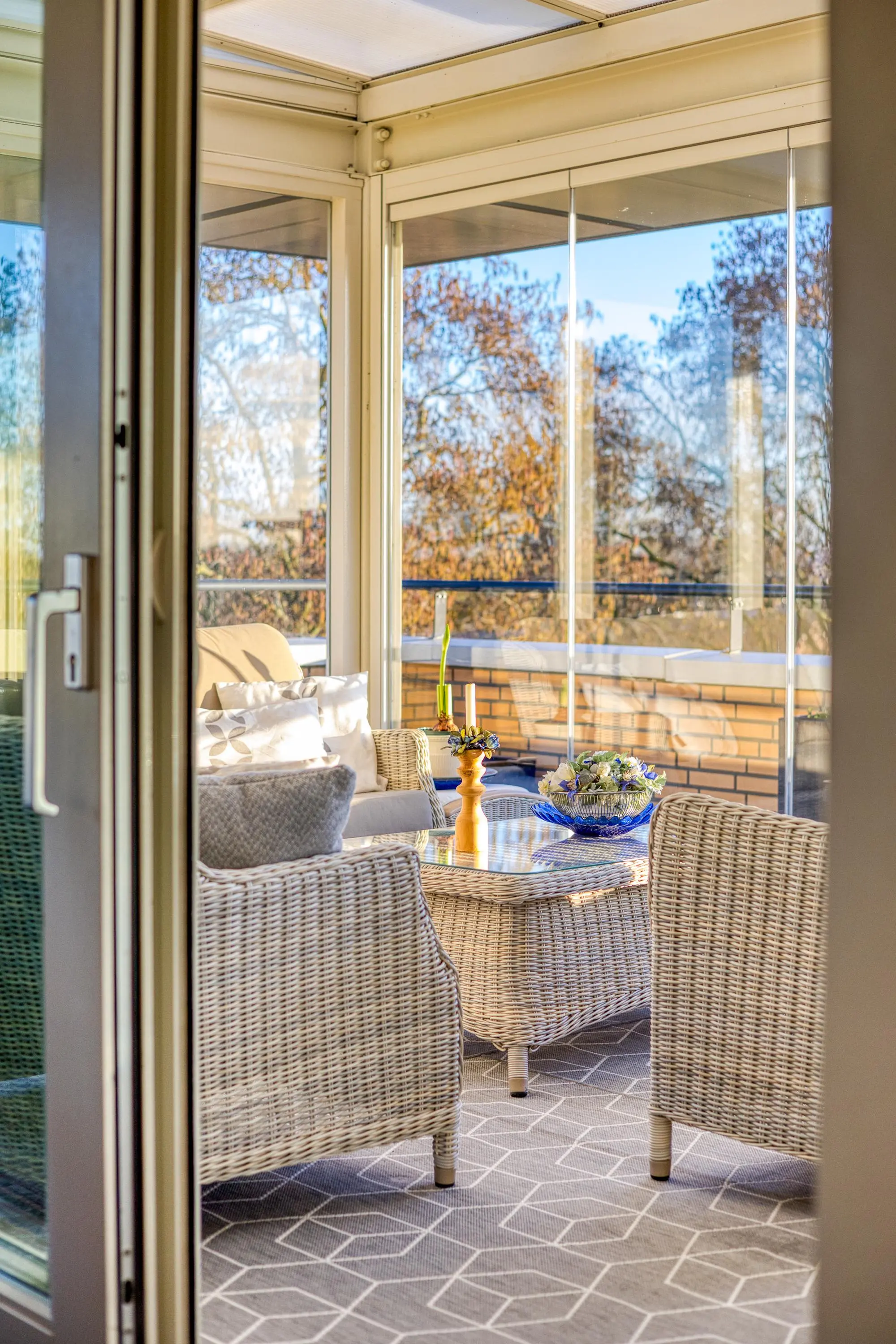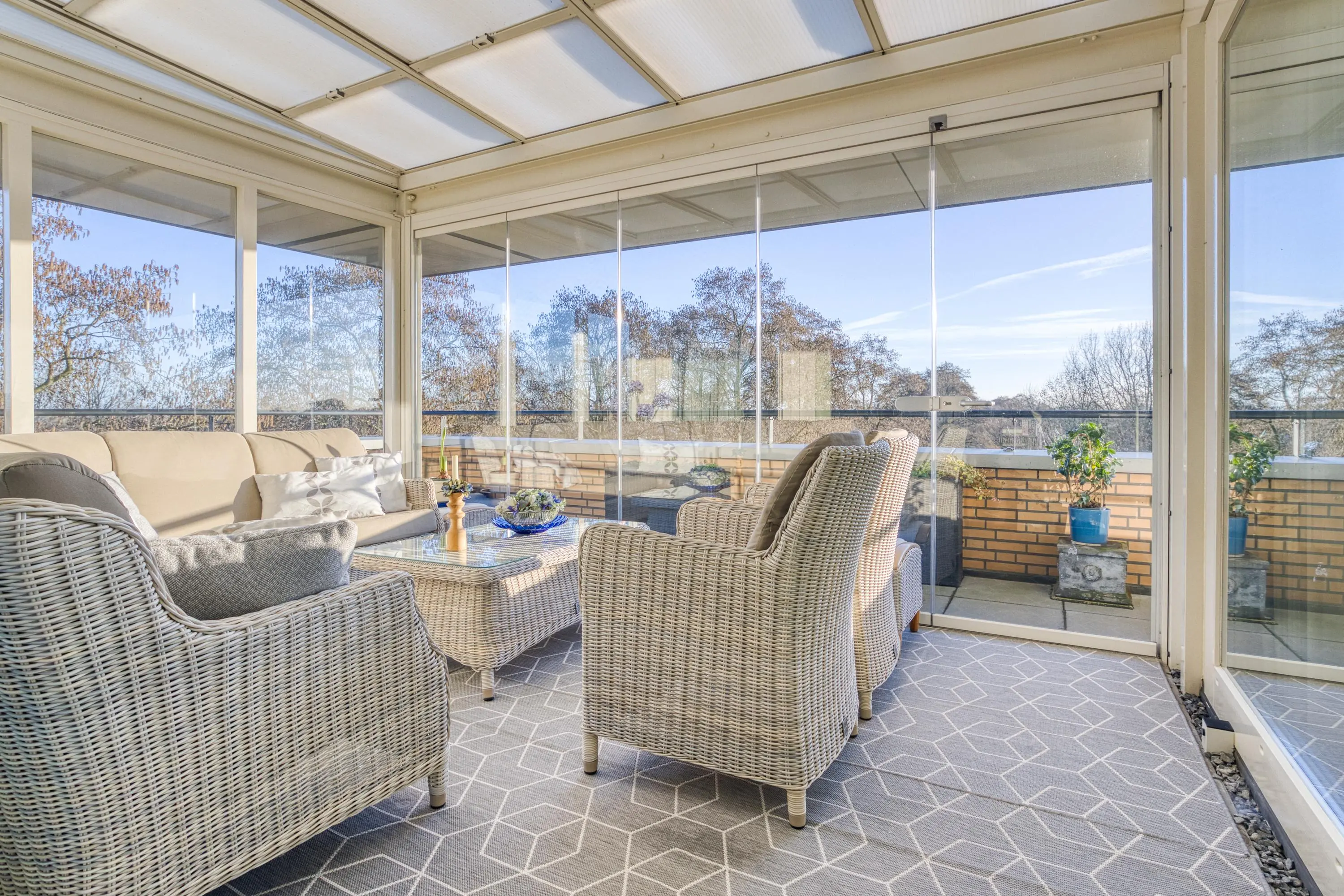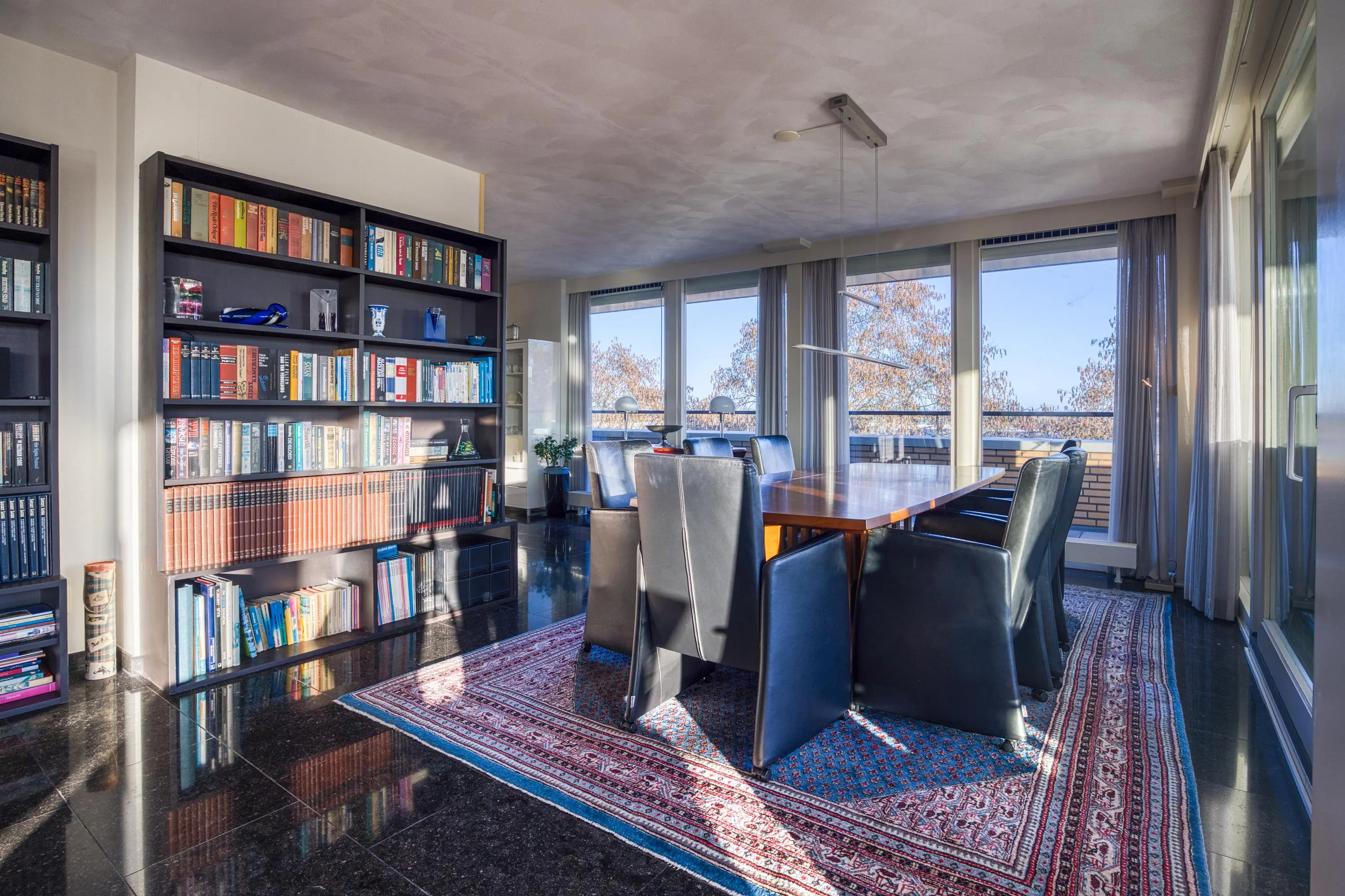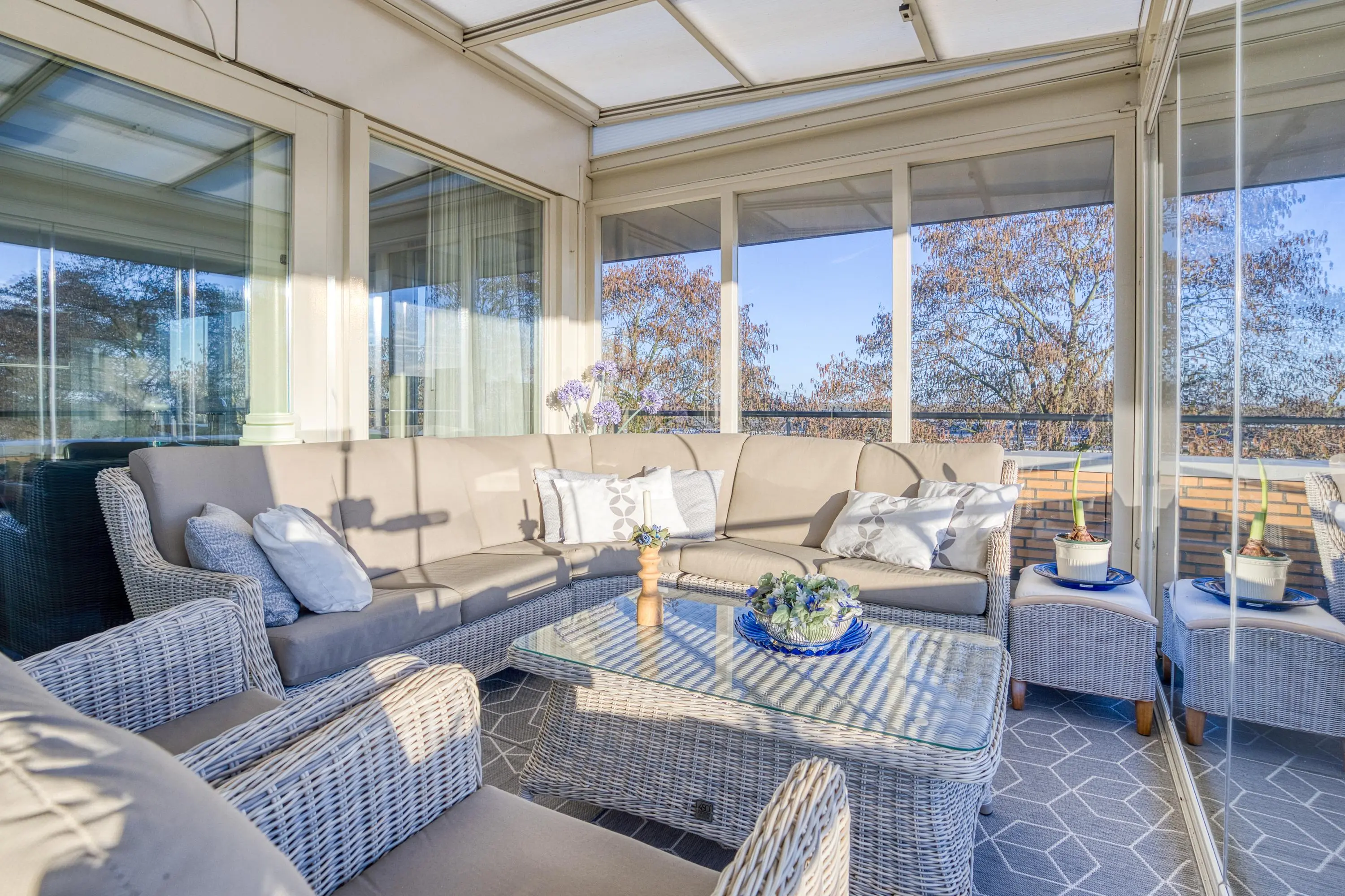 Het buitenterras is maar liefst zo’n 14 m2 (op het Zuid/Zuid/Oost) is er één van ongekend niveau; het geheel kan worden afgesloten door een inklapbare glazen wand en het eveneens te openen dak. Het hele jaar door kunt u daardoor op dit fijne plekje buiten genieten van het fraaie uitzicht. Daarnaast zijn bijna alle ruimtes van het appartement buitenom via een balkon bereikbaar en zijn er rondom de woning diverse elektrisch bedienbare screens geplaatst.