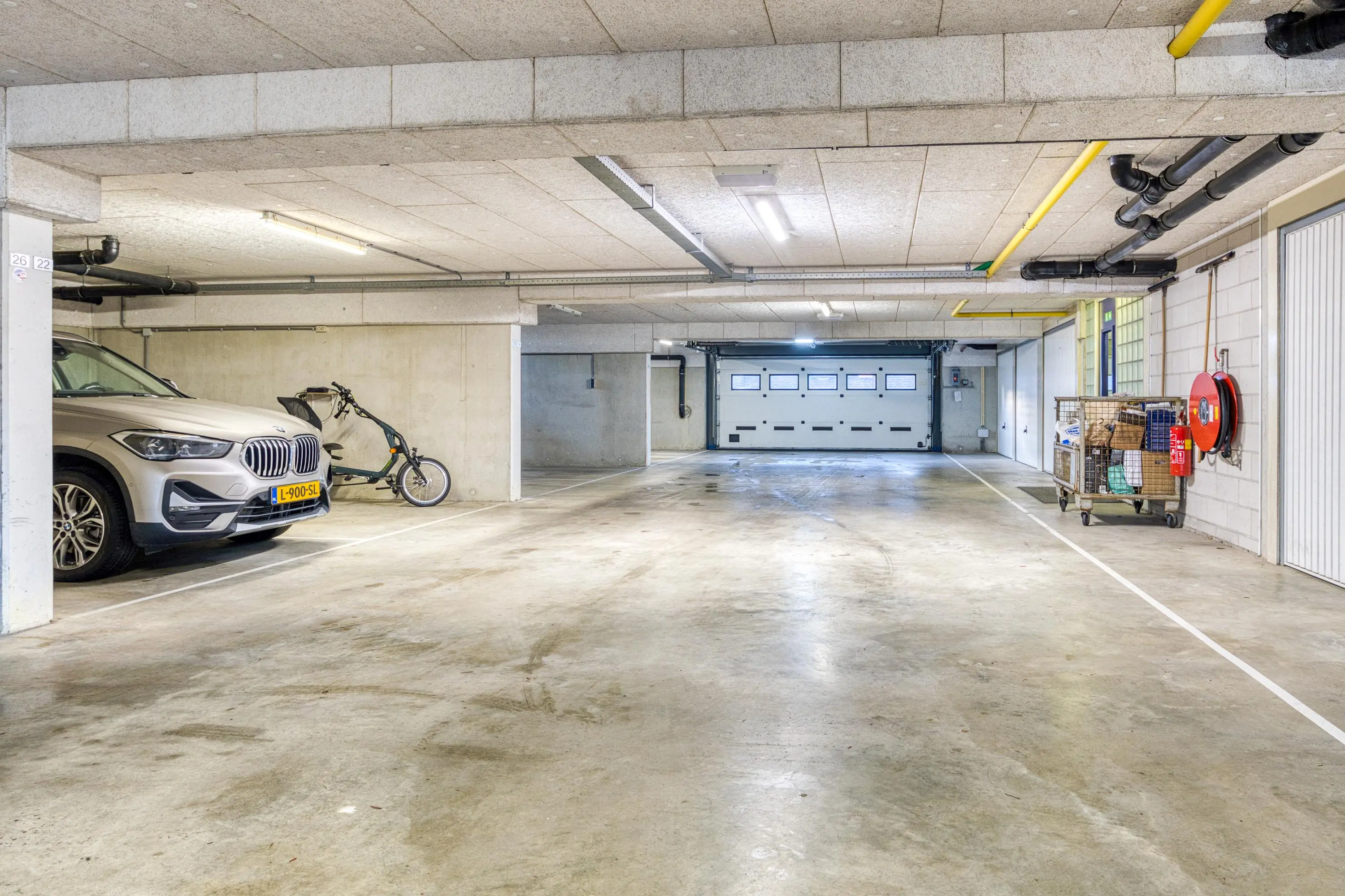 Nabij het woongebouw is voldoende parkeergelegenheid dat exclusief bij het gebouw behoort, maar natuurlijk kunt u zelf gebruik maken van uw eigen ruime parkeerplaats in de onderliggende afgesloten parkeergarage. Deze is bereikbaar via de (’s winters verwarmde) hellingbaan. Daarnaast beschikt u in de parkeergarage ook over een eigen berging met elektra zodat u desgewenst daar uw elektrische fiets kunt opladen.