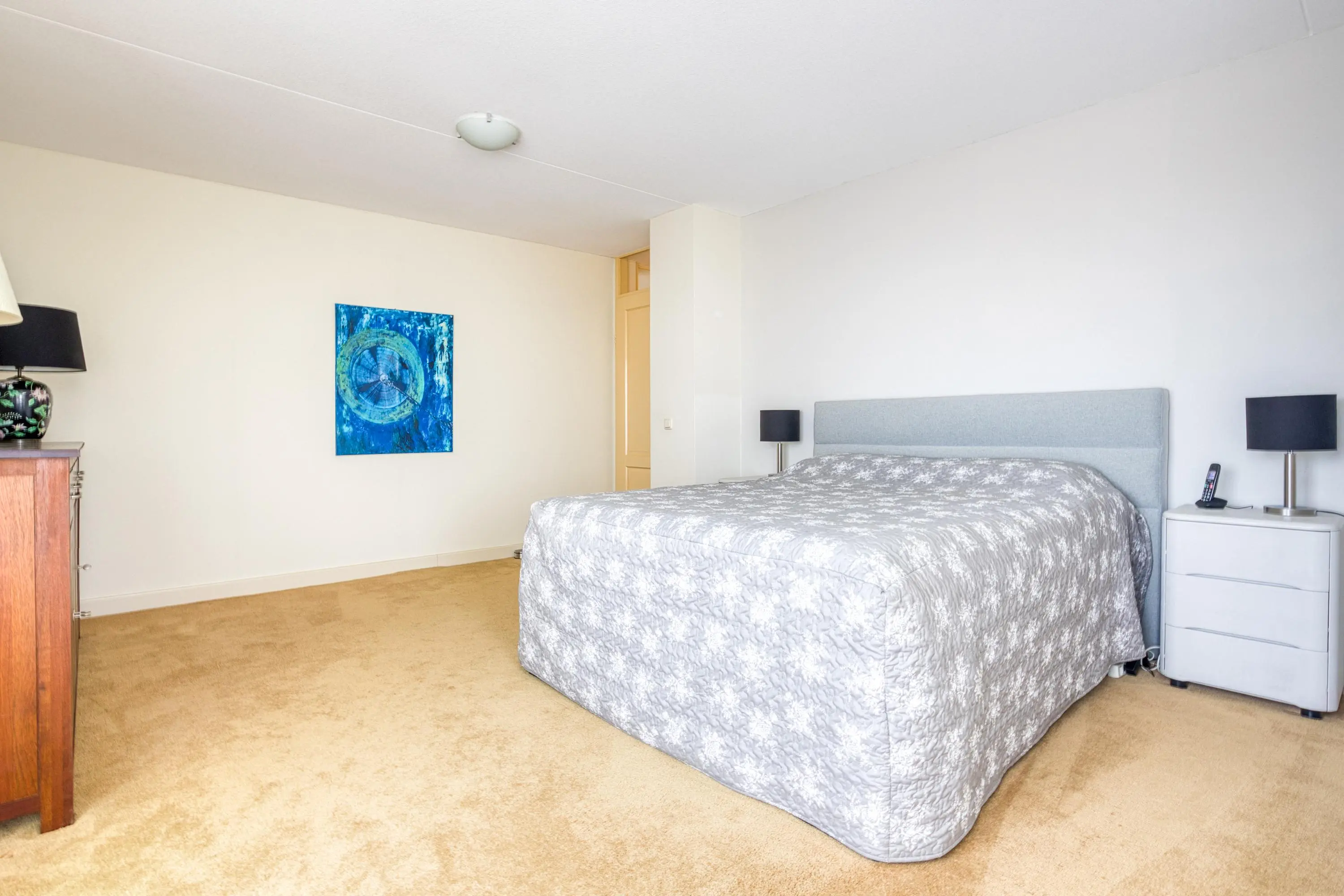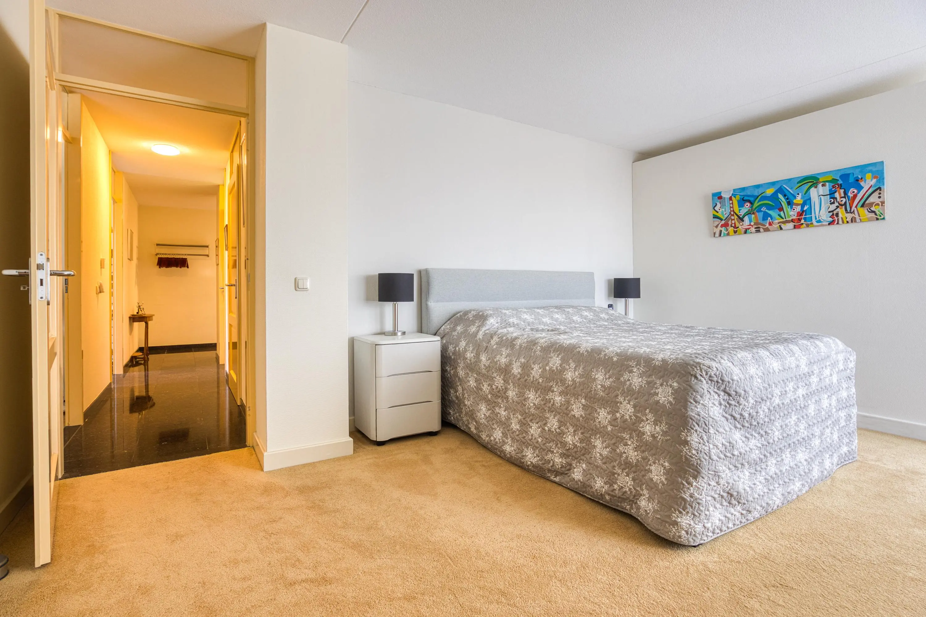 De twee slaapkamers hebben een zeer royale afmeting en zijn heerlijk licht door de grote raampartijen met schuifpui. De masterbedroom is bovendien uitgevoerd met een walk in closet.