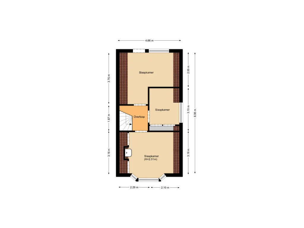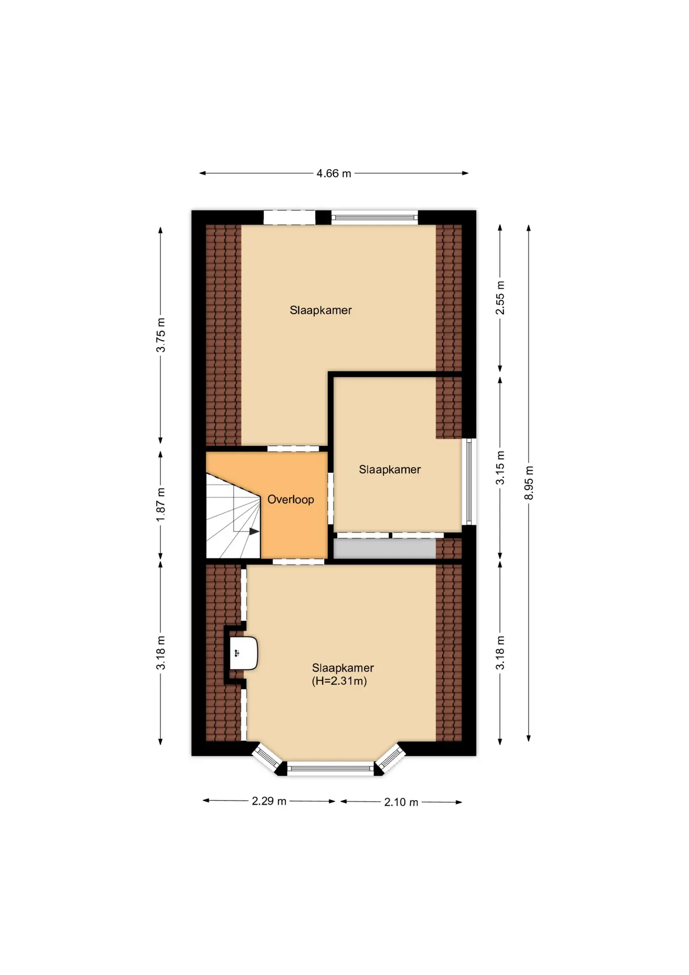 Hier vind je drie slaapkamers, elk met voldoende ruimte en lichtinval. De verdieping biedt een goede basis om naar eigen smaak te vernieuwen – ideaal voor wie droomt van een moderne slaapverdieping of bijvoorbeeld een thuiswerkplek.