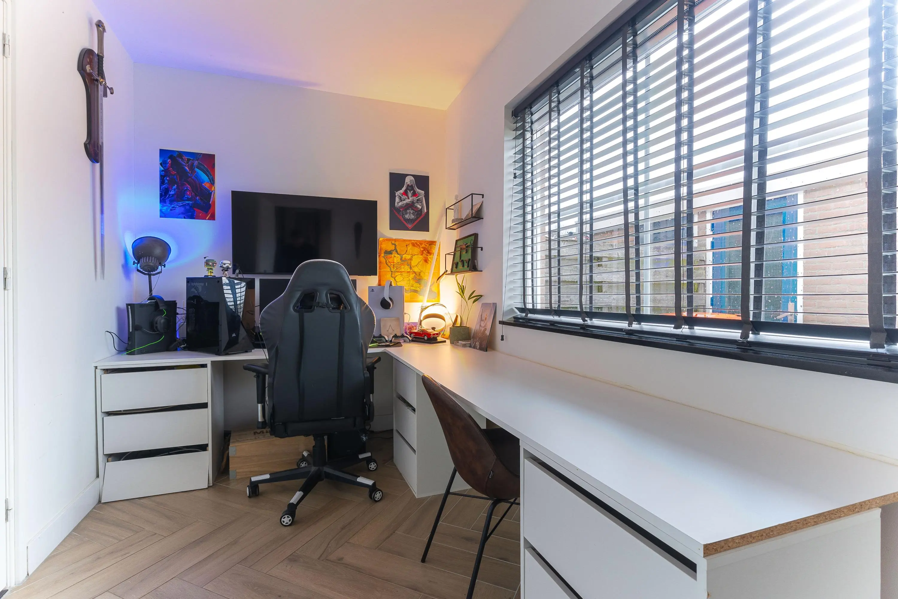 De tweede verdieping is praktisch ingedeeld in twee ruimtes: