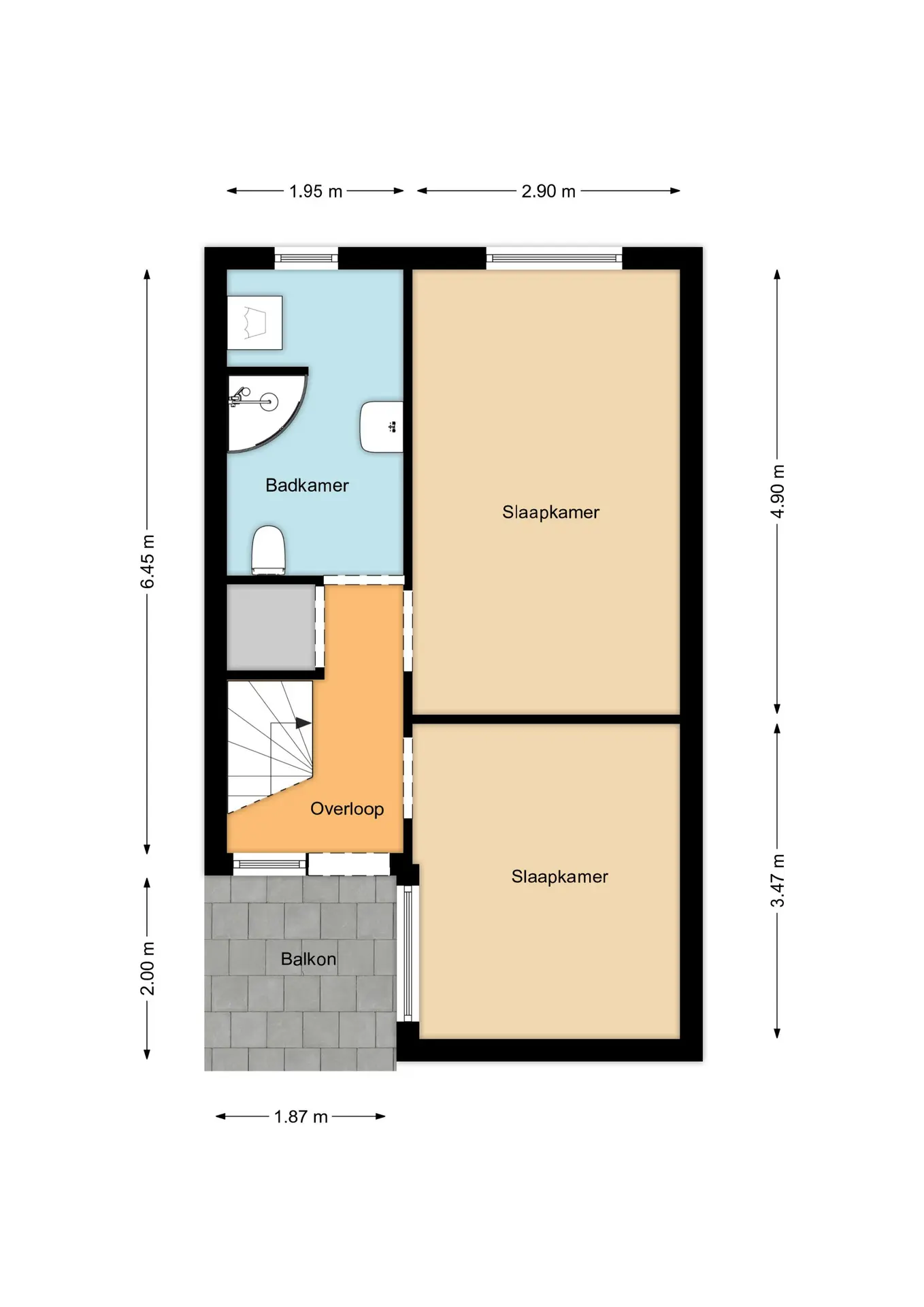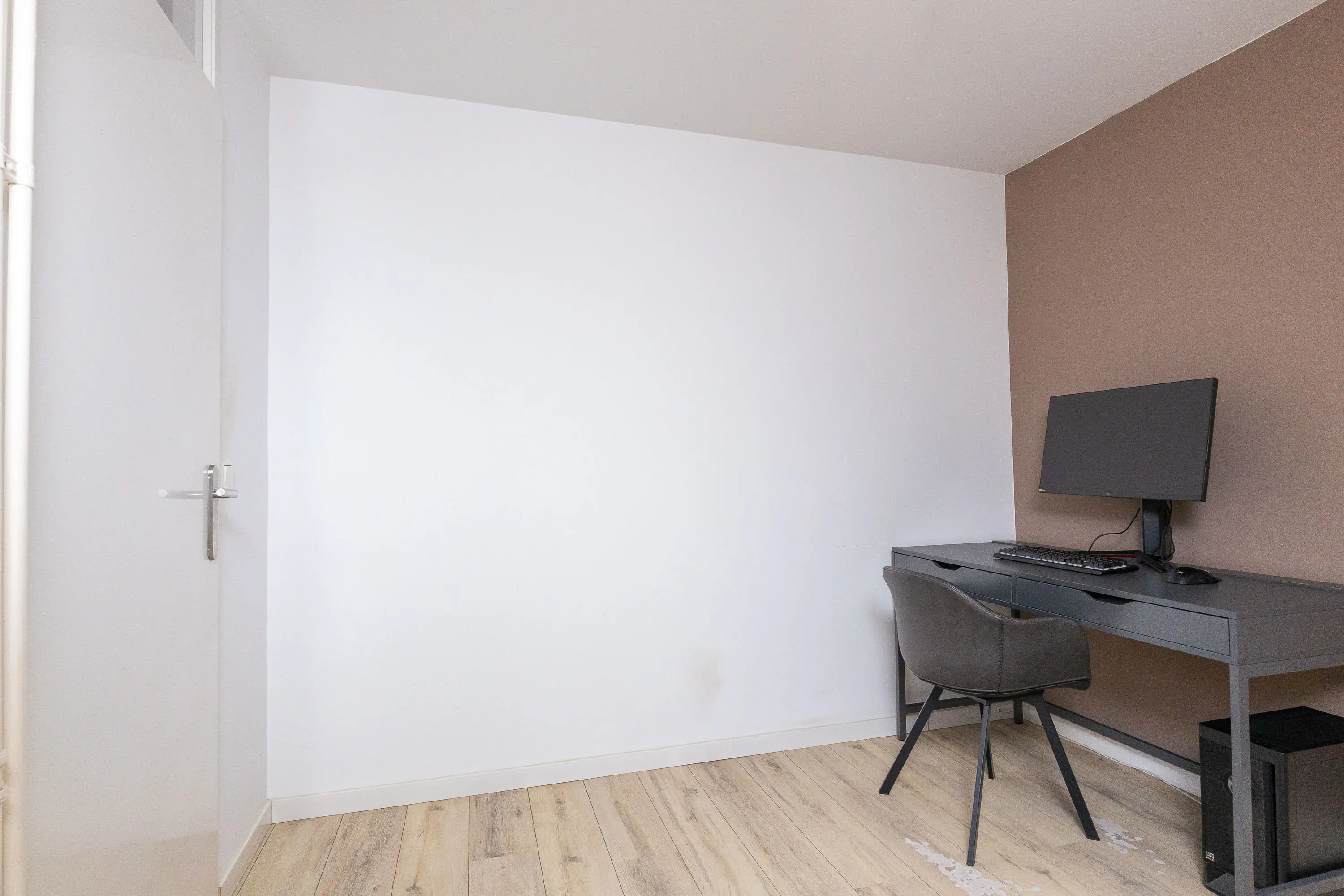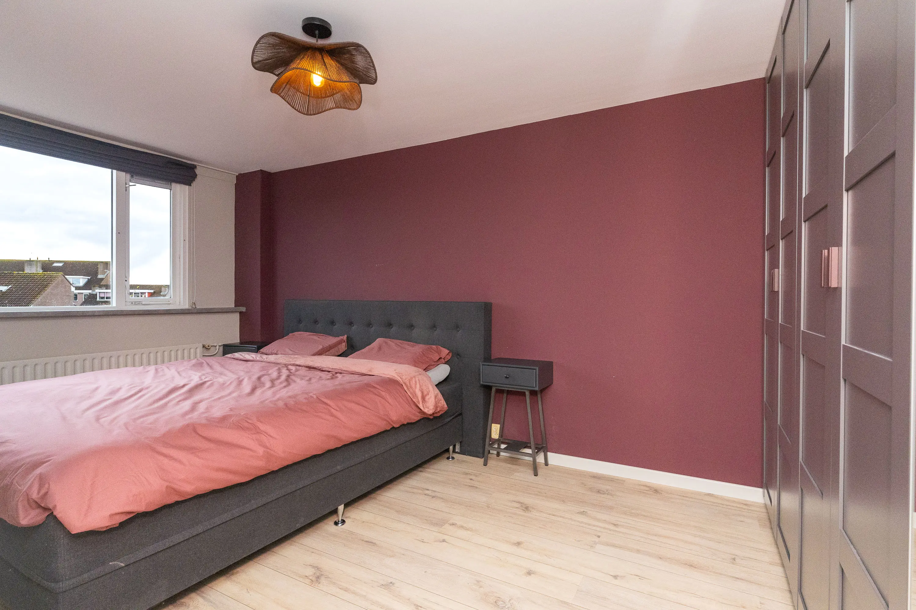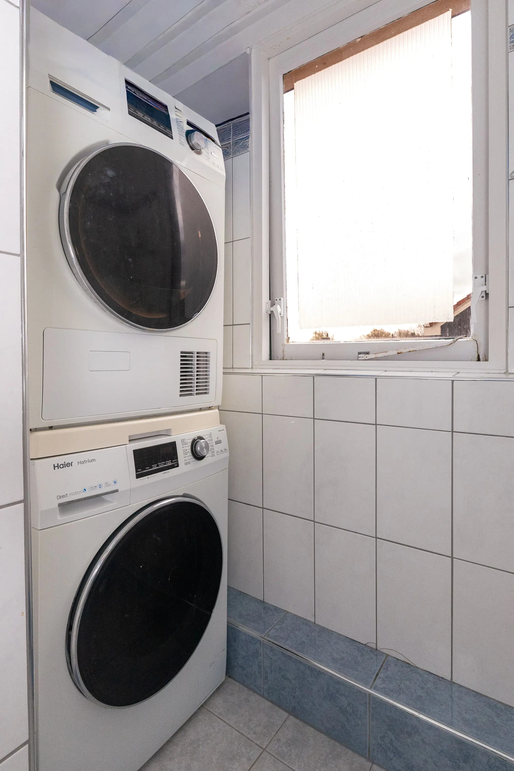 Op de overloop vind je een vaste kast én toegang tot het tweede balkon. Verder zijn er twee nette slaapkamers met doorlopende laminaatvloer en een lichte badkamer met douche, toilet, wastafel, wasmachine-aansluiting en ruimte voor een droger.