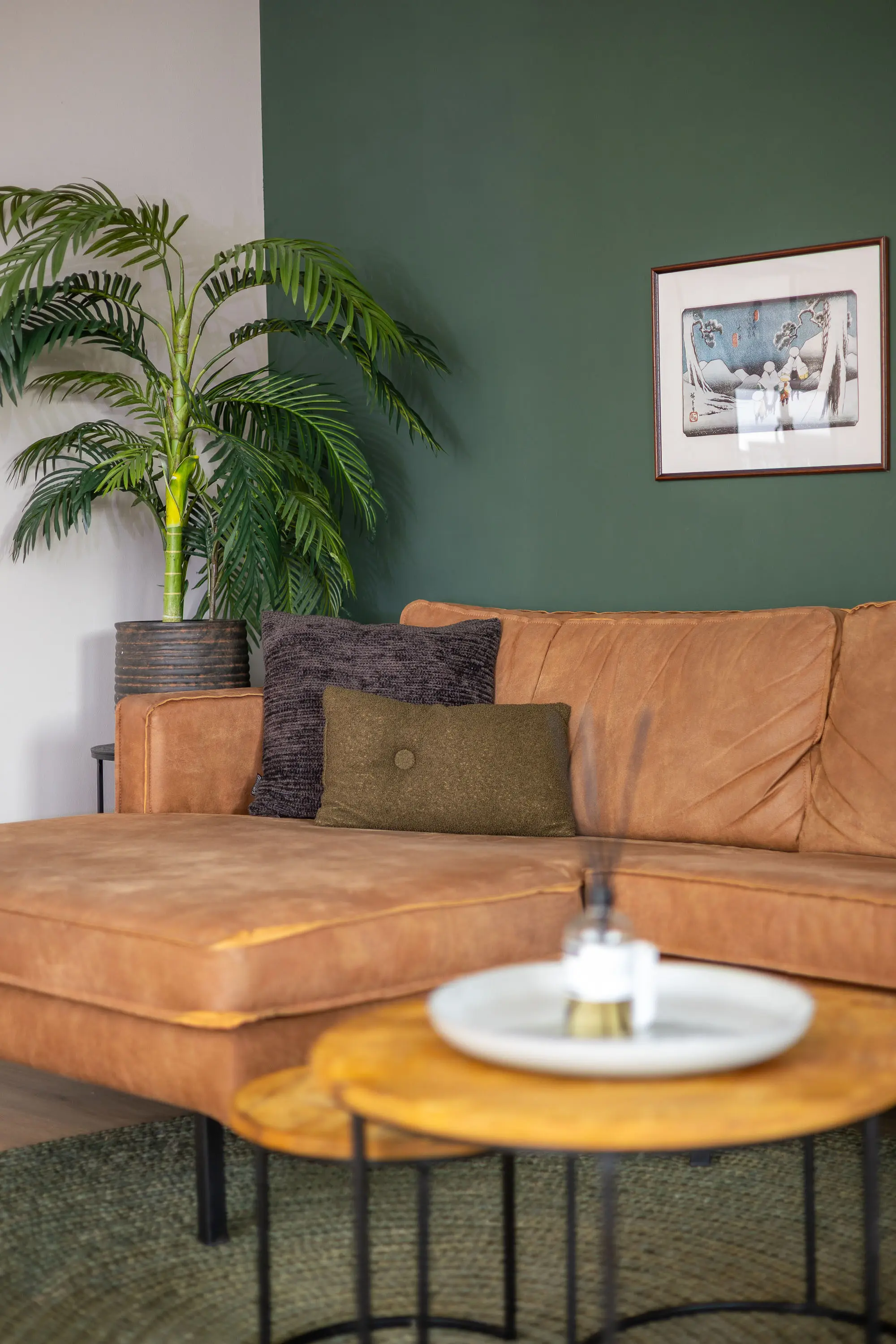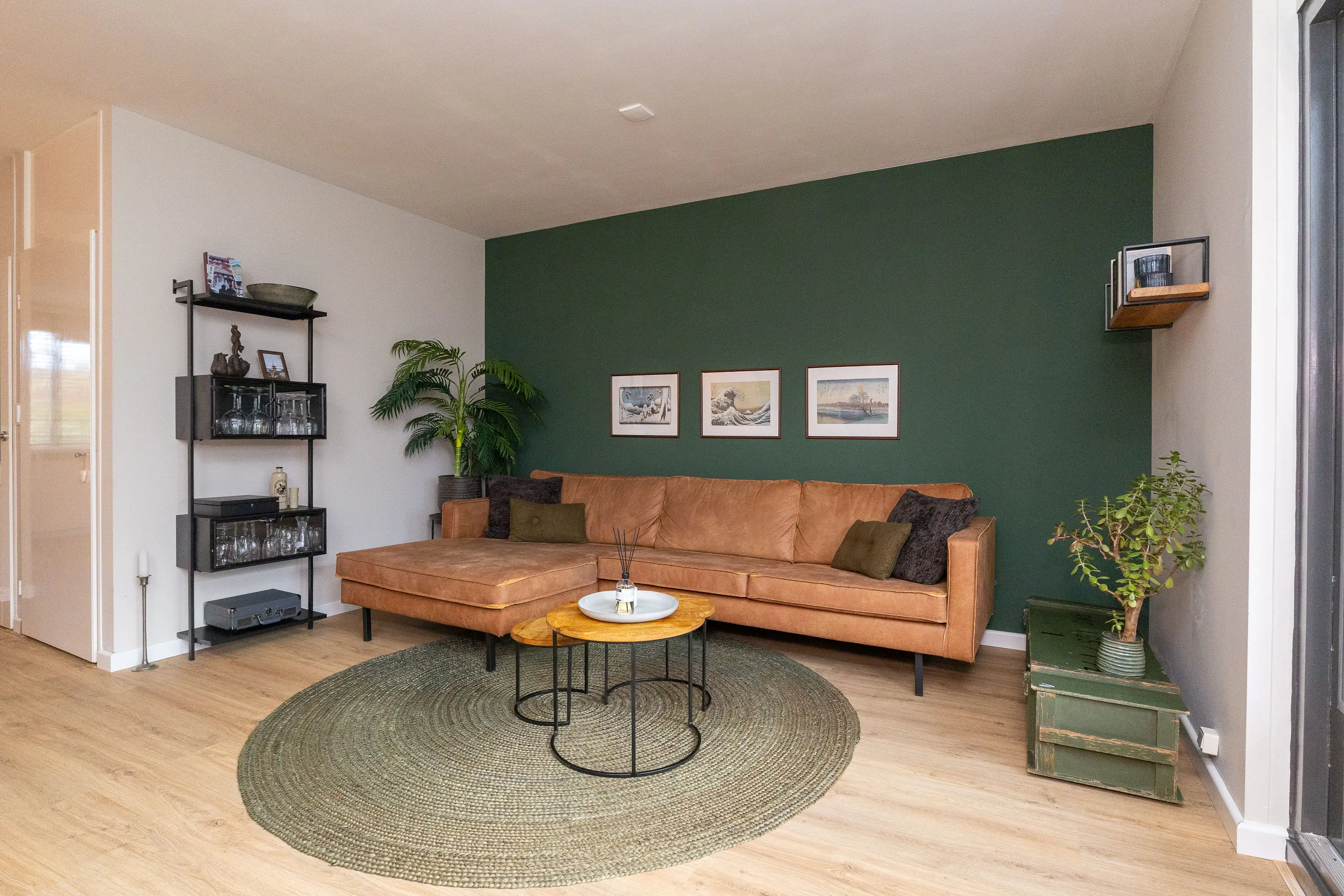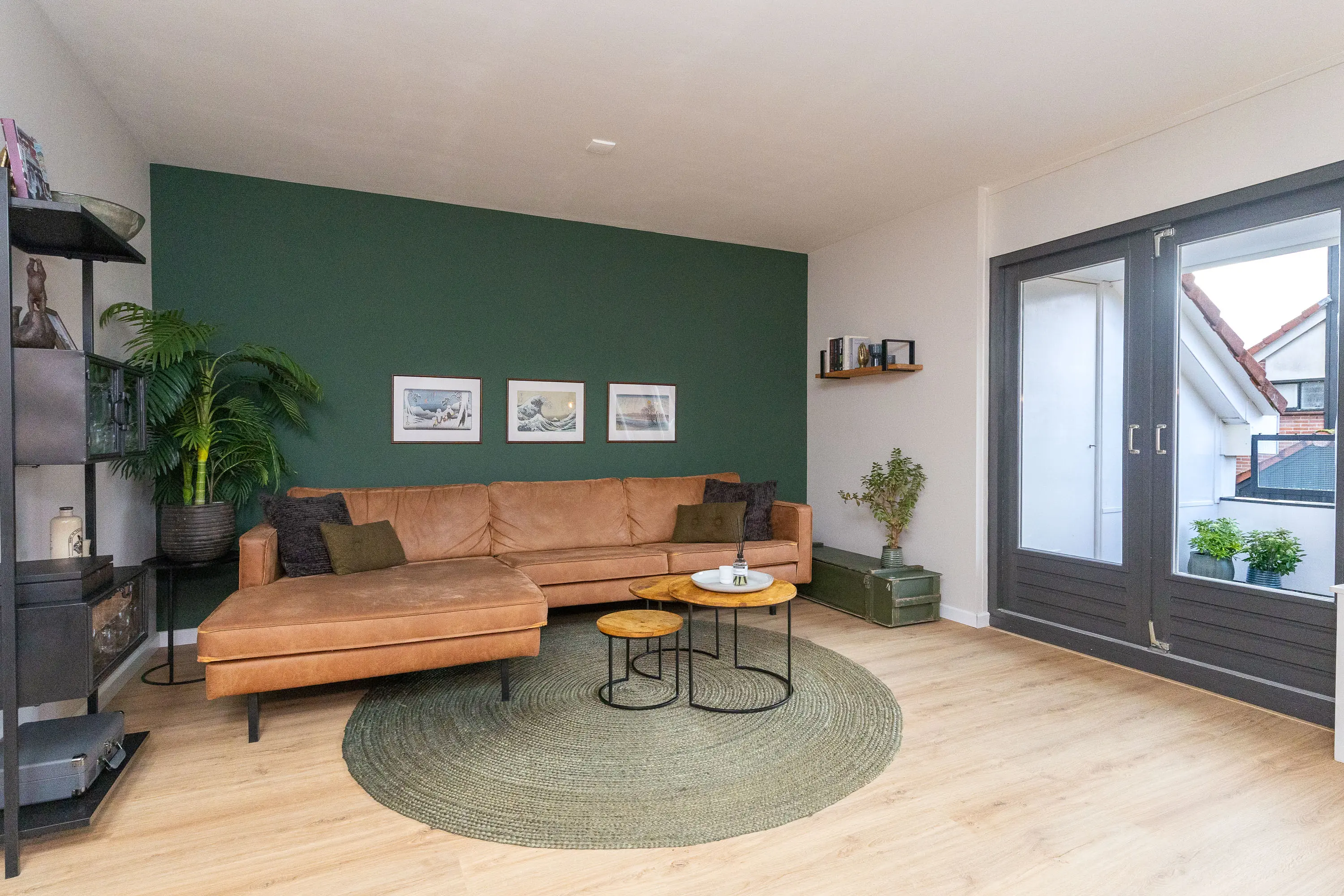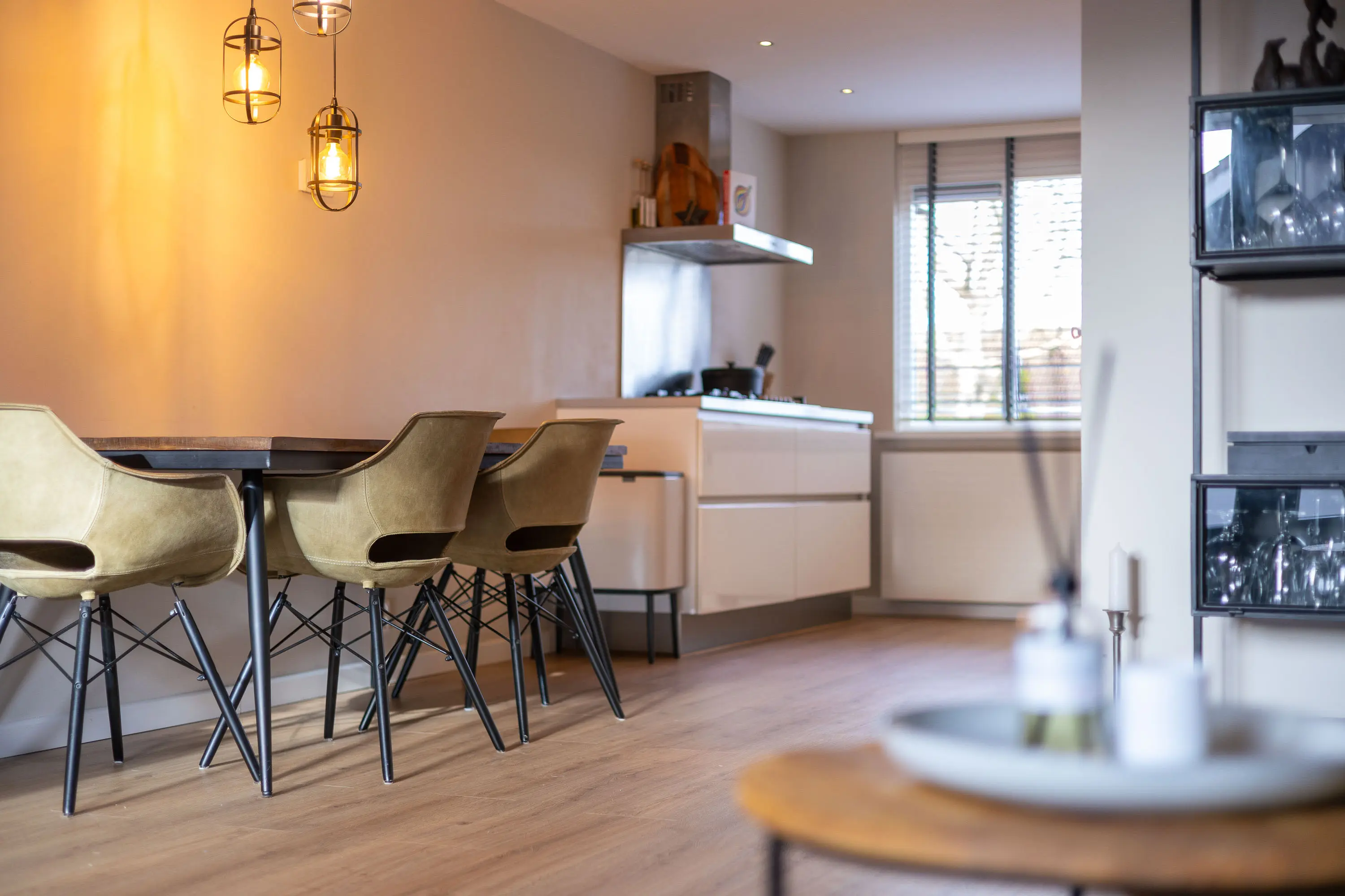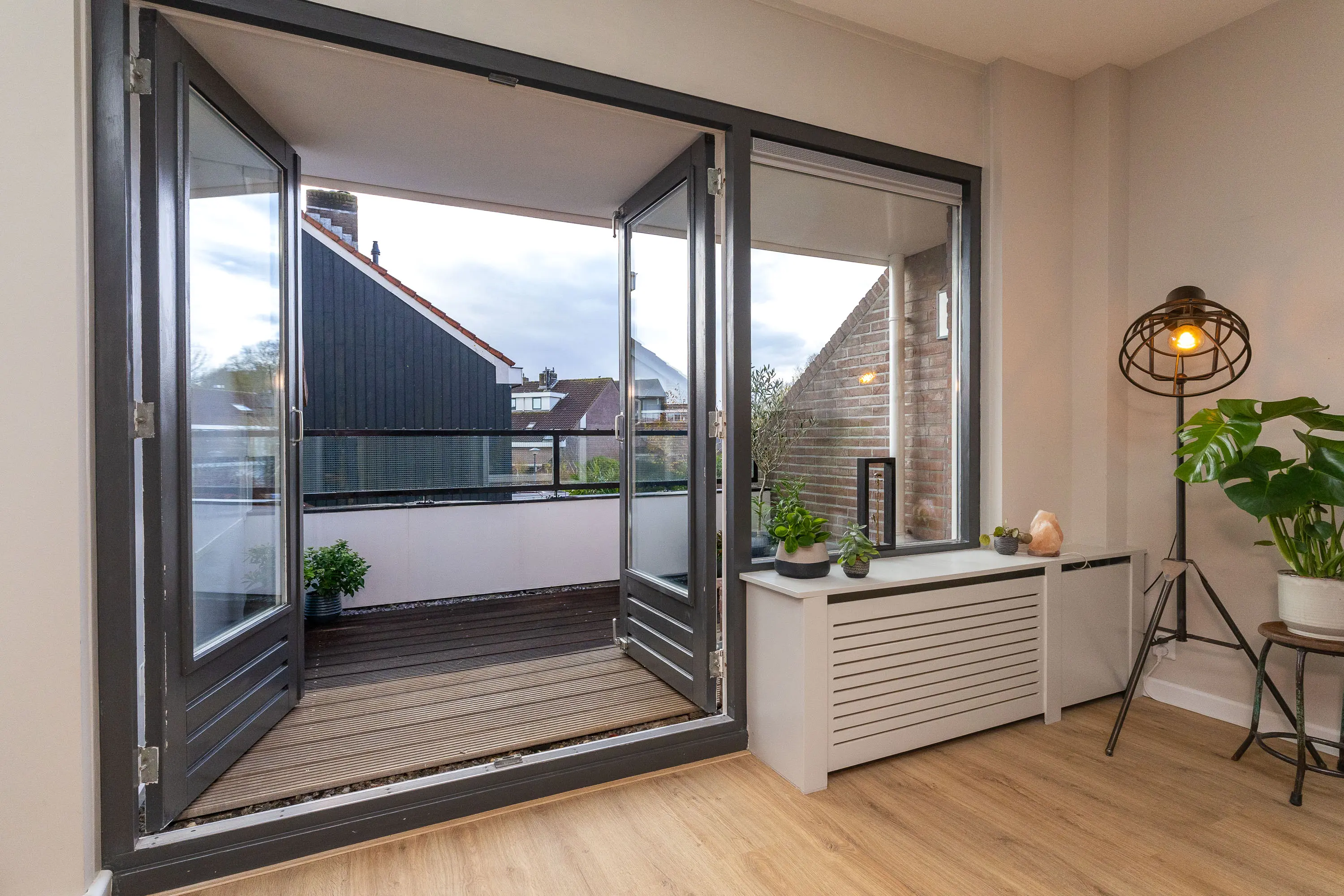 De woonkamer is licht, sfeervol en strak afgewerkt. Met warme dagen zet je de dubbele deuren open naar het balkon op het zuiden: jouw eigen zonnige plek voor een kop koffie, een boek of een gezellige borrel.
