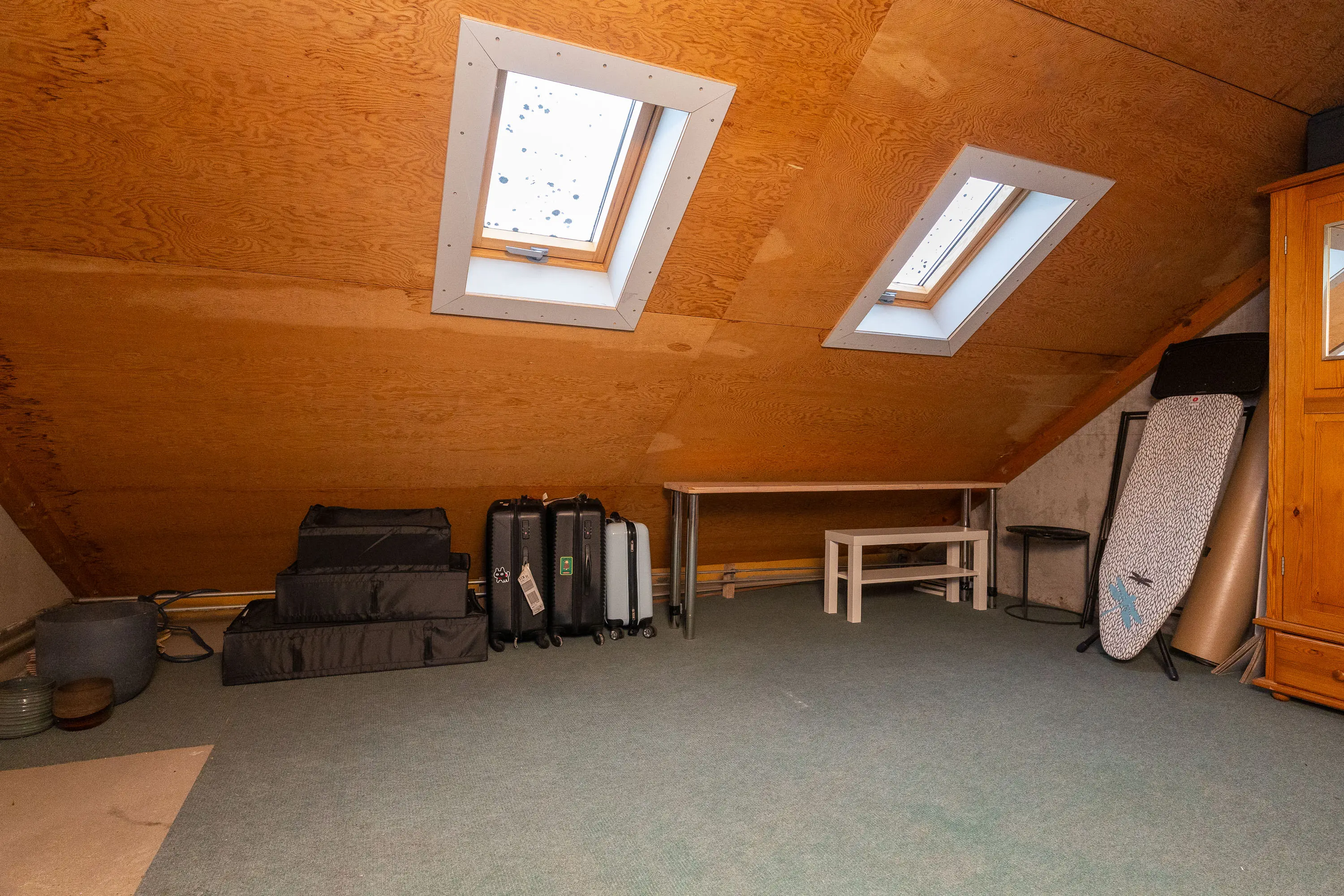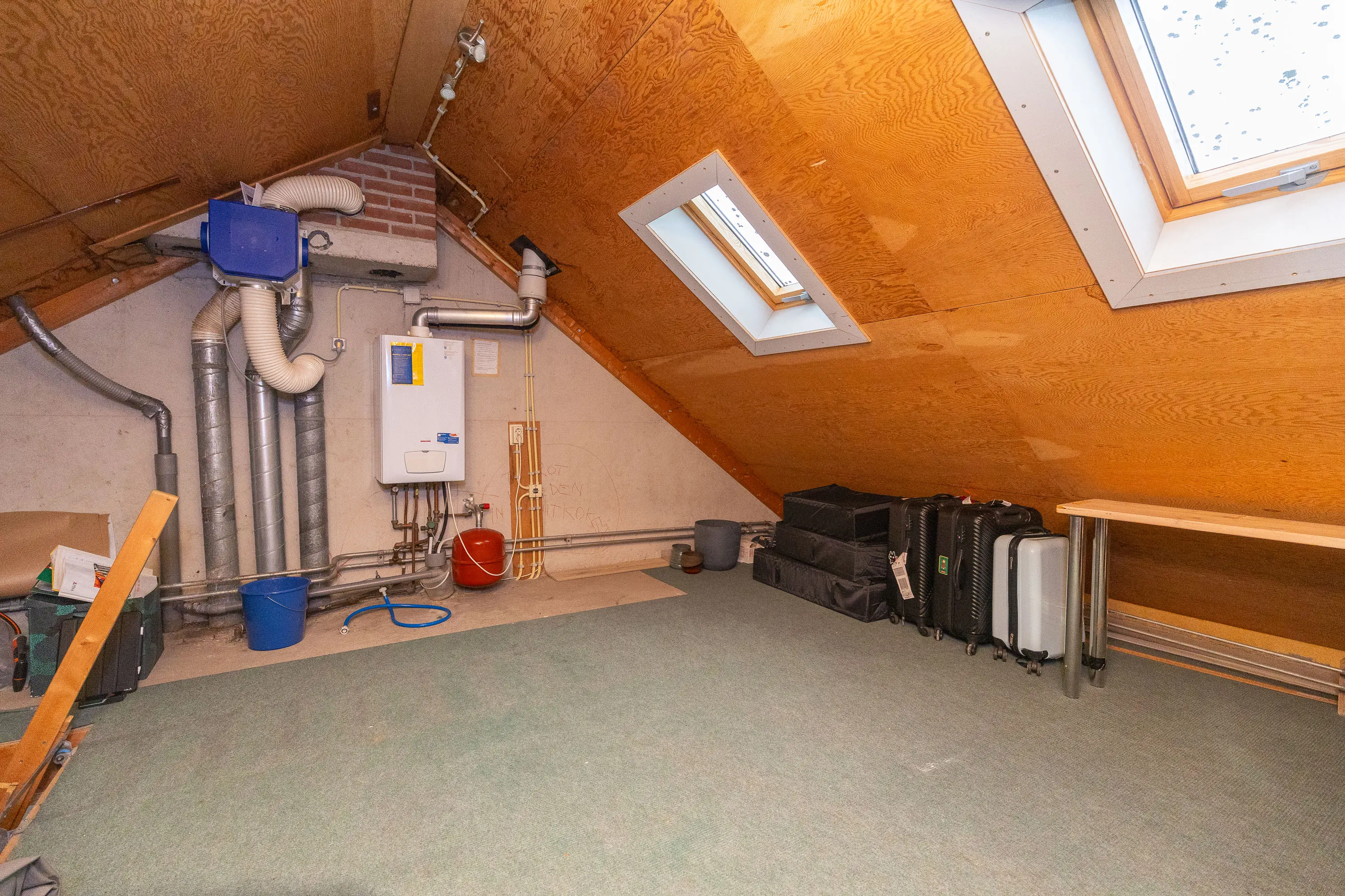 Via de vlizotrap bereik je de zolder: een perfecte bergruimte met cv-installatie, centraal afzuigsysteem en twee dakramen.