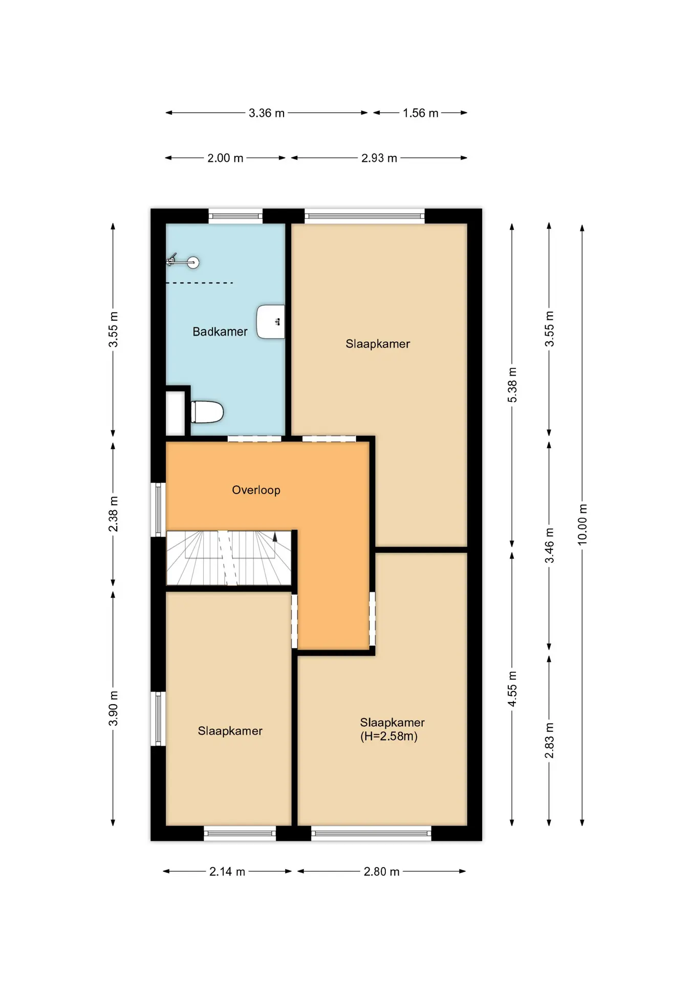 Op deze verdieping bevinden zich drie ruime slaapkamers en een moderne badkamer. Eén slaapkamer beschikt over een praktische inloopkast.