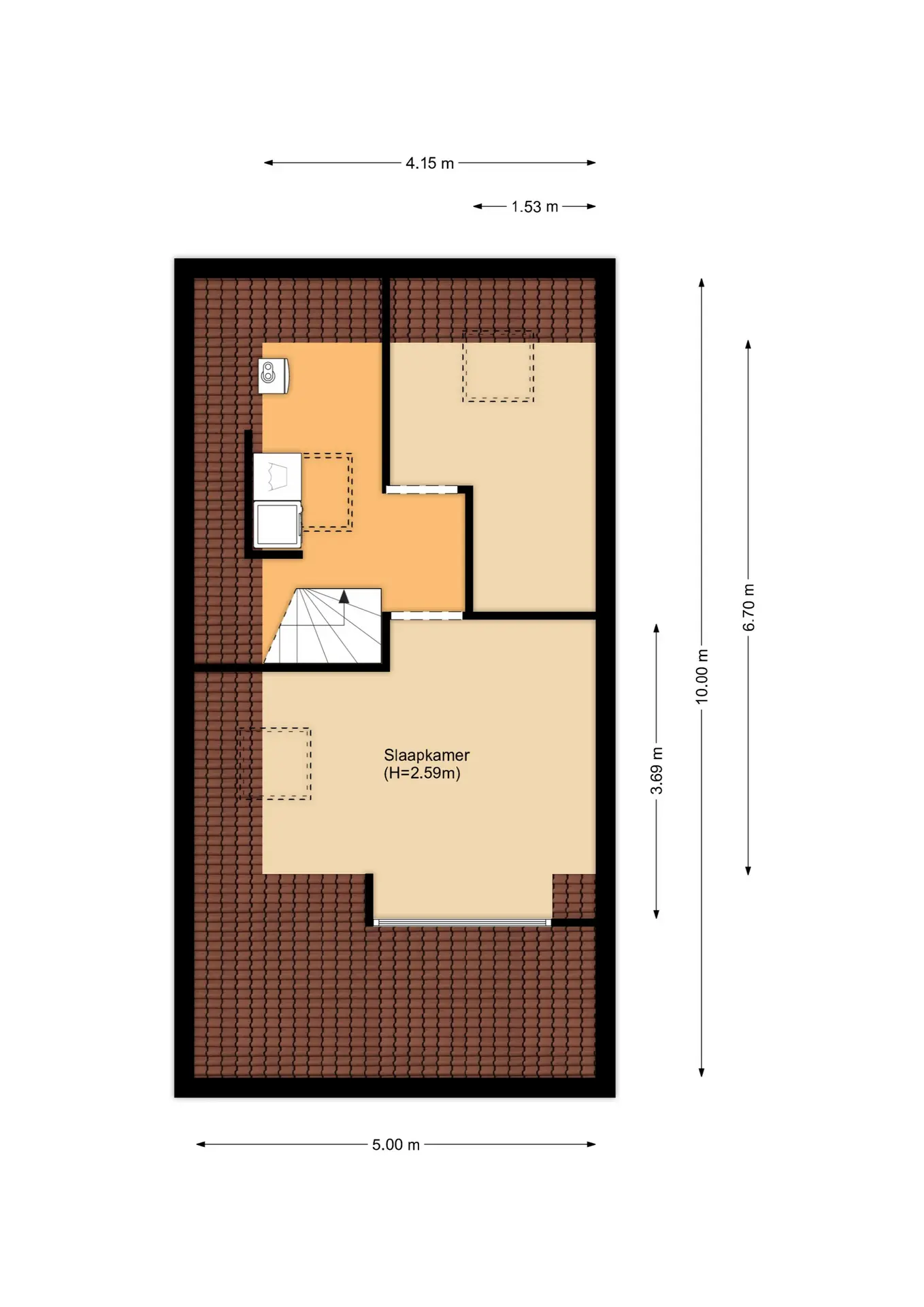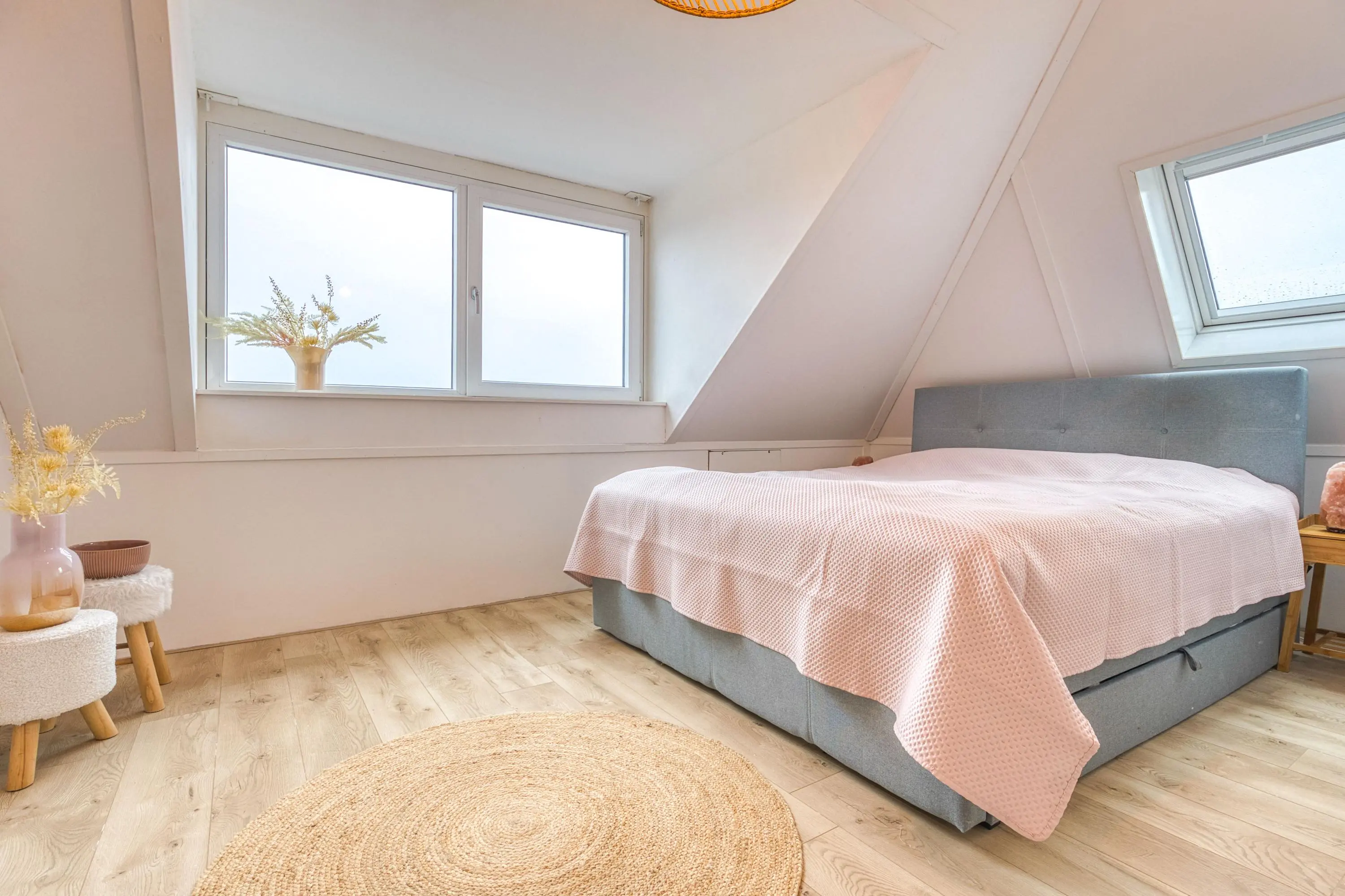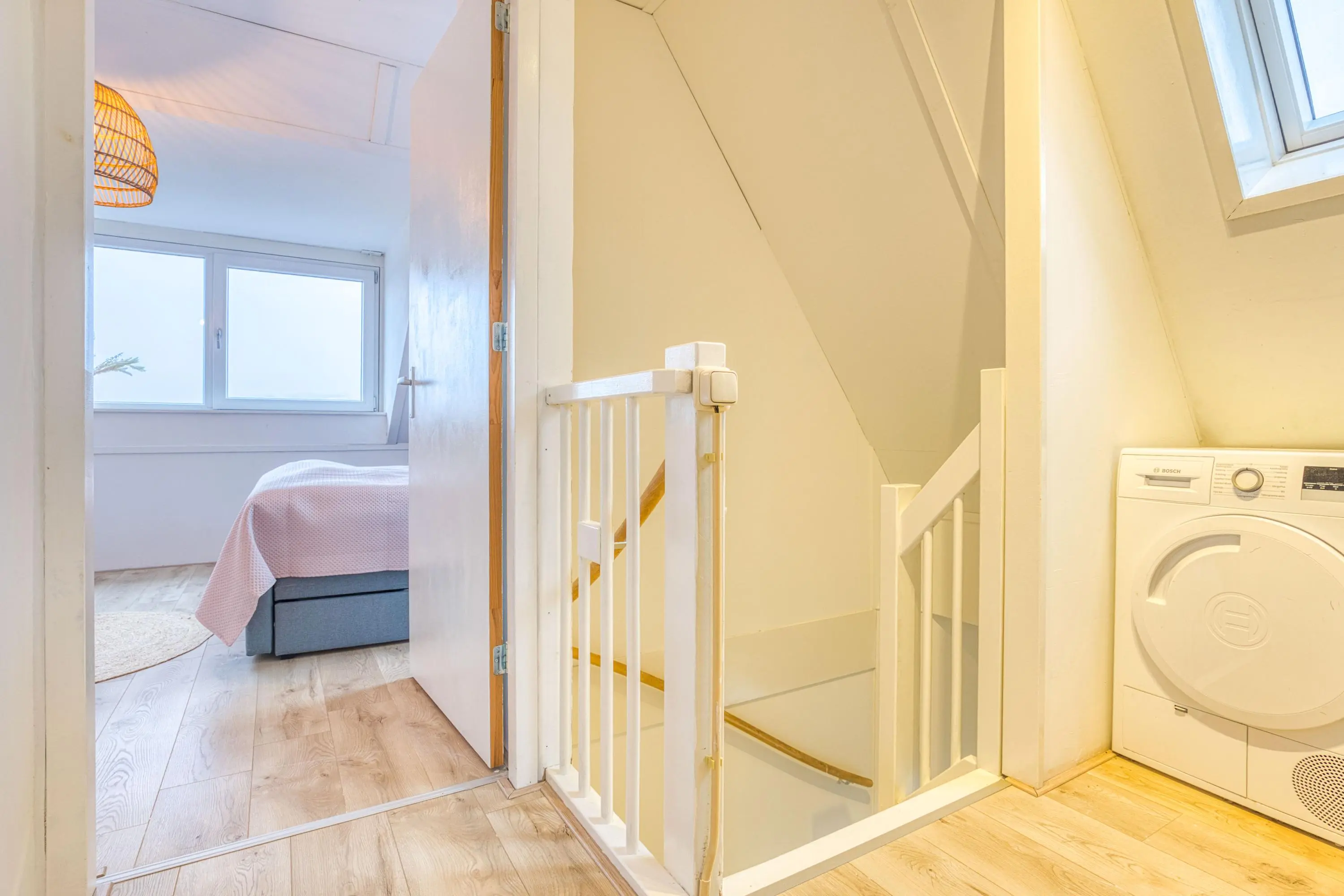 De zolderverdieping telt nog eens twee volwaardige slaapkamers. De ouderslaapkamer is vergroot met een royale dakkapel, terwijl de achterslaapkamer beschikt over een groot dakraam. Op de ruime overloop bevinden zich de cv-installatie (2014) en de zonneboiler met zonnecollectoren (2014), evenals de aansluitingen voor wasmachine en droger.