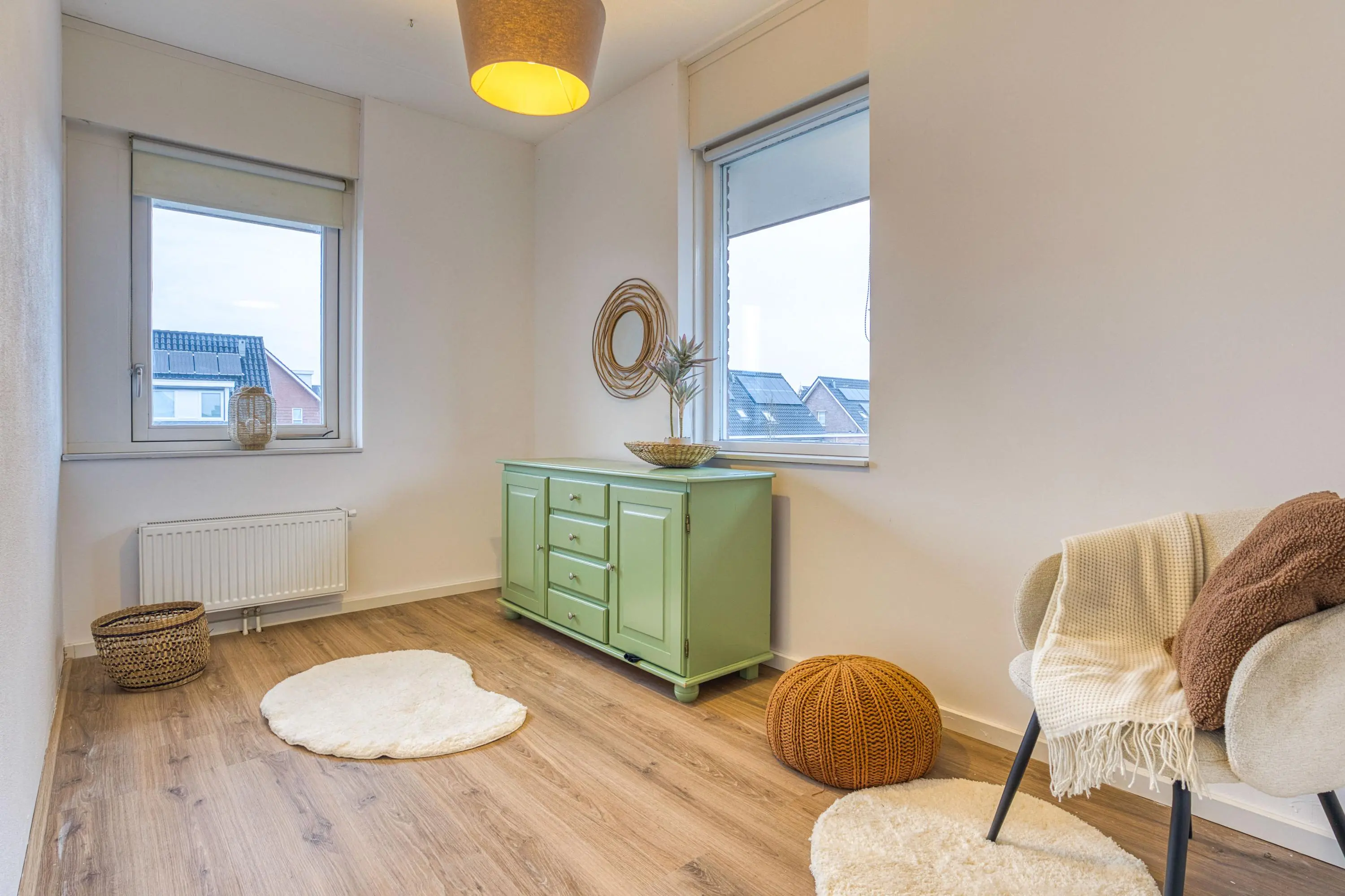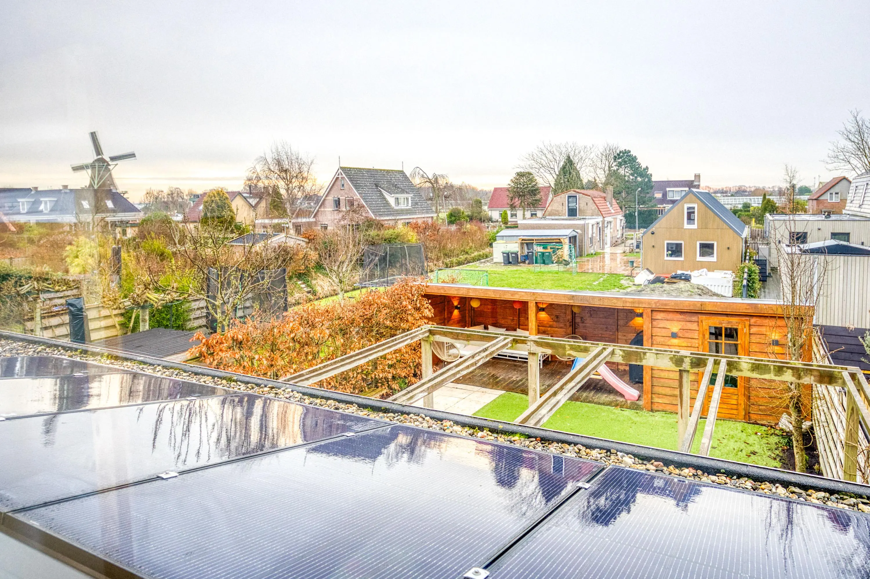Vanaf de overloop en de slaapkamer aan de achterzijde geniet u van een fraai uitzicht op de karakteristieke molen De Krijgsman, wat zorgt voor een extra gevoel van sfeer en karakter.