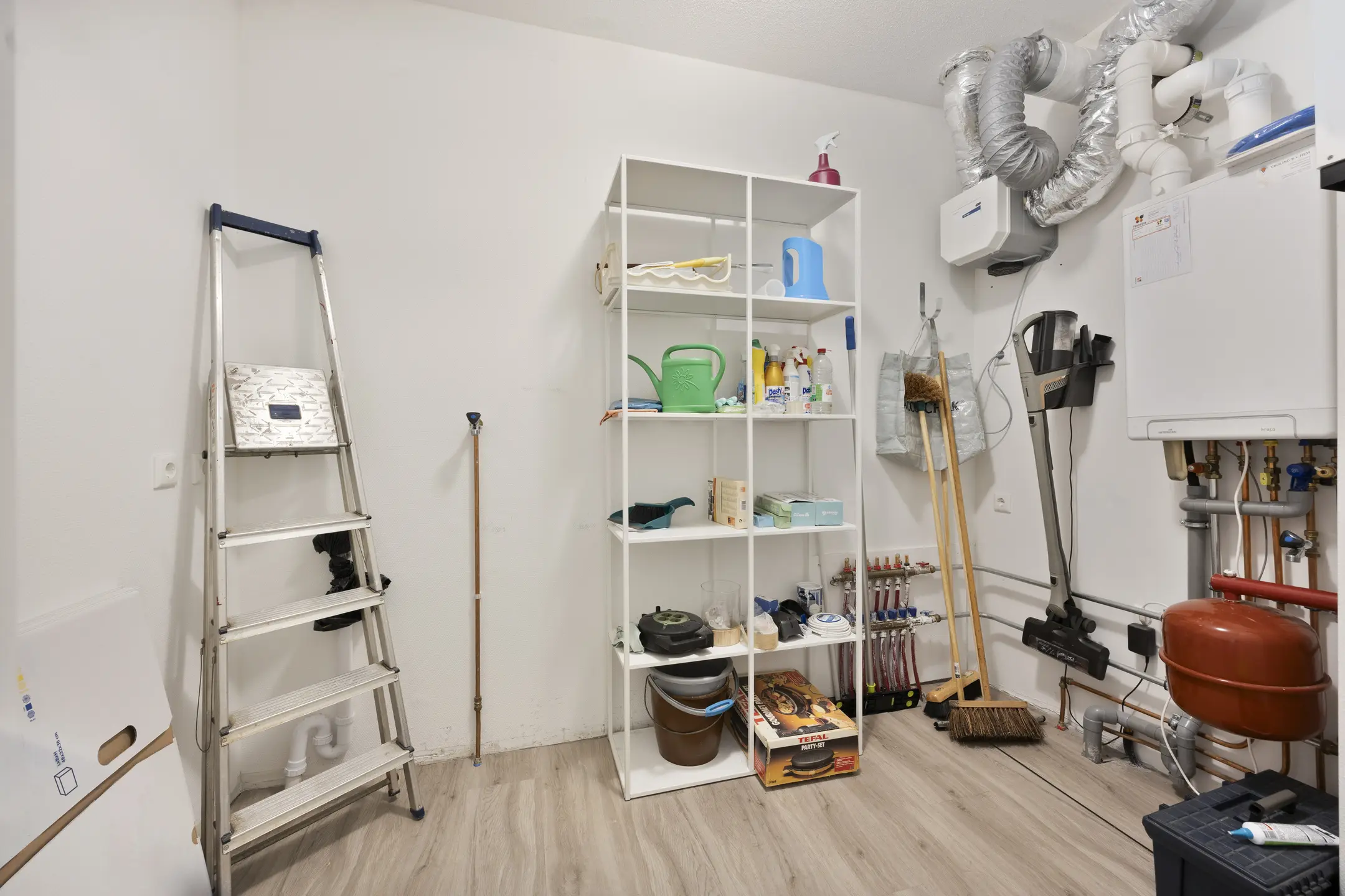 Daarnaast zijn er twee goed ingedeelde slaapkamers en een smaakvolle badkamer met inloopdouche, wastafelmeubel en toilet. In de separate technische ruimte vind je de cv-installatie en de aansluiting voor de wasmachine.