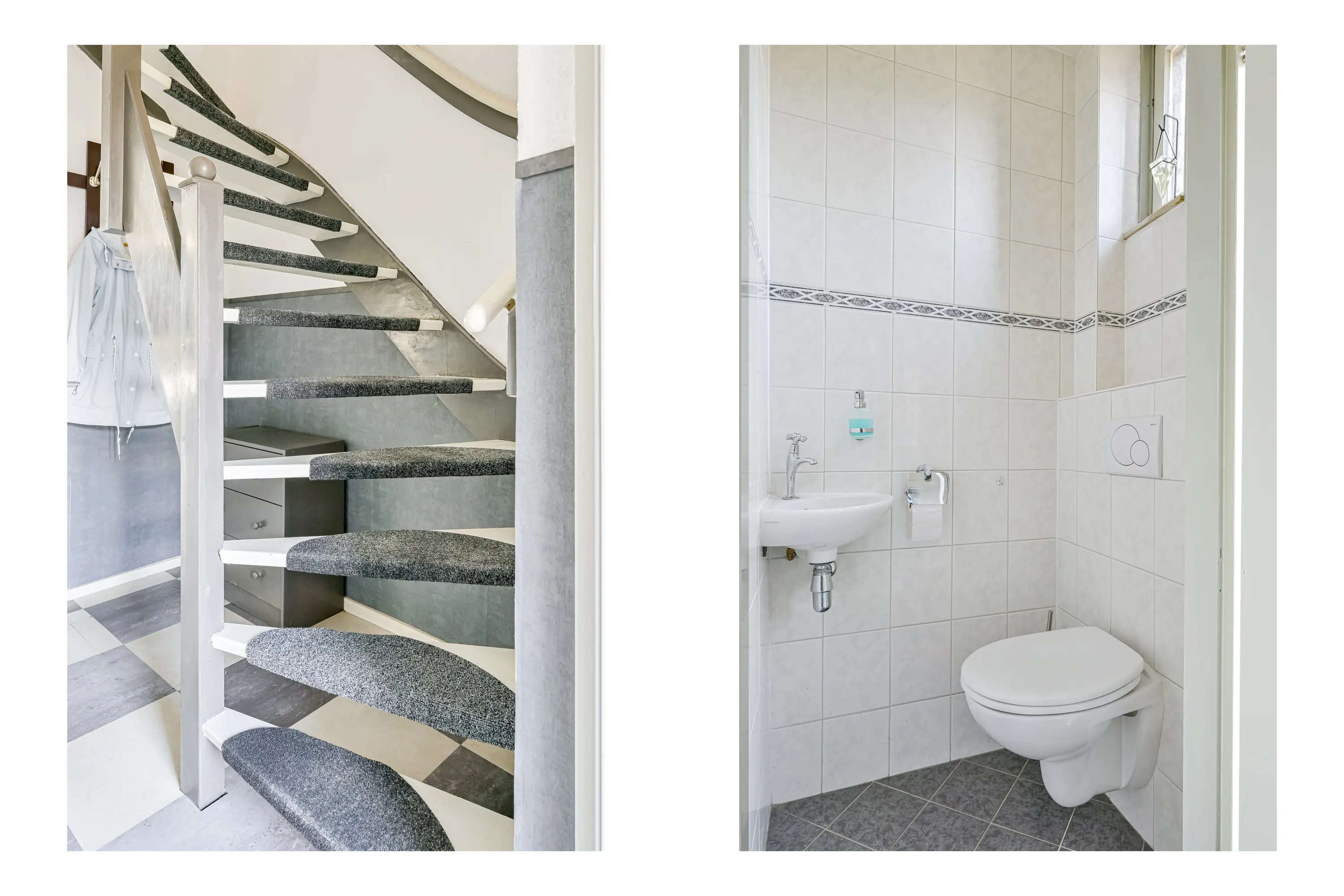 Eerste verdieping: Via de trap vanuit de hal bereikt u de 1e etage. Op de 1e verdieping vindt u een overloop en drie goed bemeten slaapkamers. Tevens vindt u op deze verdieping de badkamer. De badkamer is uitgevoerd in een lichte kleurstelling en beschikt over een royale wastafel met meubel, douchecabine en een tweede toilet.