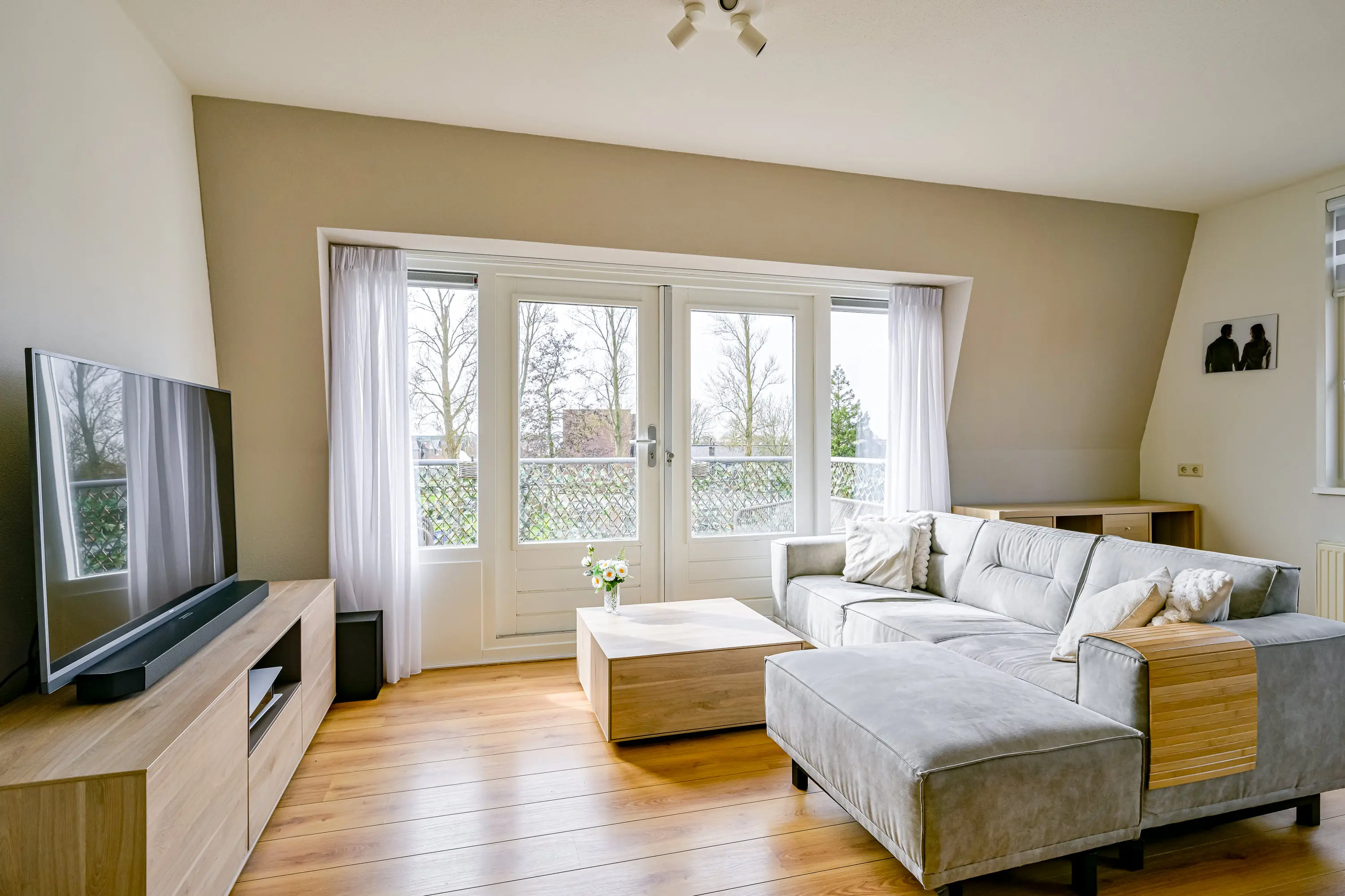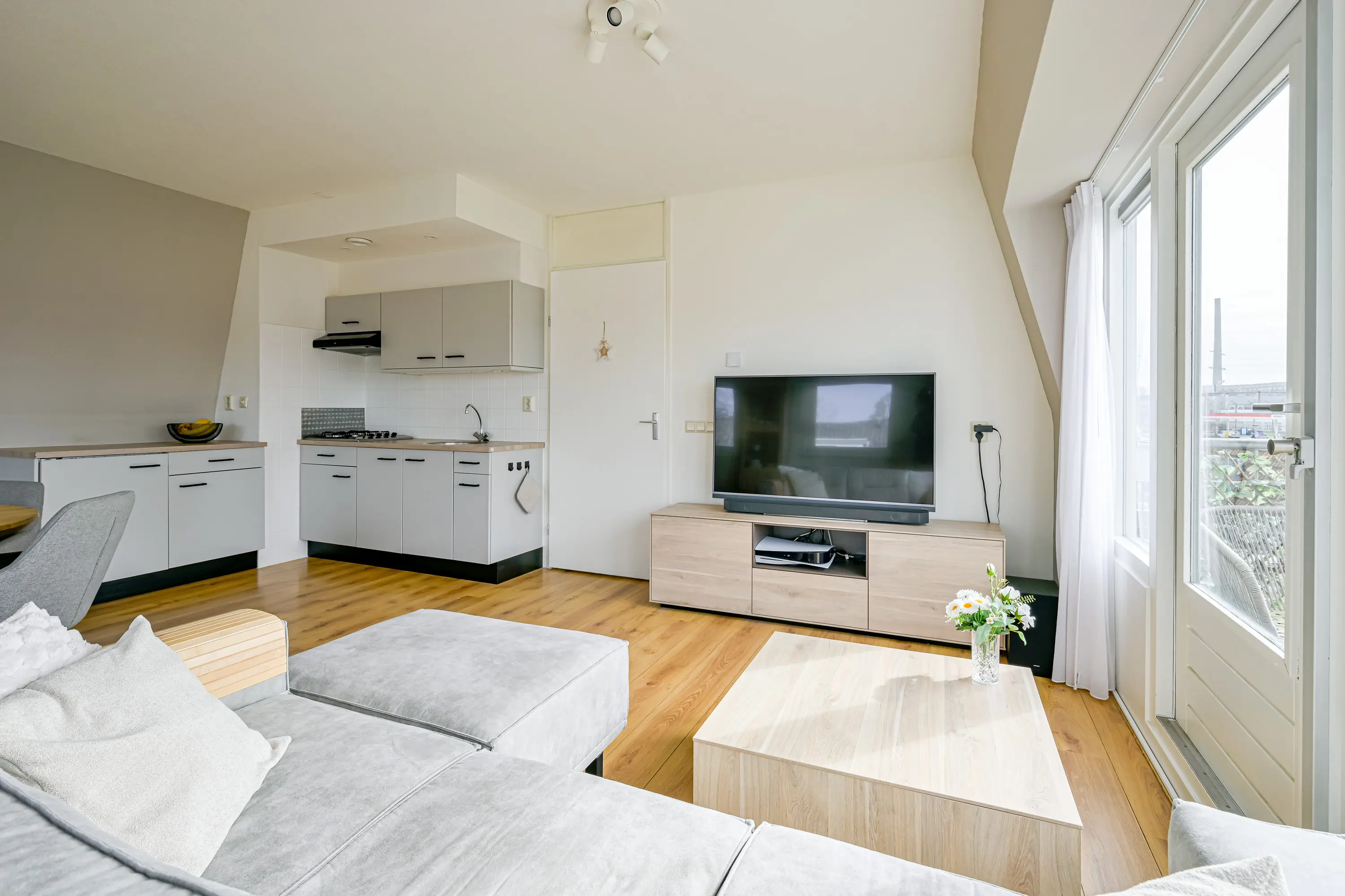 De woonkamer met openkeuken is ruim en door de diverse raampartijen is het hier heerlijk licht. Vanuit de woonkamer heeft u toegang tot het zonnige balkon op het zuiden. Het balkon is ruim en heeft voldoende plek om met meerdere personen te genieten van het zonnetje. Echt heel prettig!
