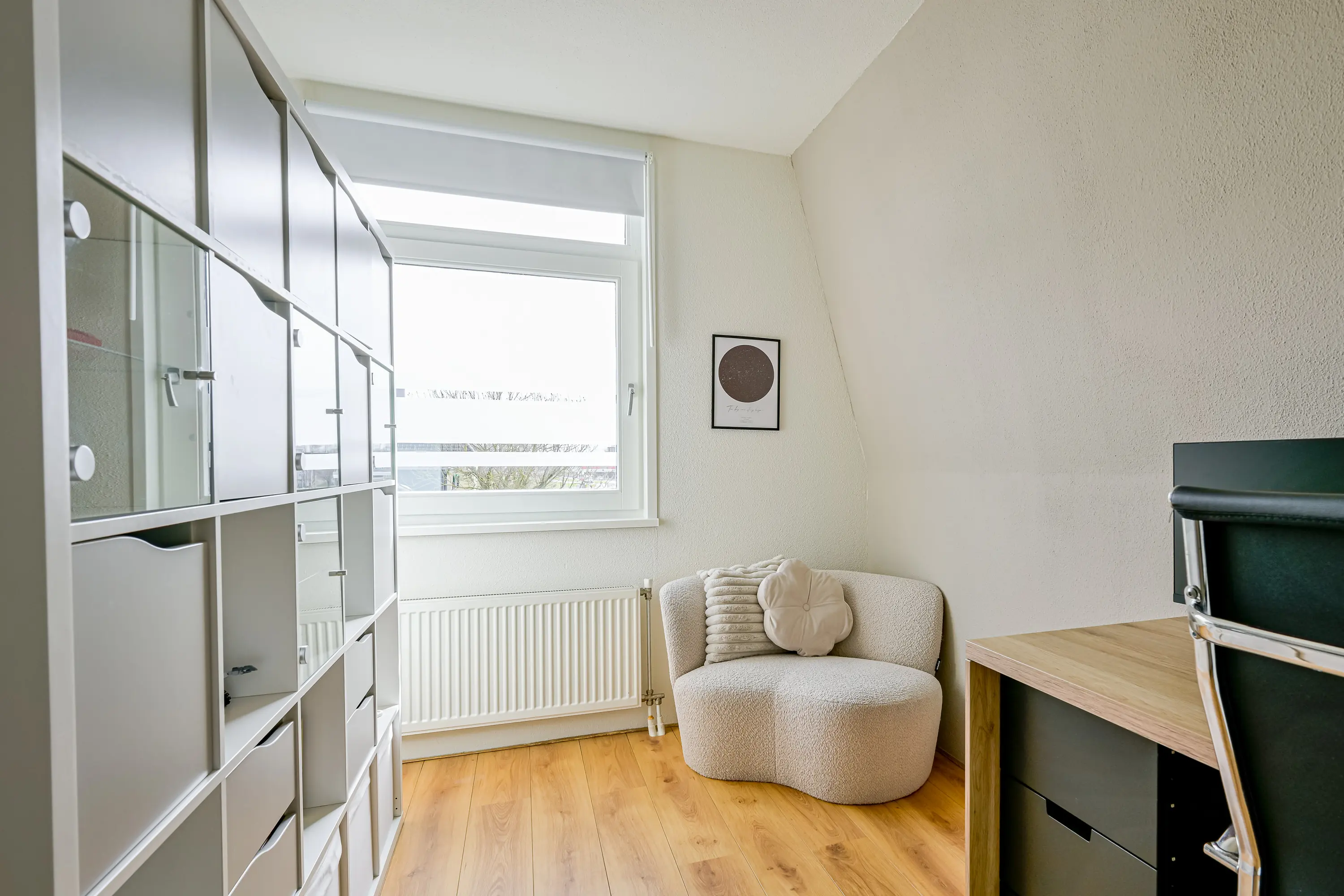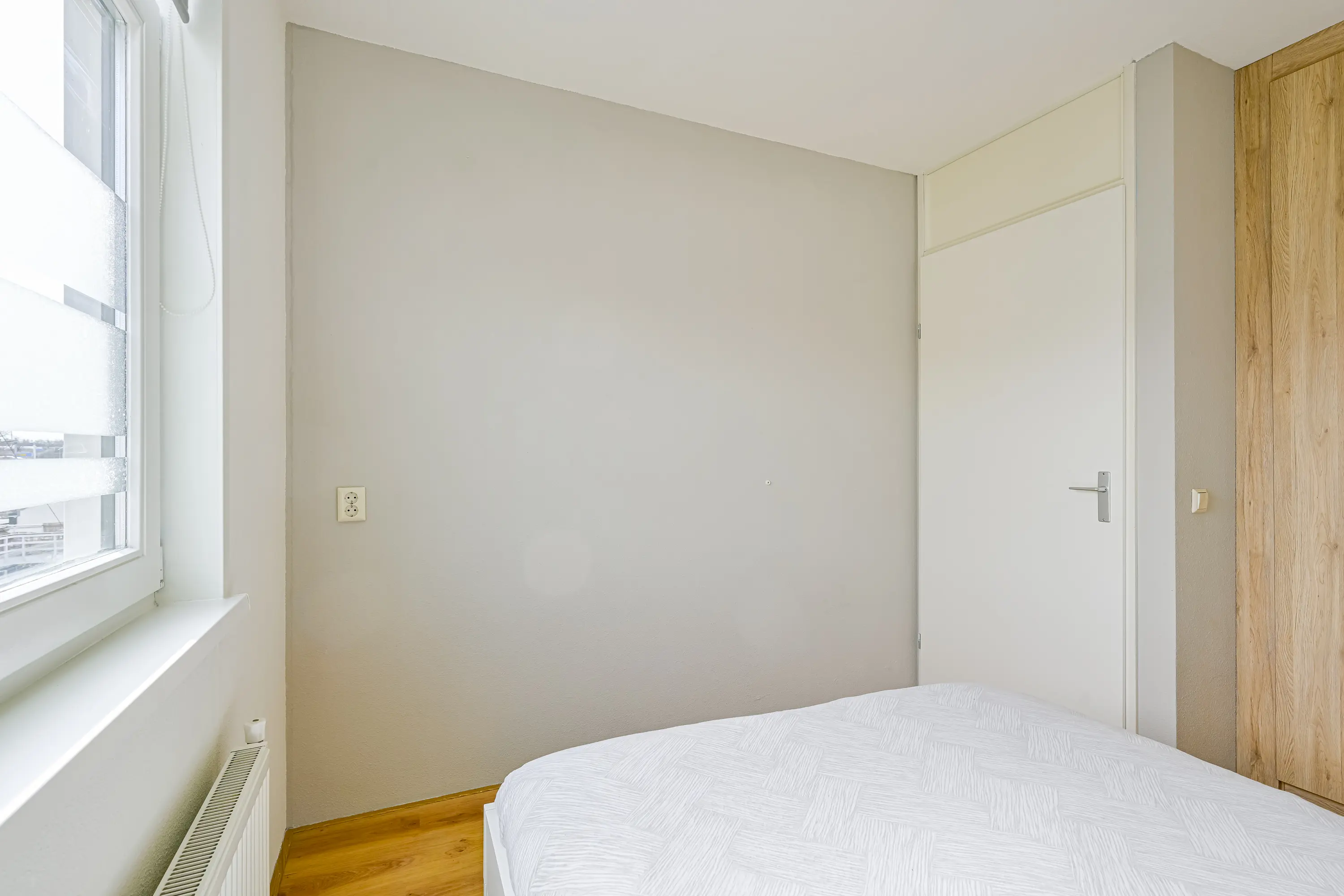 Het appartement beschikt over twee slaapkamers. De grootse slaapkamer is voorzien van een diepe inbouwkast wat natuurlijk erg prettig is. Ook de slaapkamers zijn beide voorzien van een laminaatvloer en strakke wandafwerking. De grote ramen geven deze slaapkamers veel lichtinval.