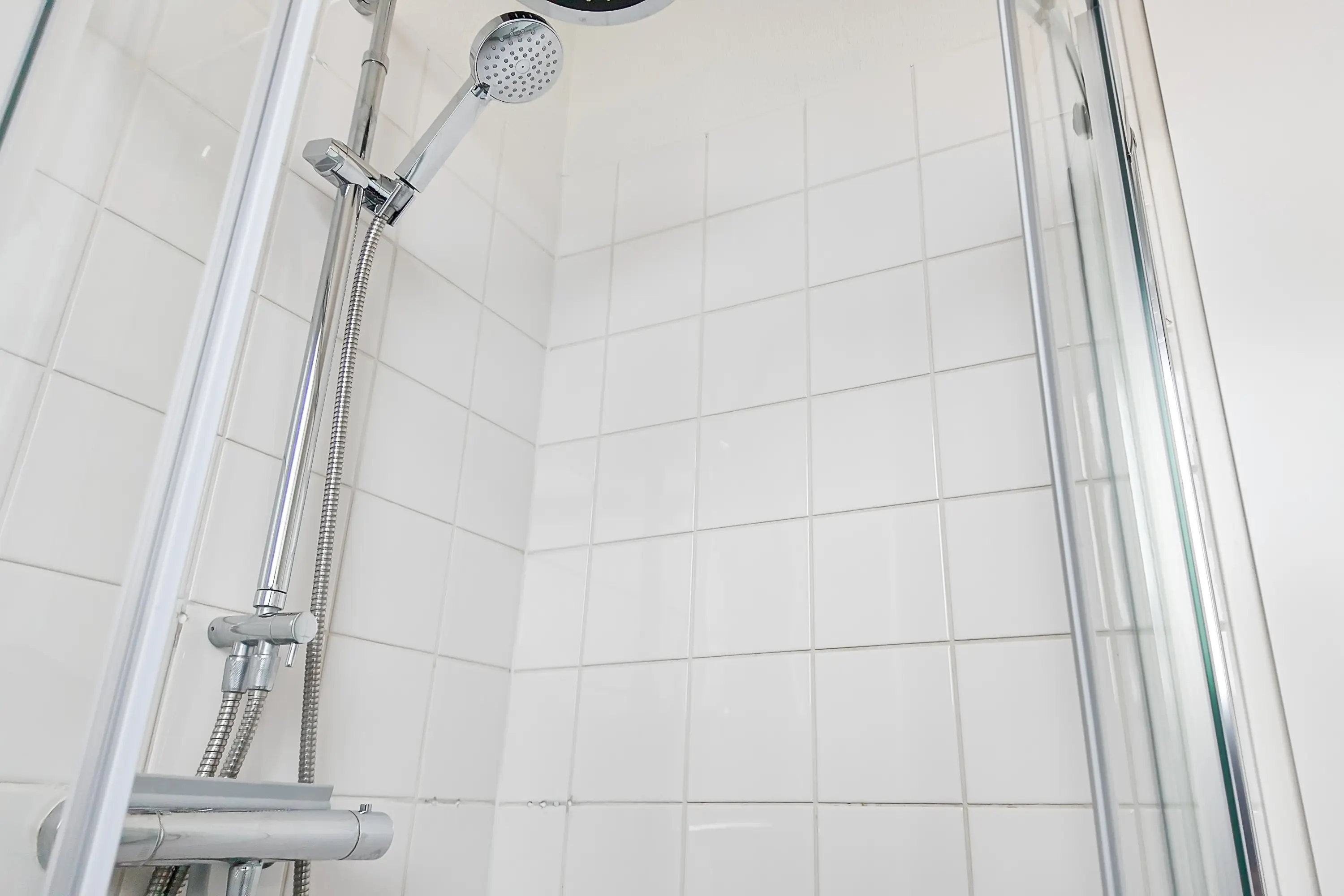 De badkamer is uitgevoerd in een lichte kleurstelling en beschikt over een douche en wastafel met meubel. Het toilet is apart gesitueerd en bereikbaar vanuit de hal.