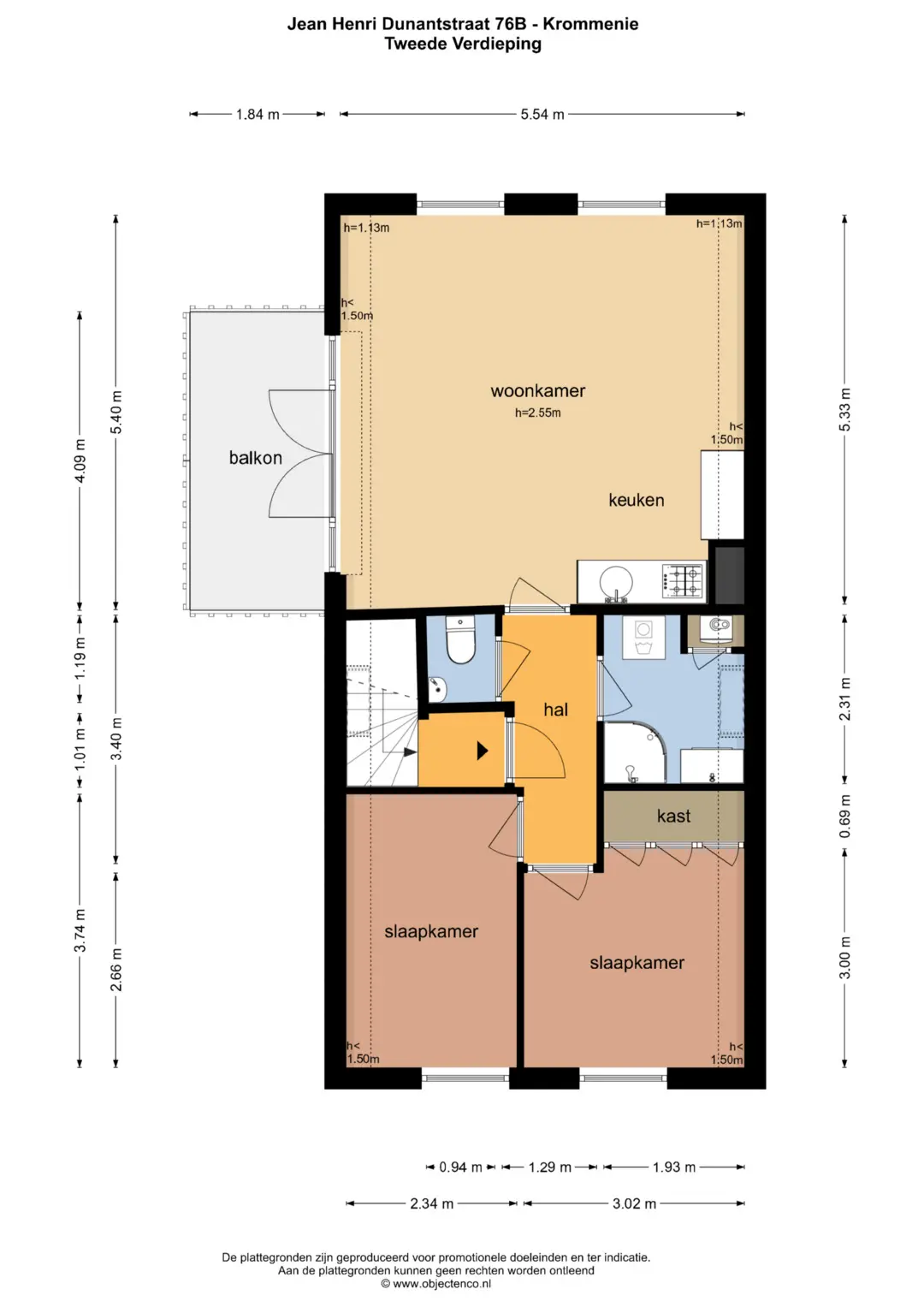 Met bijna 58 vierkante meter gebruiksoppervlakte is dit echt een appartement met voldoende ruimte. Vanuit de entree van het complex bereikt u via de trap de voordeur van nummer 76B.