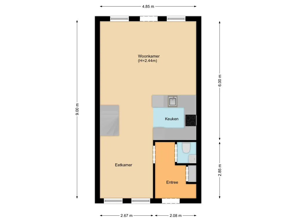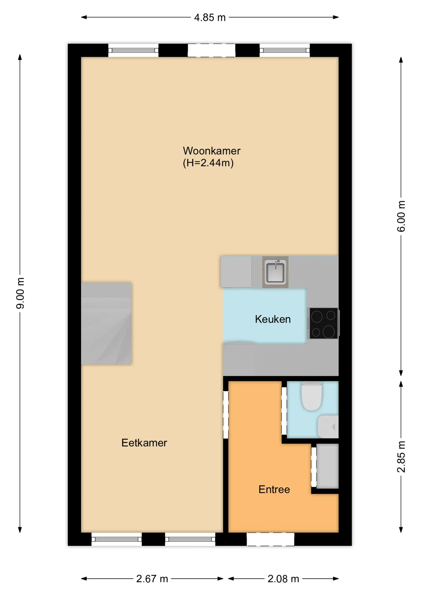 Begane grond: entree met hal, meterkast en toilet. Aan de voorzijde vindt u een gezellige eetruimte met grote ramen en veel lichtinval. De open keuken in L-vormige opstelling is voorzien van een koel-/vriescombinatie, oven, vaatwasser en 5-pits gasfornuis. De woonkamer met grote raampartijen aan de achterzijde geeft toegang tot het knusse terras en biedt een prachtig uitzicht op de stadsgracht die direct in verbinding staat met het Markermeer/IJsselmeer.