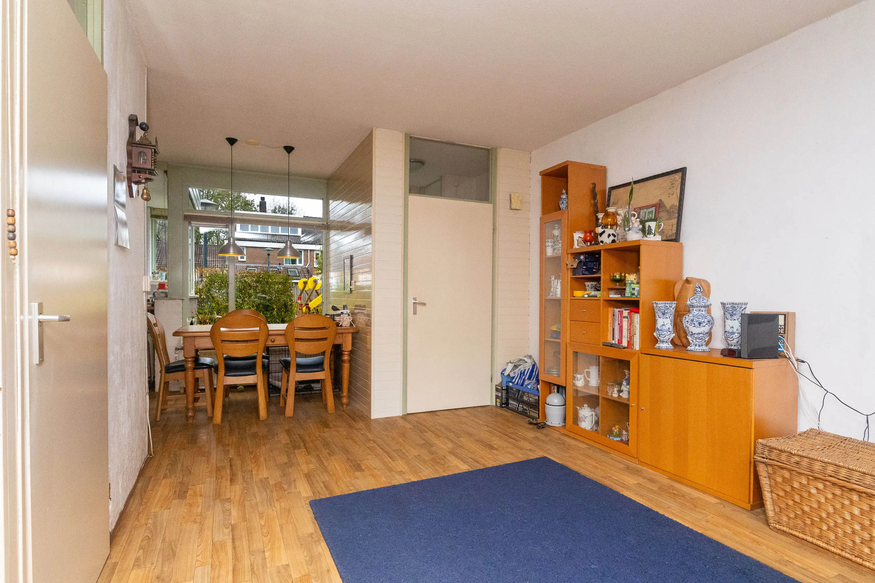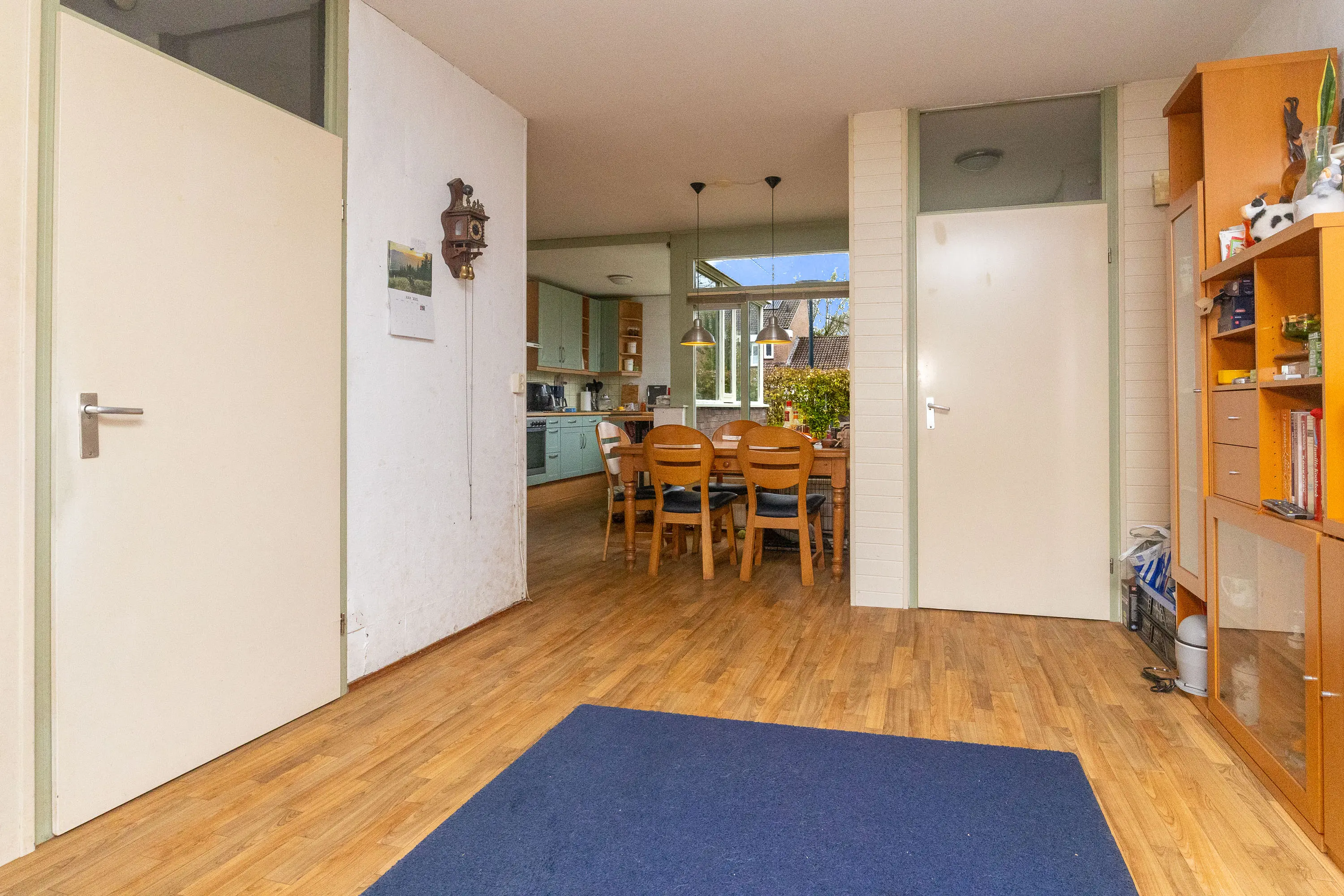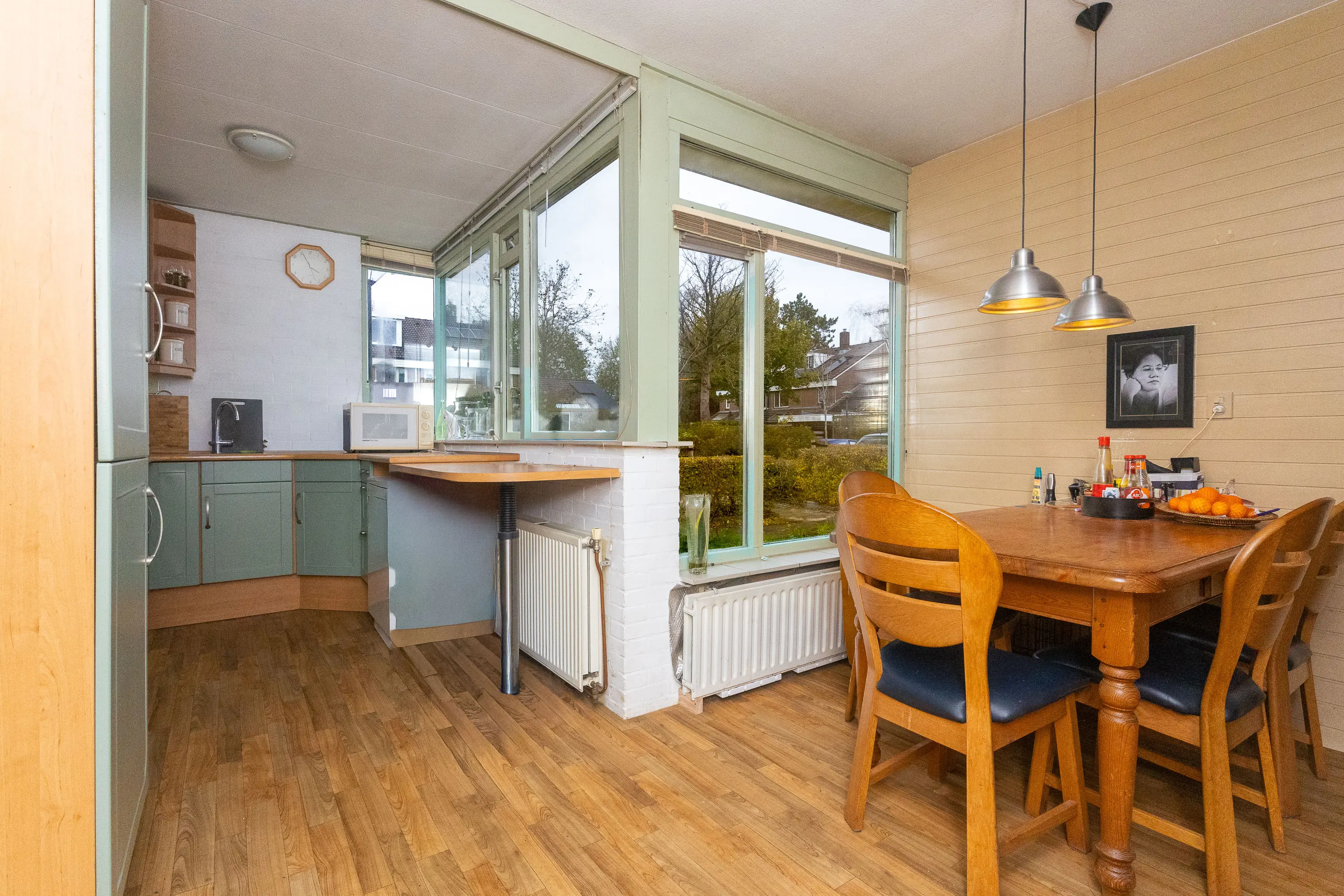 Bij binnenkomst valt direct de royale woonkamer op. Dankzij de grote raampartijen stroomt het daglicht rijkelijk naar binnen, wat zorgt voor een prettige en open sfeer. De woonkamer biedt volop ruimte voor een comfortabele zithoek én een gezellige eethoek bij de keuken.
