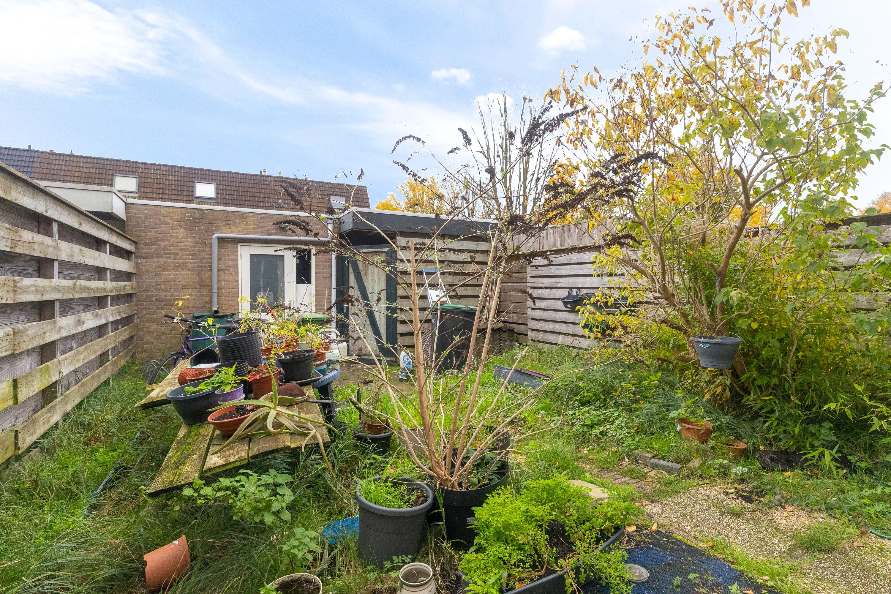 De achtertuin heeft absoluut aandacht nodig maar is een heerlijke plek om te ontspannen. Dankzij de gunstige ligging op het zuiden geniet je hier de hele dag van de zon. De tuin beschikt over een praktische berging en via de carport een achterom.