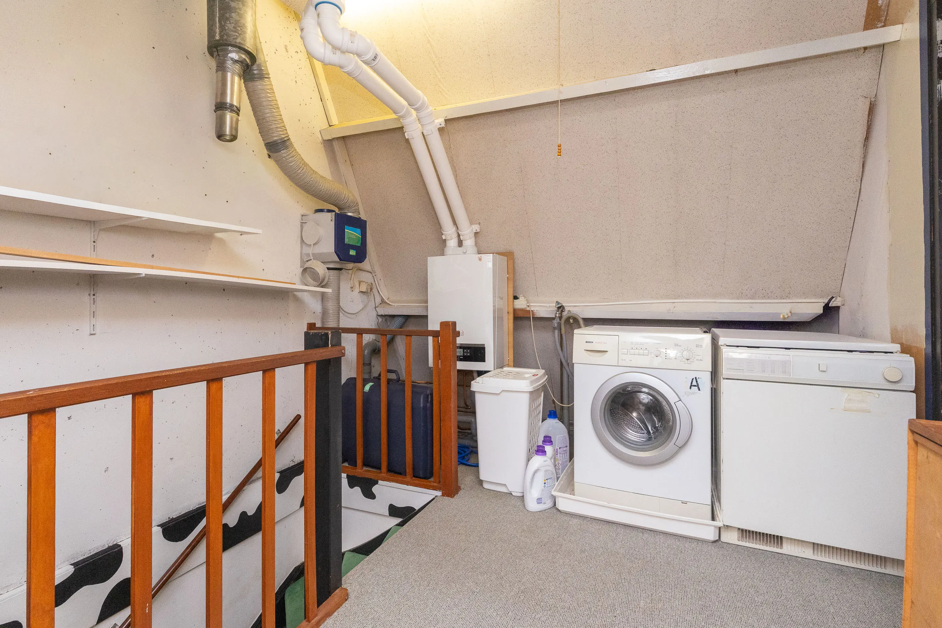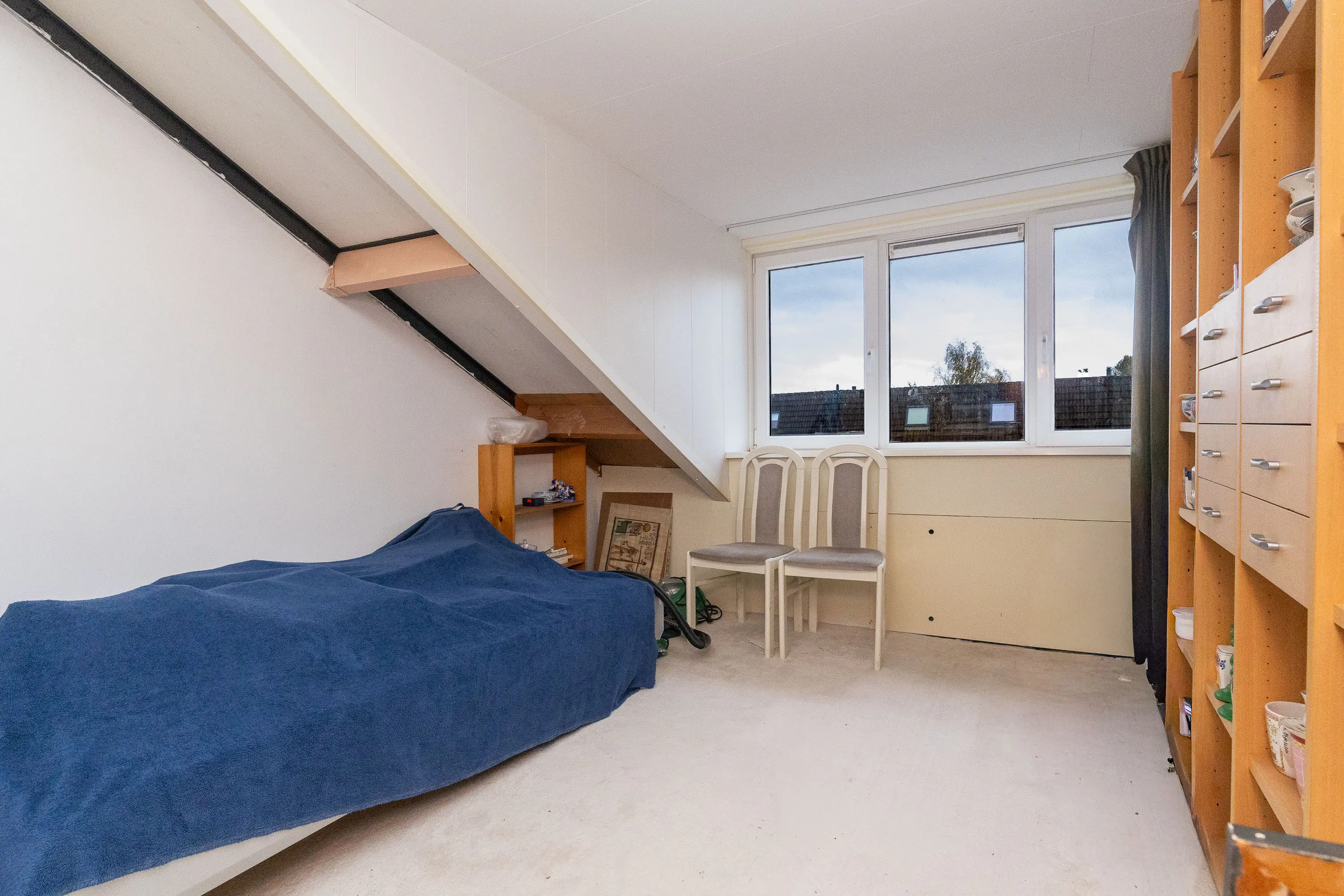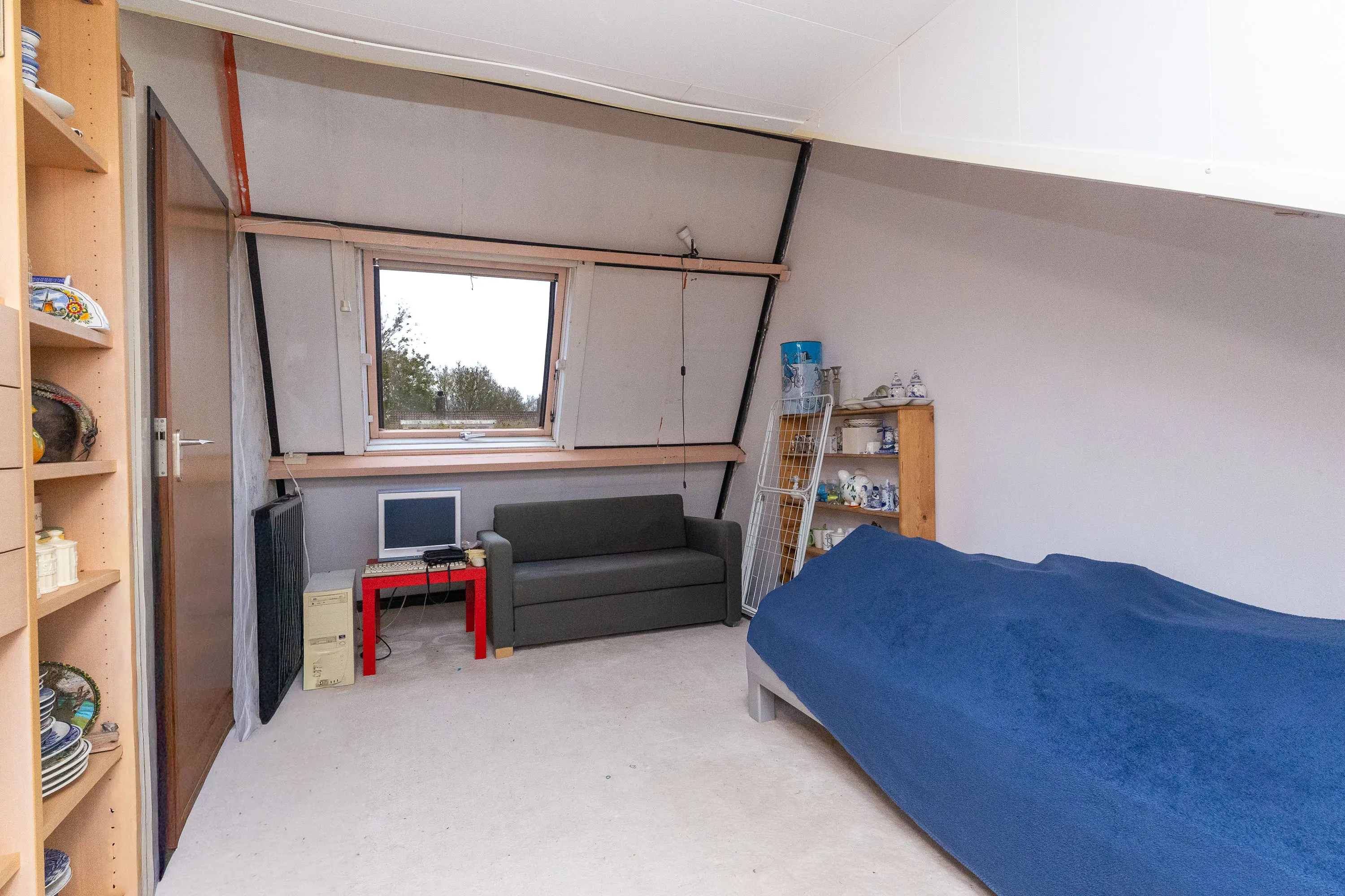 Op de zolderverdieping vindt je een ruime vierde slaapkamer met dakraam en bergruimte, perfect als werkplek, hobbykamer of logeerkamer.