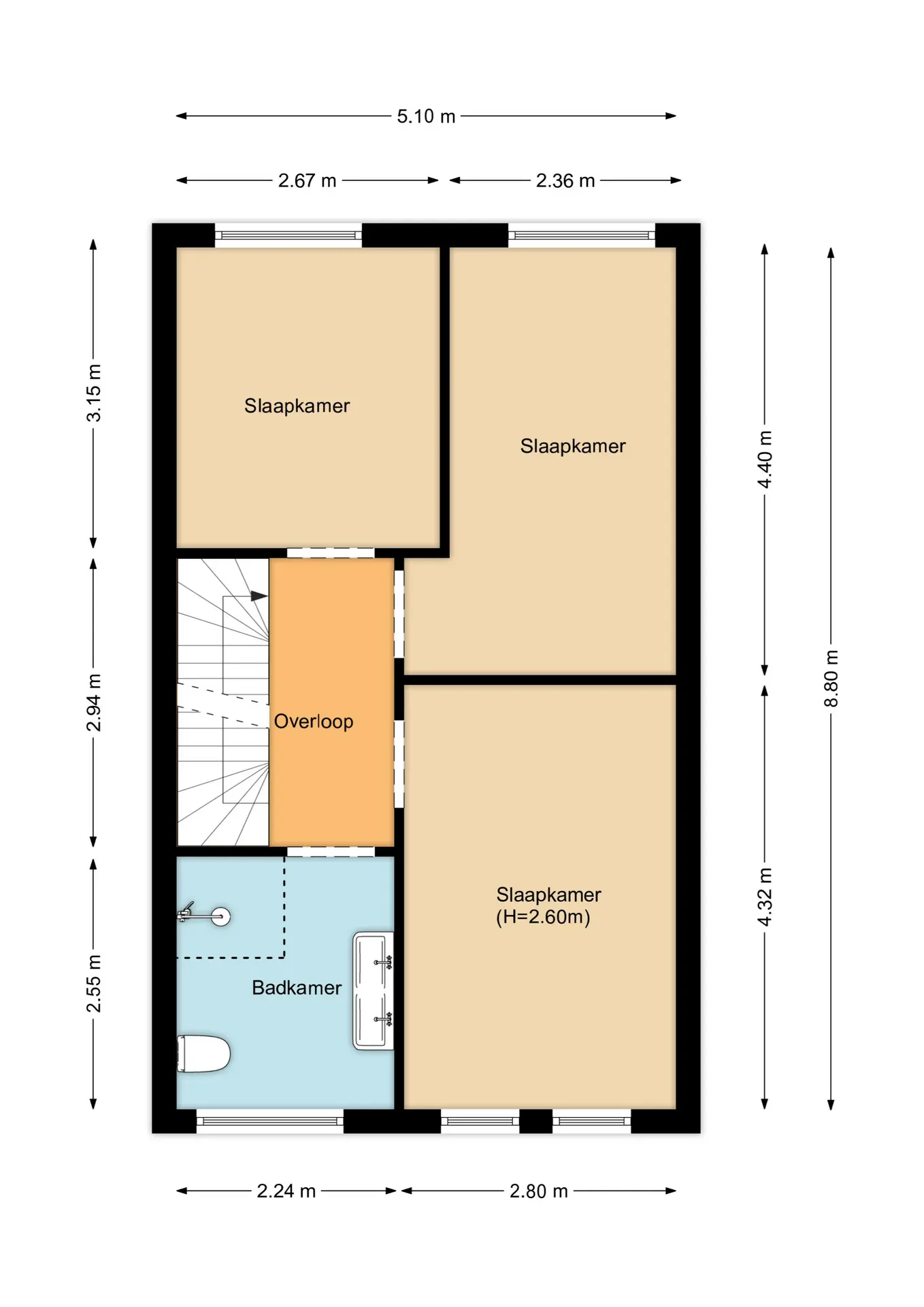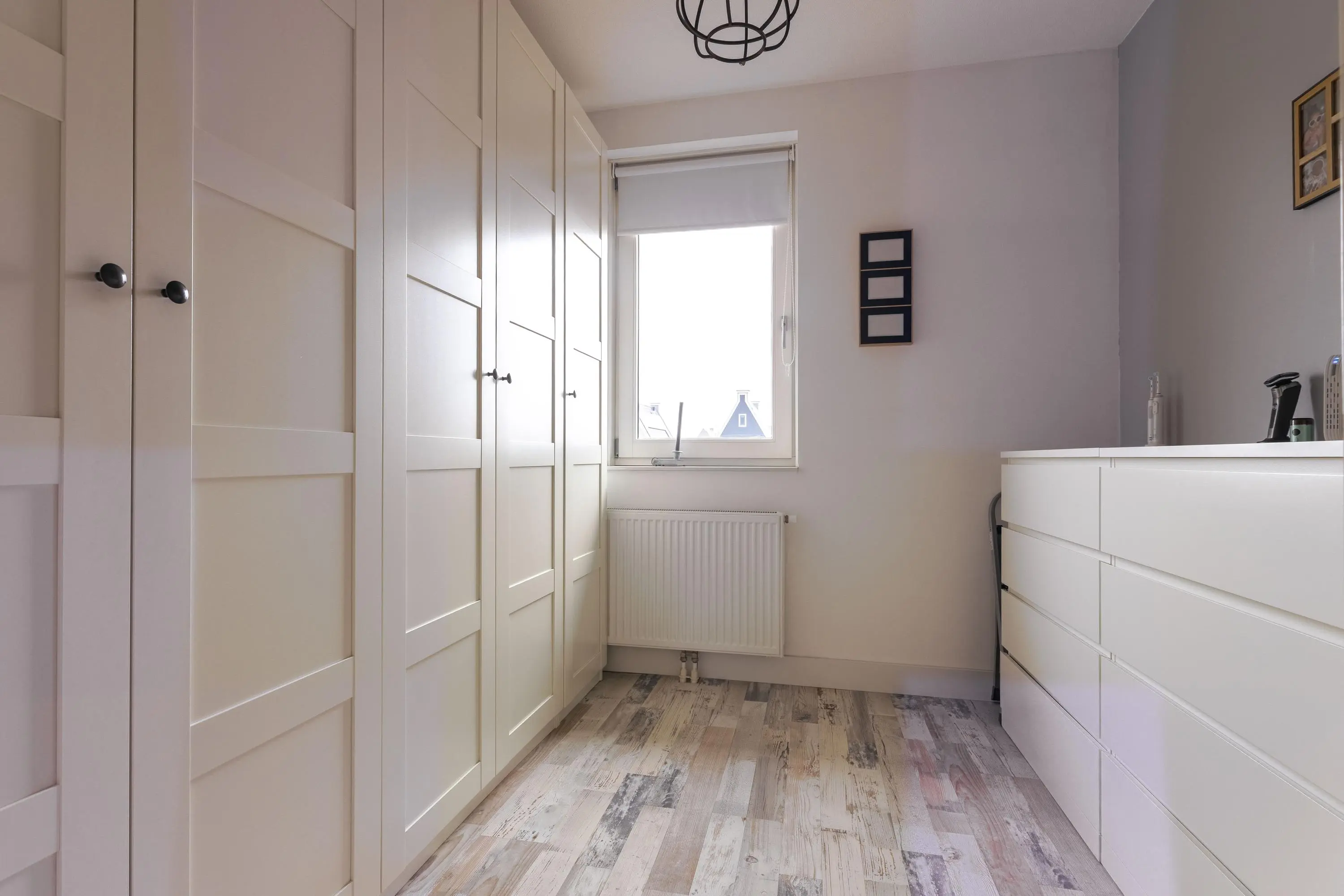 Overloop, tweetal slaapkamers aan de achterzijde en een ruime slaapkamer aan de voorzijde. In de nette badkamer treft u een inloopdouche, een dubbele wastafelmeubel en een tweede toilet, het raam zorgt voor natuurlijk licht en ventilatie er is ook mechanische ventilatie aanwezig.