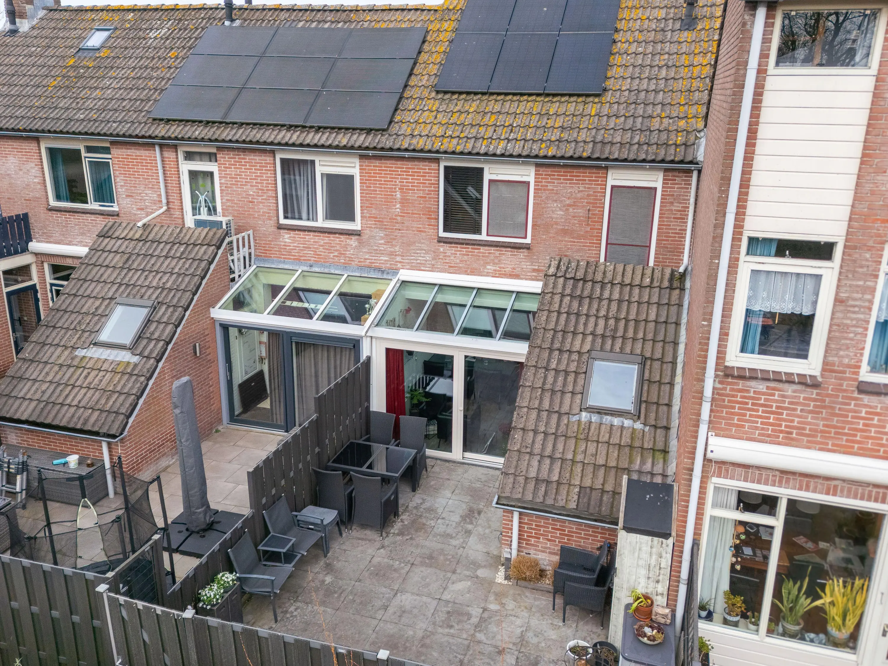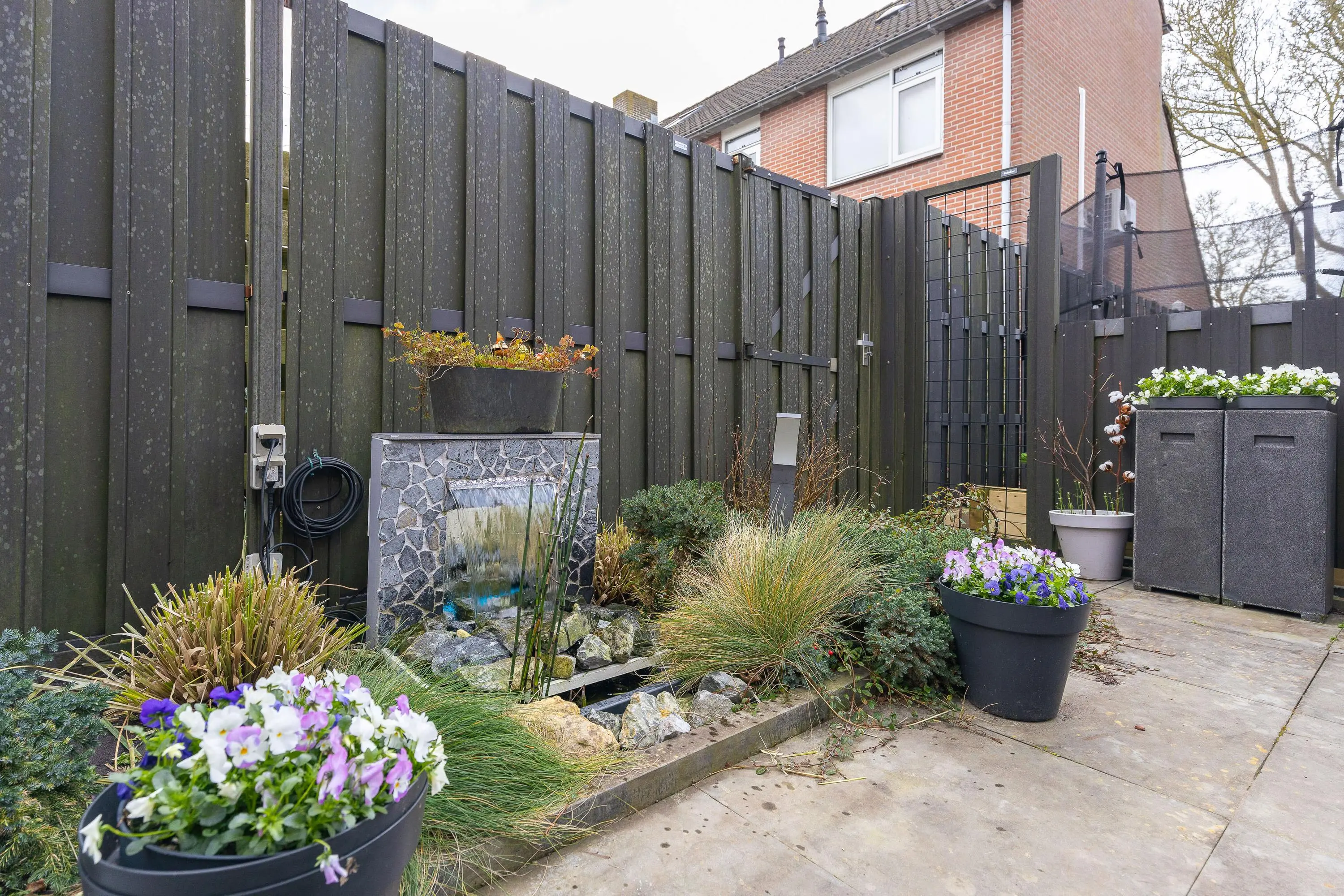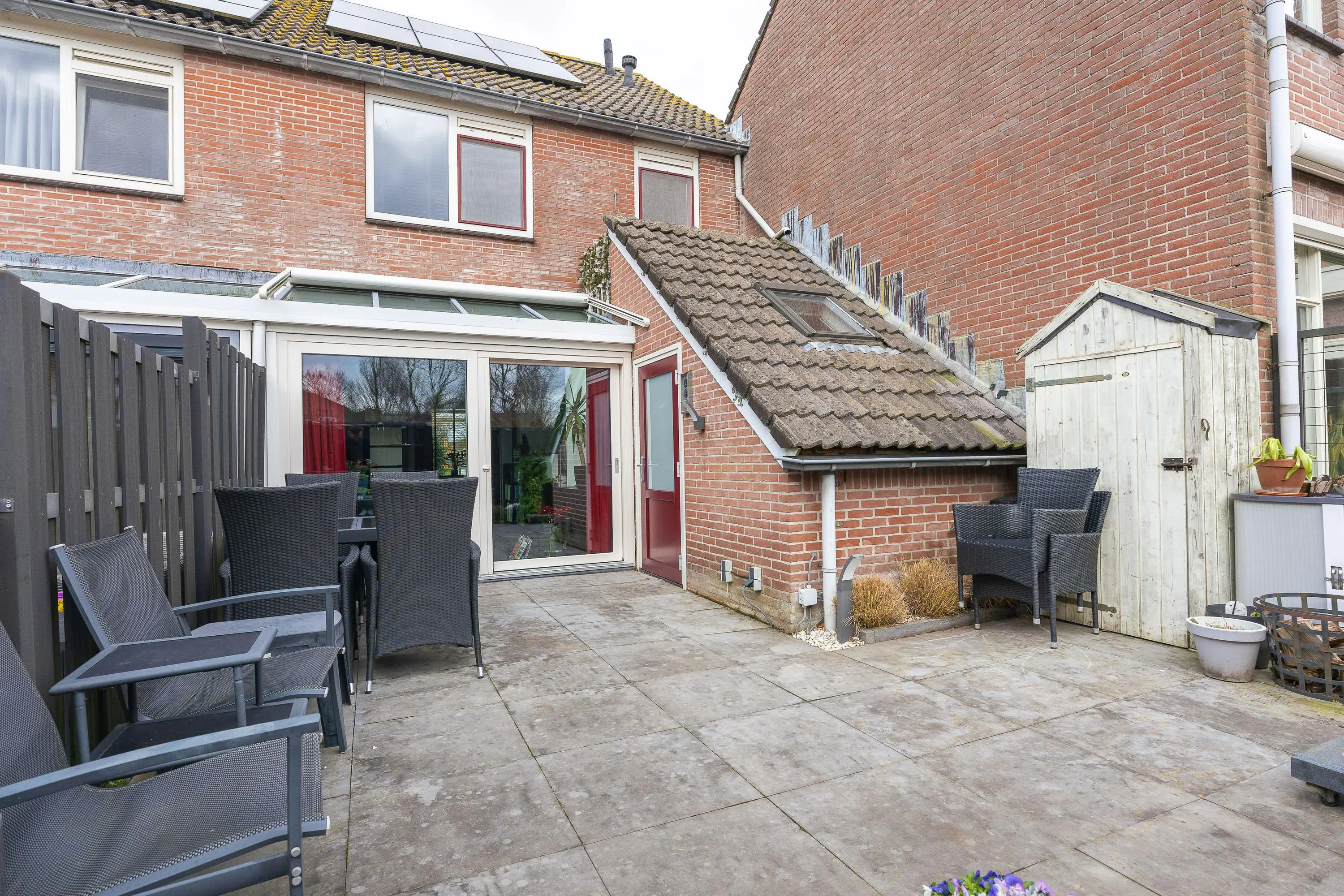 De achtertuin is zeer verzorgd, onderhoudsvriendelijk en gelegen op het zuiden. Hier kun je in alle rust en privacy genieten van de zon – een heerlijke plek om te ontspannen of gezellig samen te zijn.