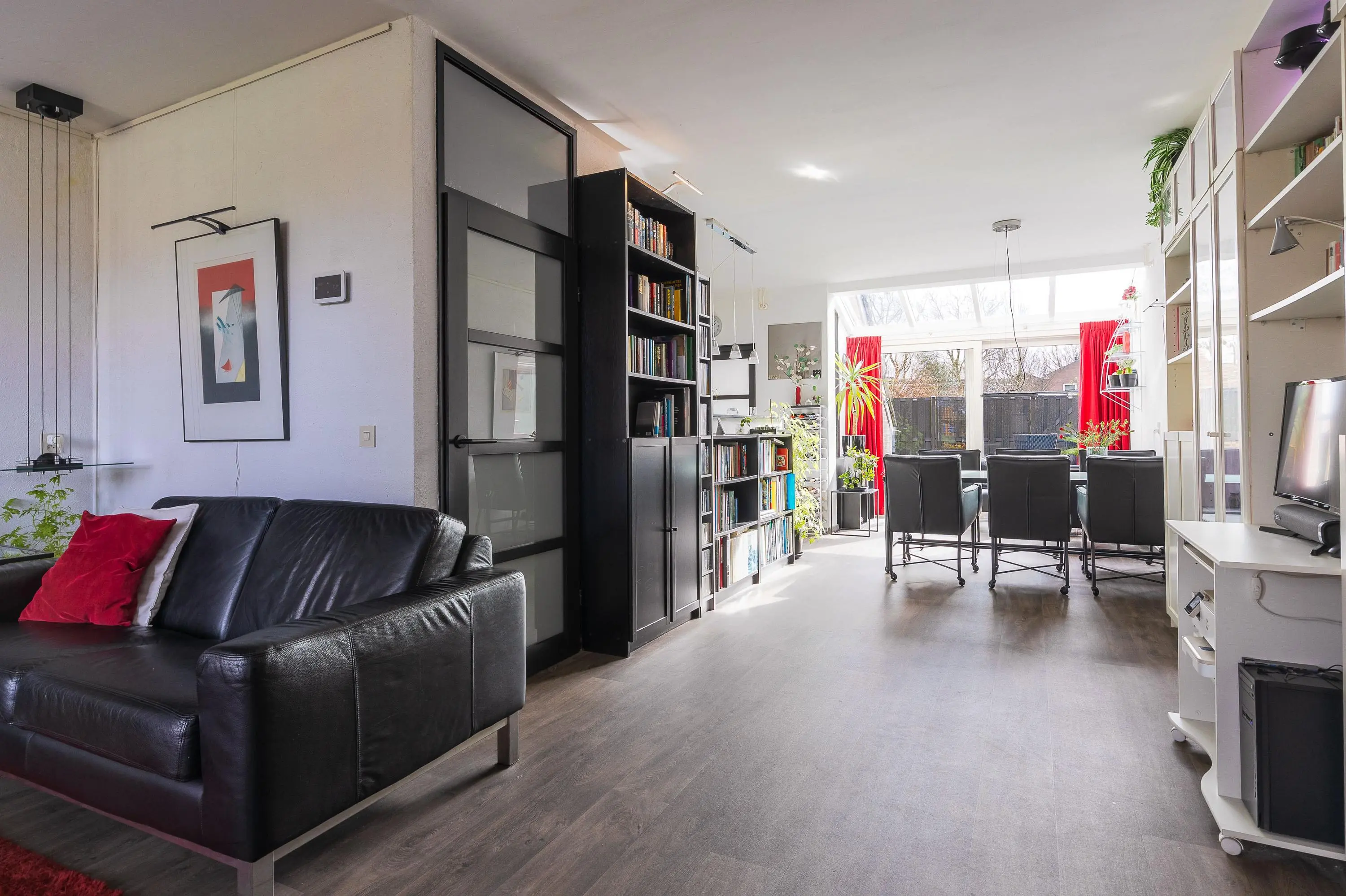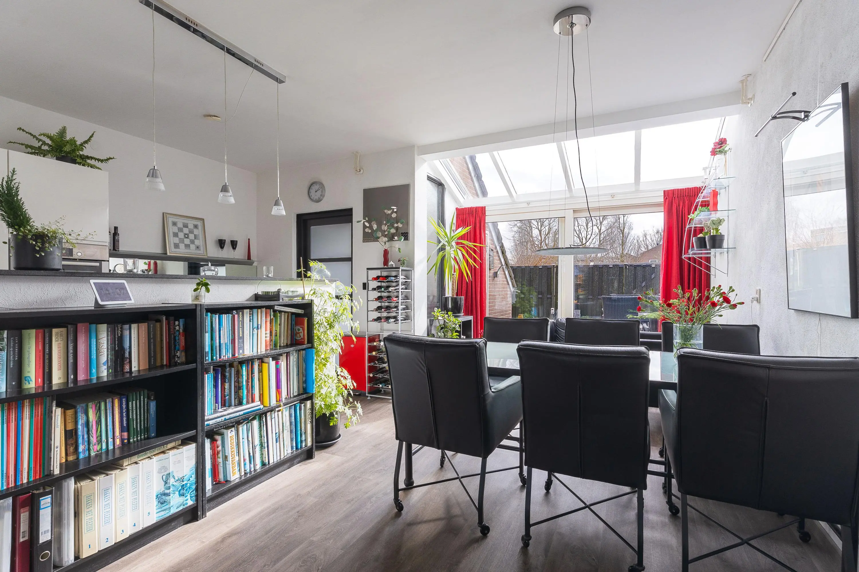 Via de entree met meterkast kom je in de royale en lichte woonkamer. De sfeervolle haard zorgt voor extra gezelligheid, terwijl de aangebouwde serre met schuifpui een prachtige verbinding vormt met de tuin en zorgt voor een zee aan licht.