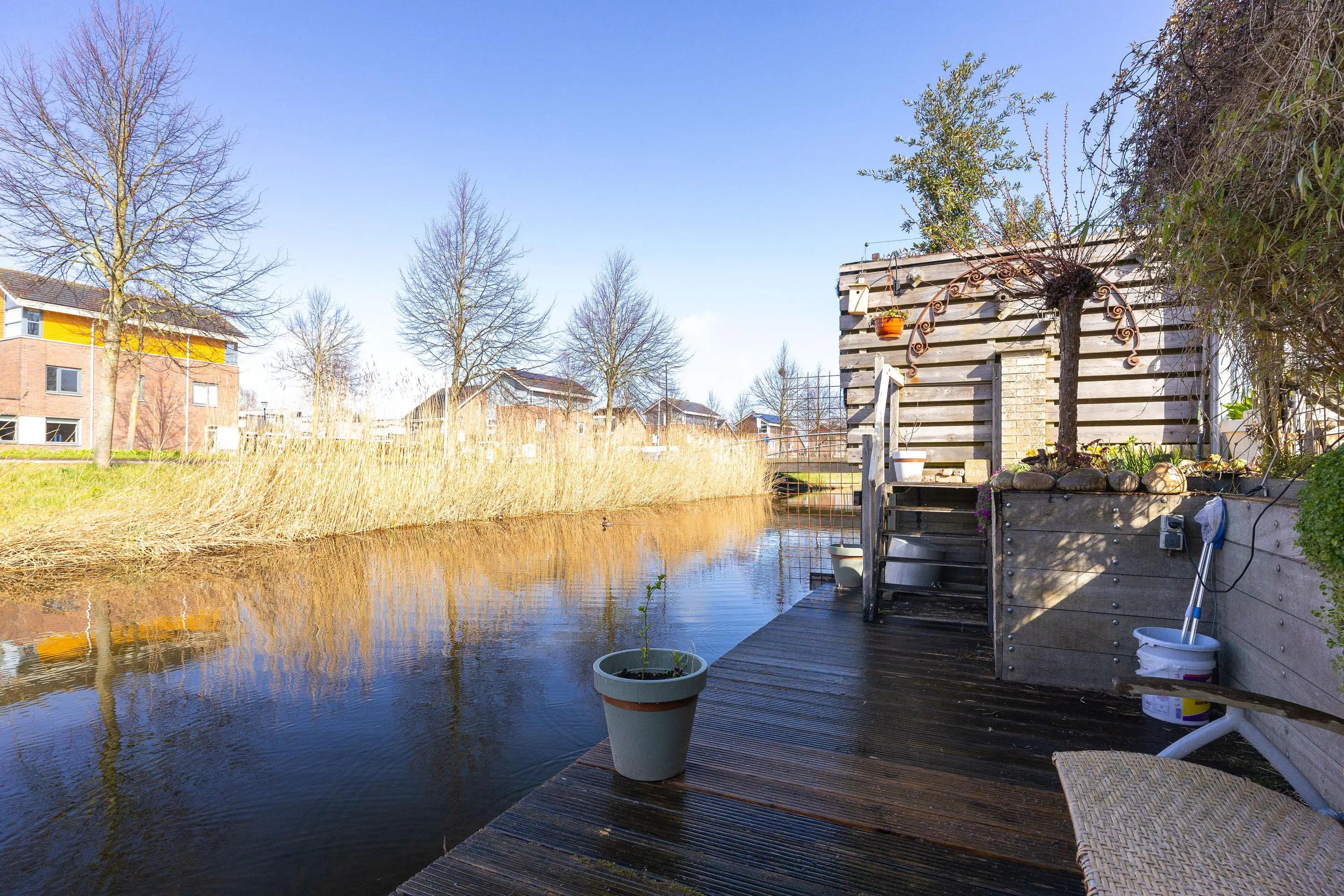 De achtertuin is een absoluut pluspunt van deze woning. Gelegen op het zonnige westen geniet je hier volop van de middag- en avondzon. De ligging aan het water zorgt voor een extra gevoel van rust en ruimte, terwijl het vrije uitzicht aan de achterzijde een heerlijke mate van privacy biedt. Een plek waar je na een lange dag optimaal kunt ontspannen en genieten van het buitenleven.